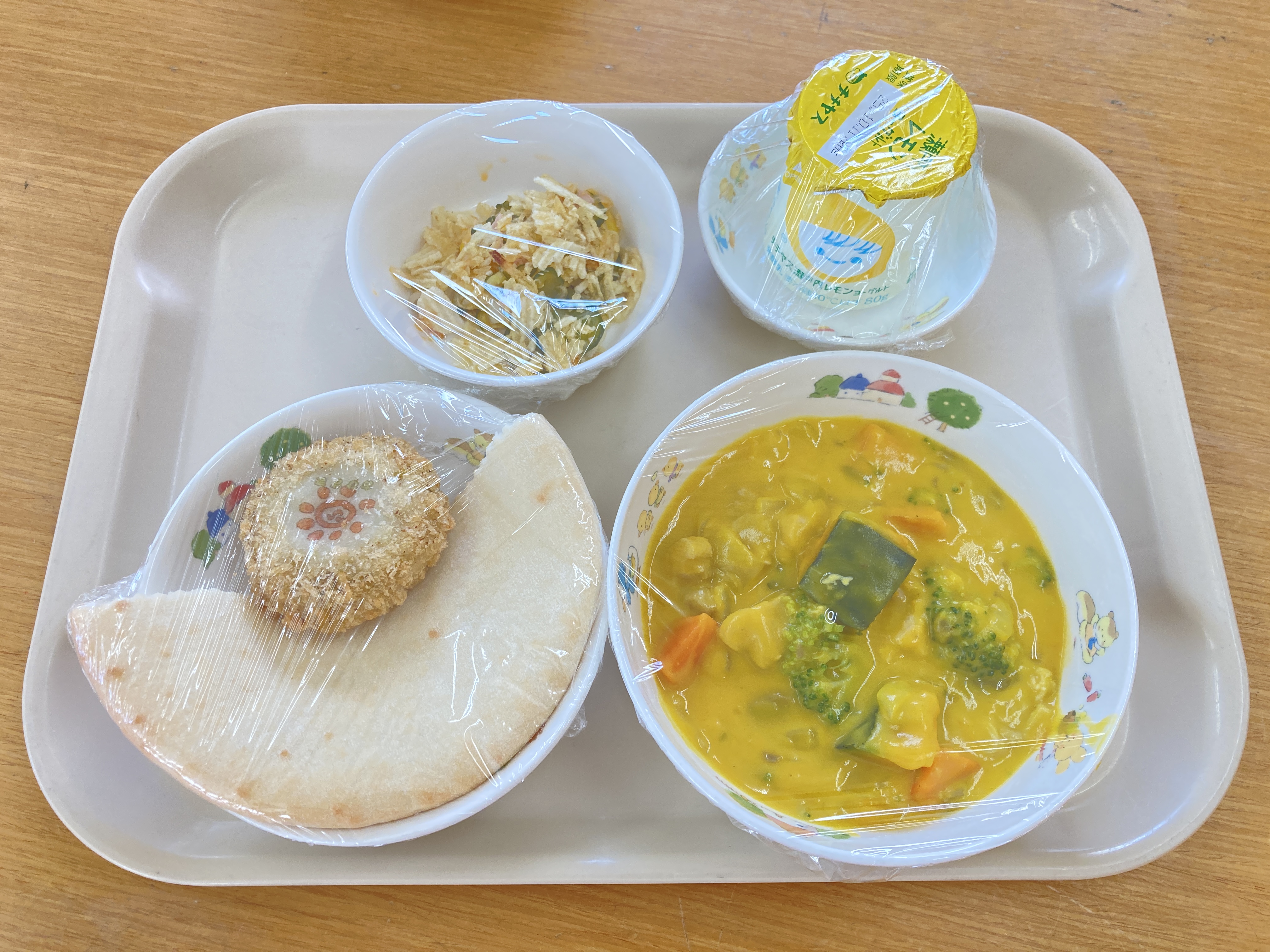 お給食のピタパンには好きな具材を挟み、オリジナルピタパンを作ってモリモリ食べていました!