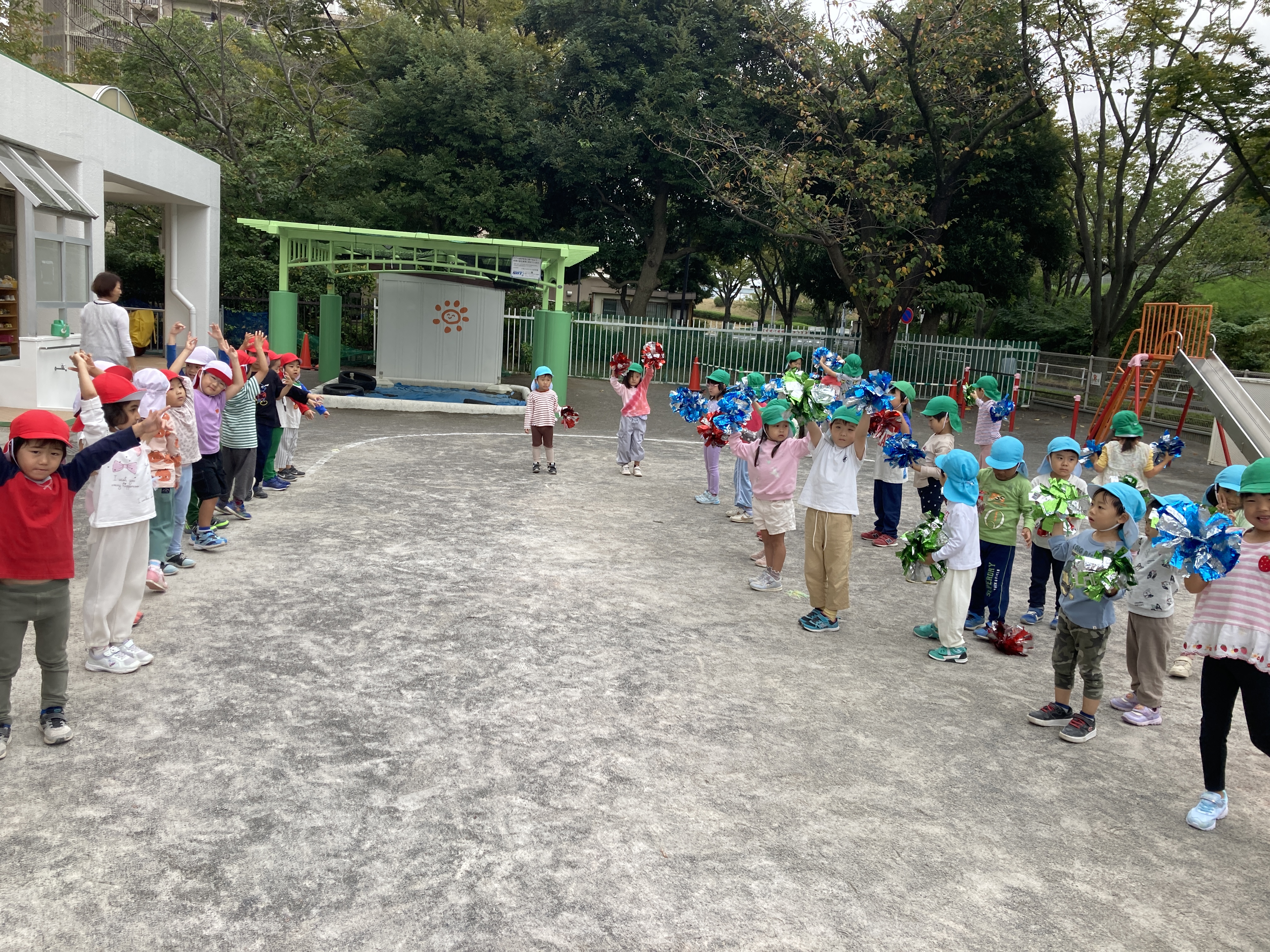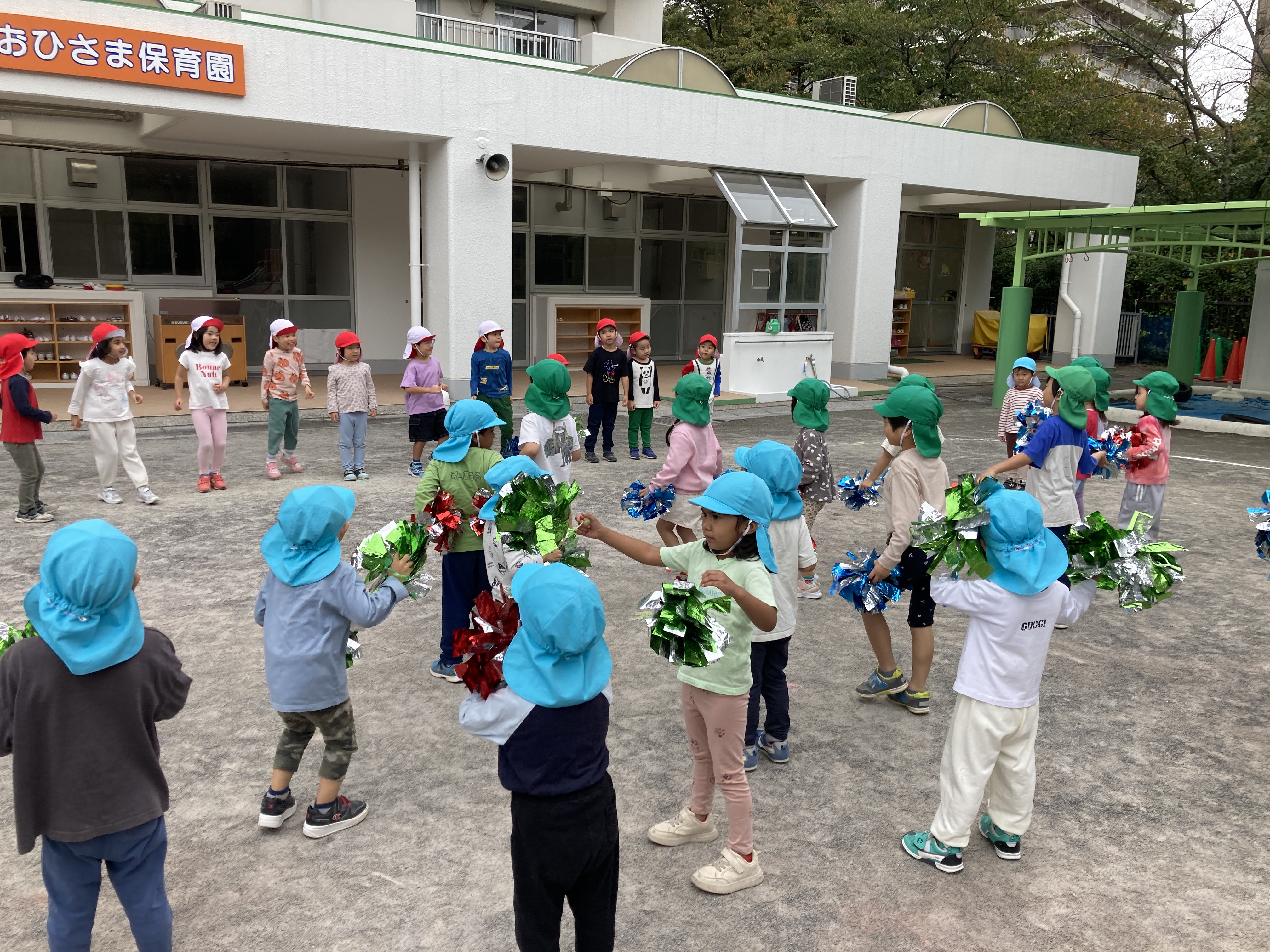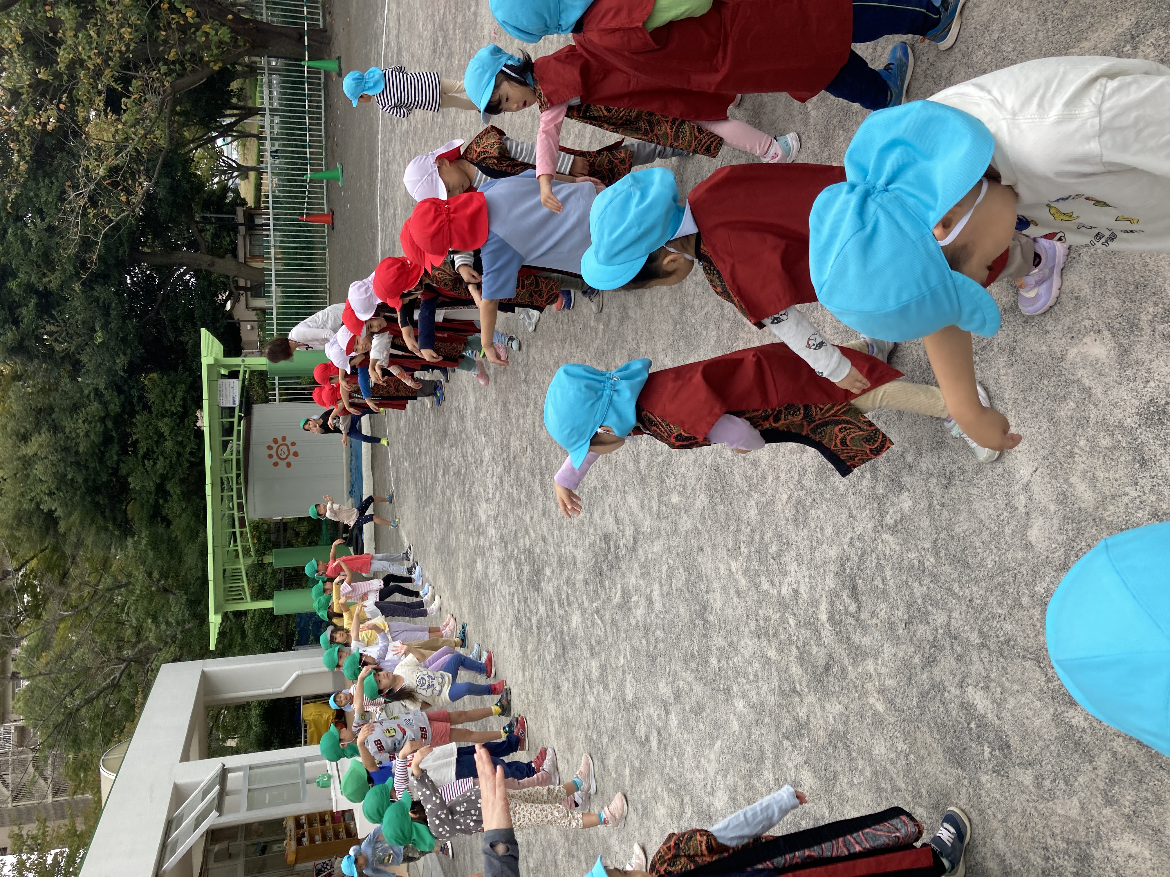 今日は、3・4・5歳児クラスが交流をする”わくわくデー”があり『運動会ごっこ』をしました。