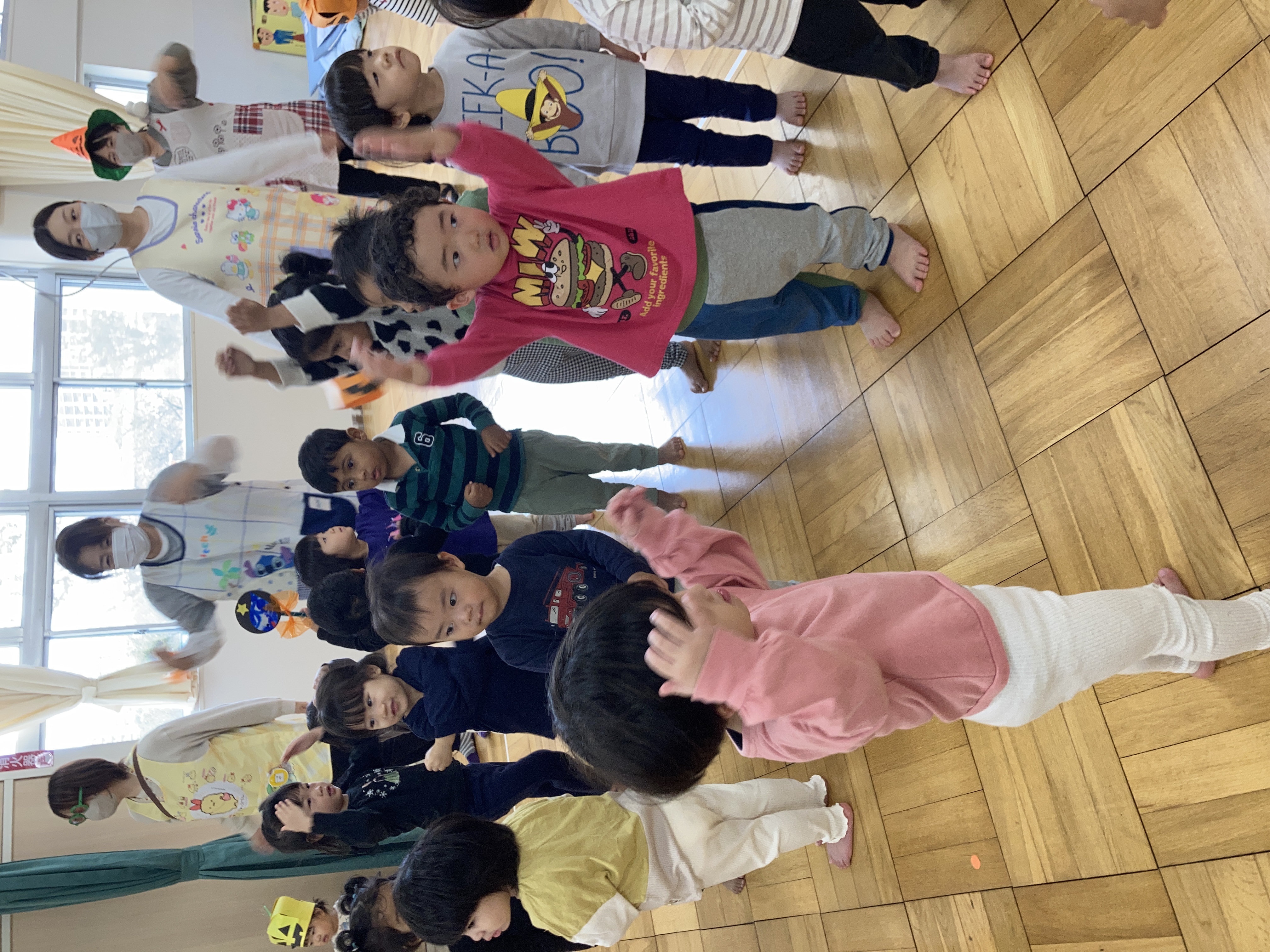 仮装をしてウキウキな様子でホールに集まっていた子ども達!