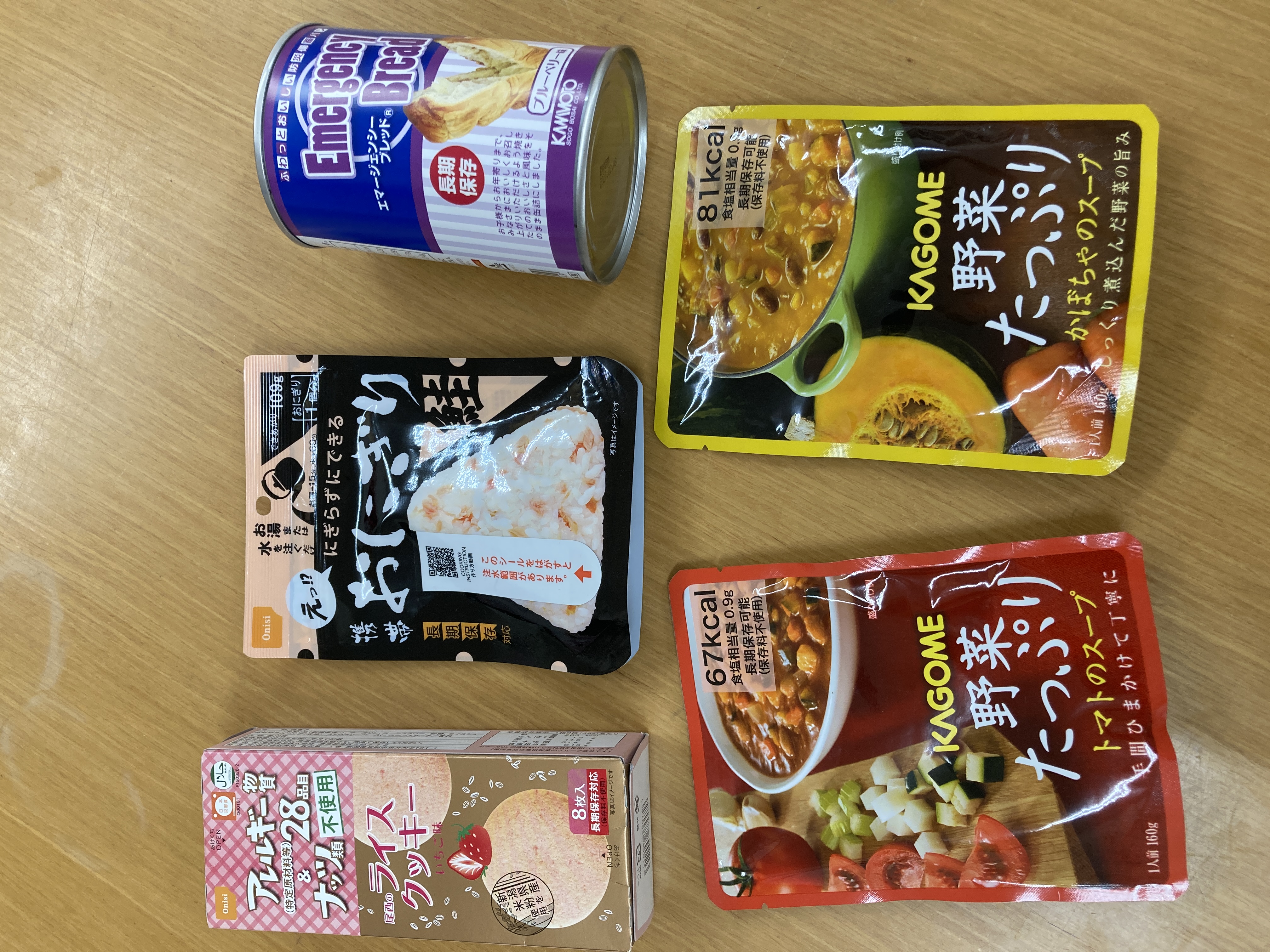 他にも子ども達が食べやすい非常食を選び、保育園では保管しています。