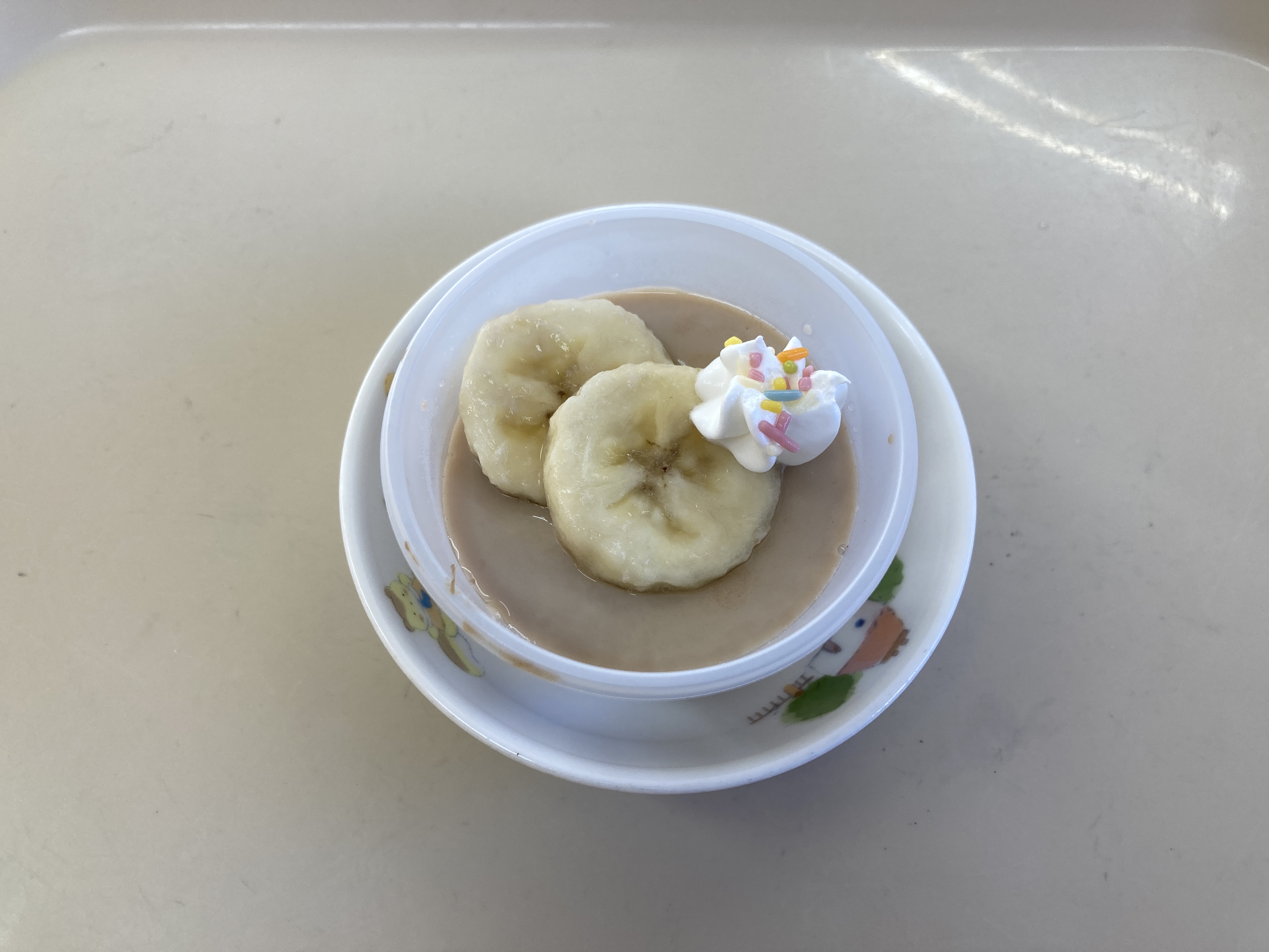 バナナと生クリームのトッピングに喜び、ペロリと完食していました。