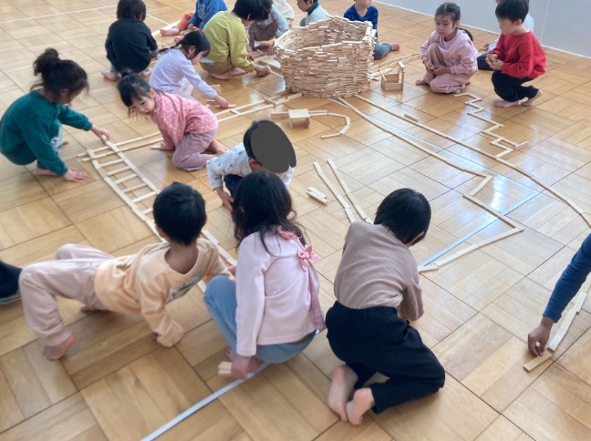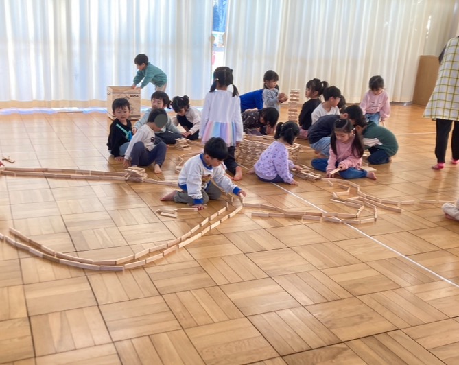 今日は幼児クラスが集まってワクワクデーを行い、その中でカプラをしました。