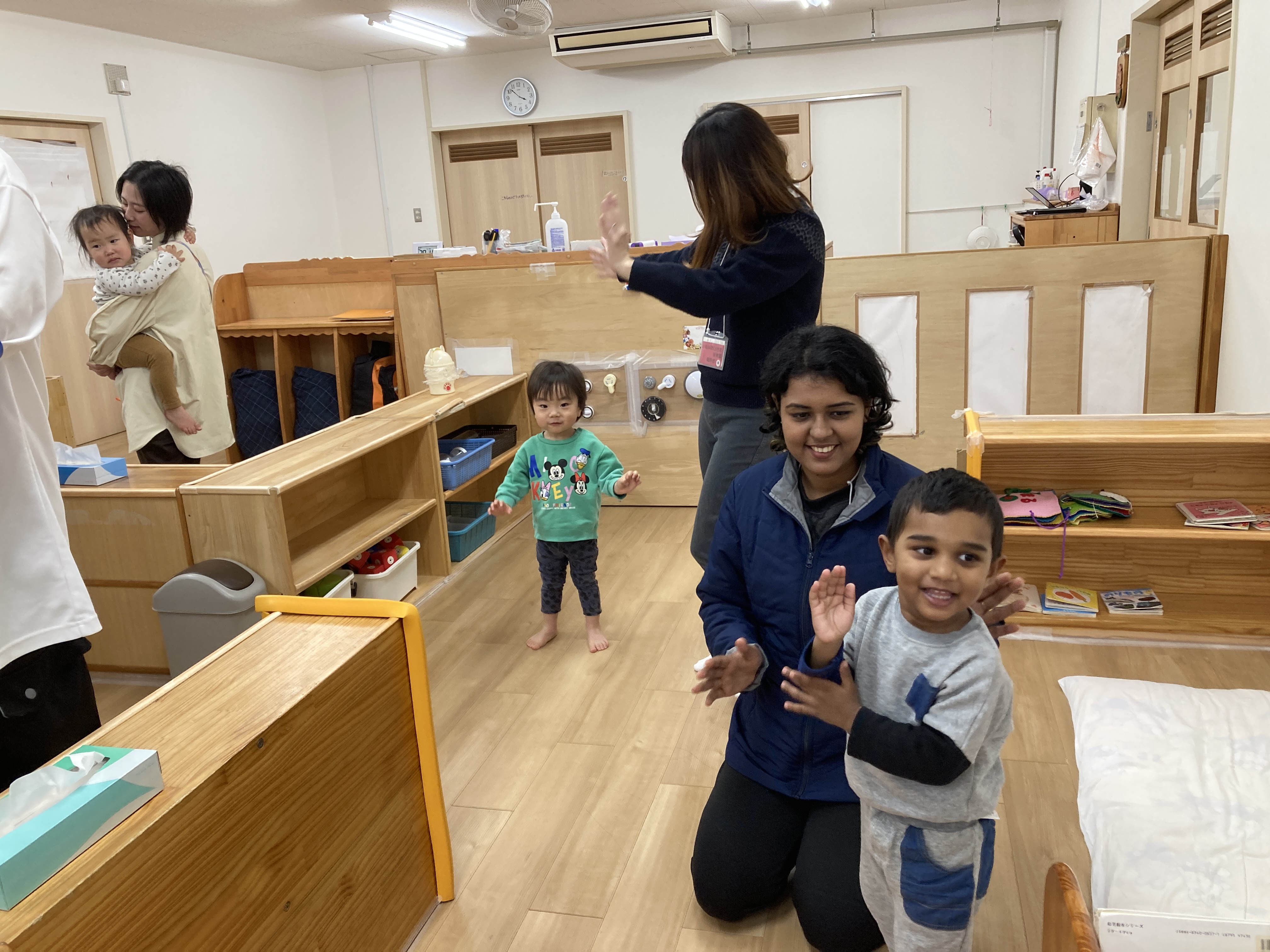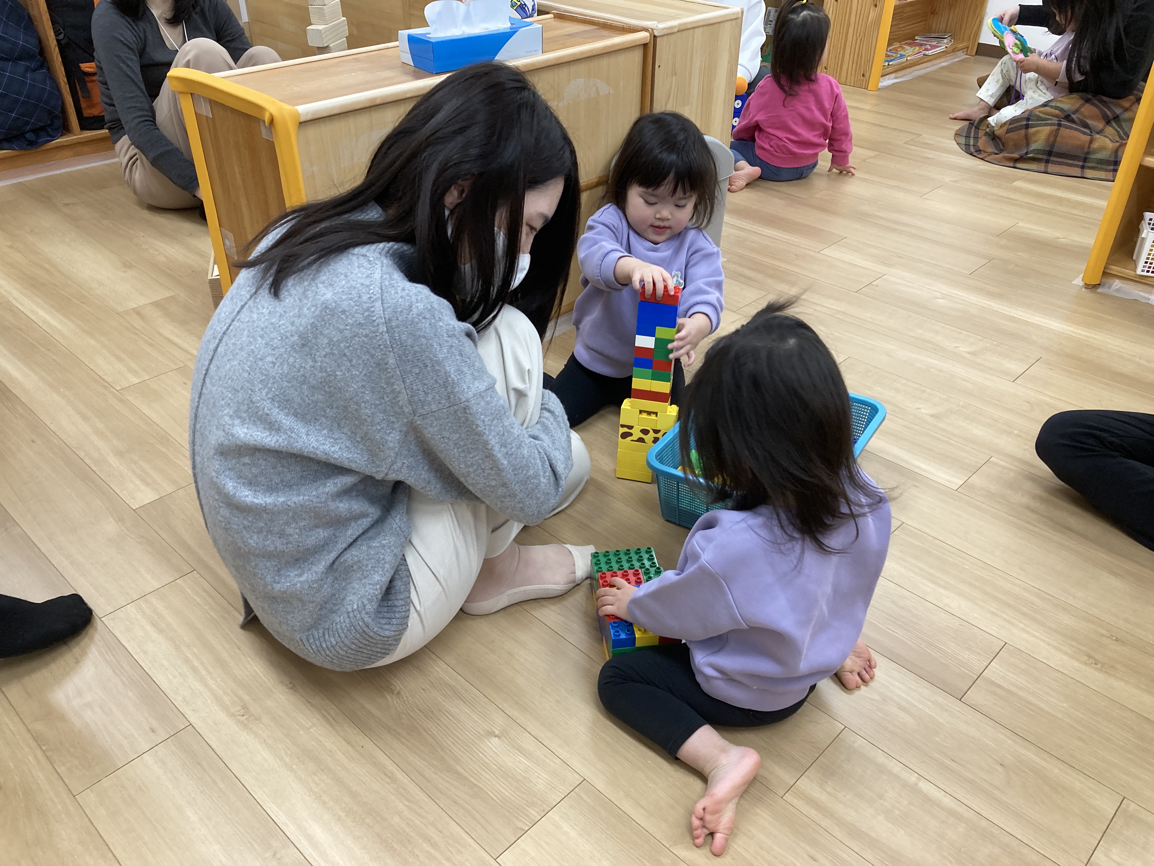 今日は1歳児クラスで「いっしょにあそぼうね会」を行いました。