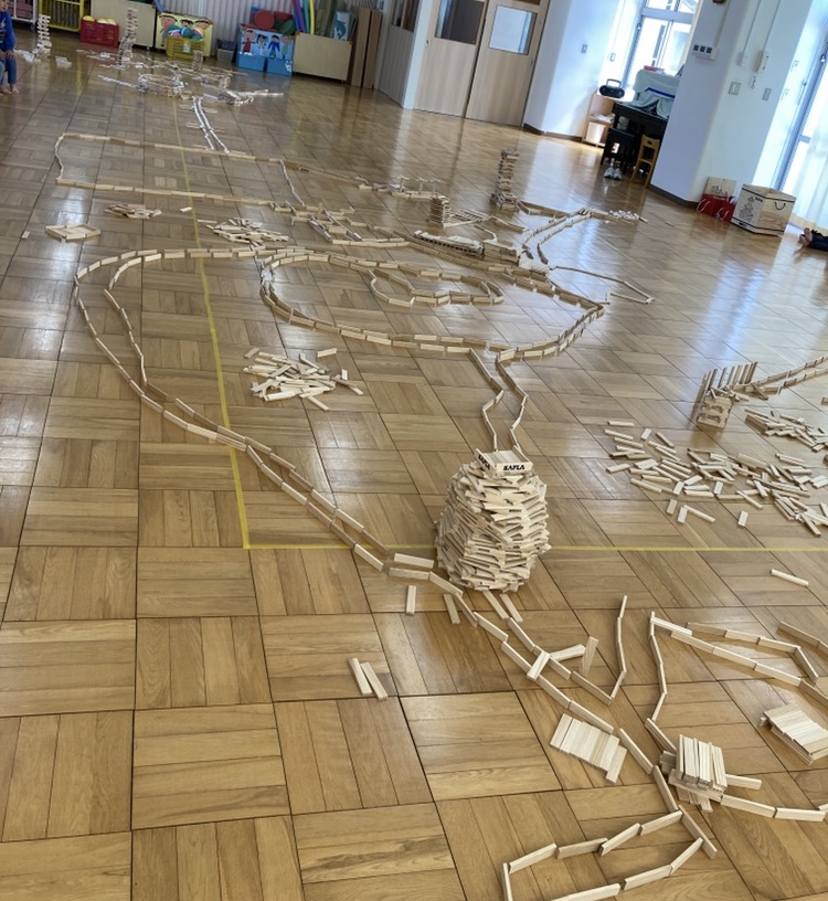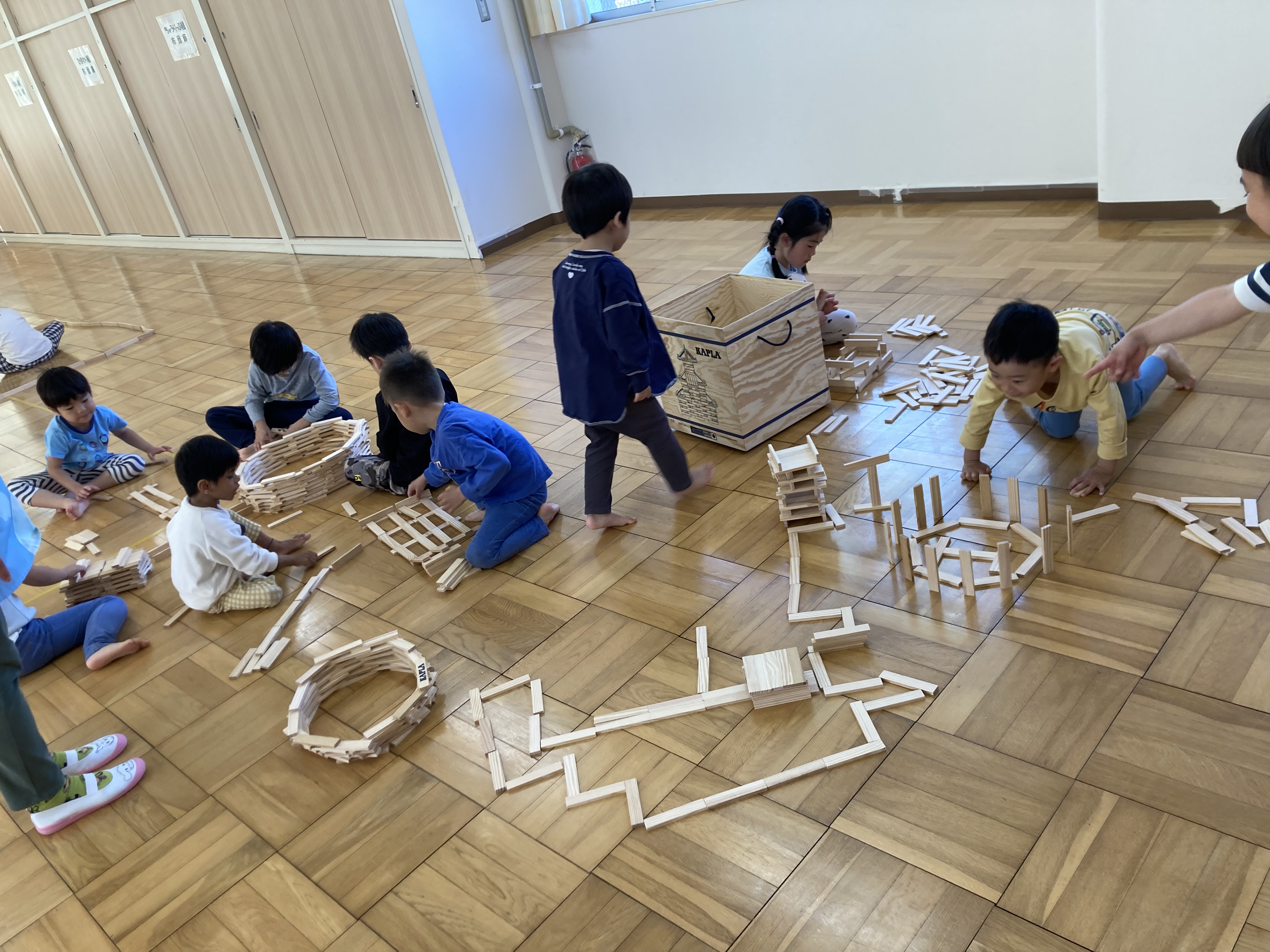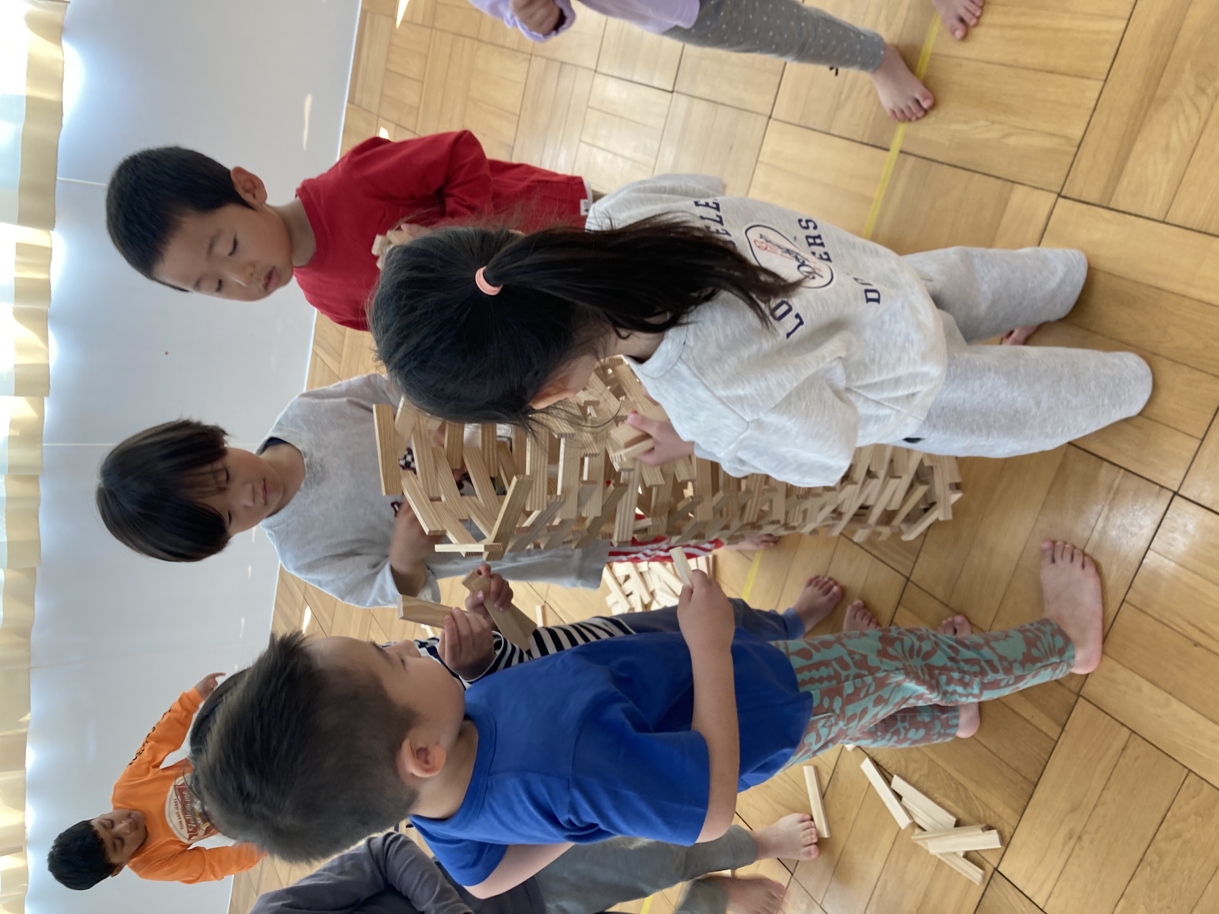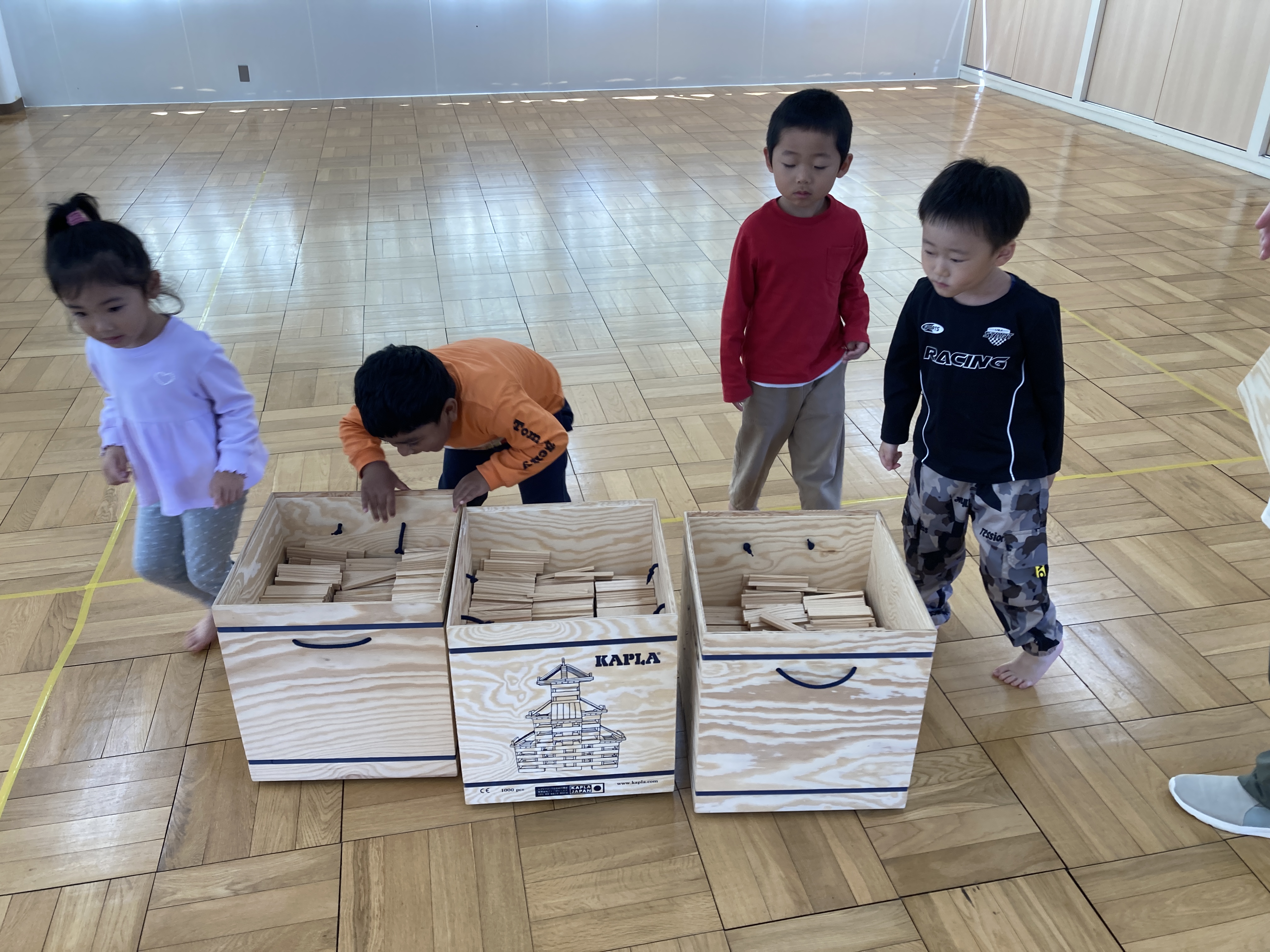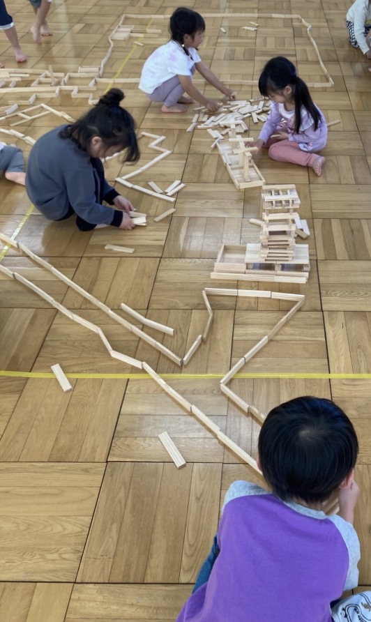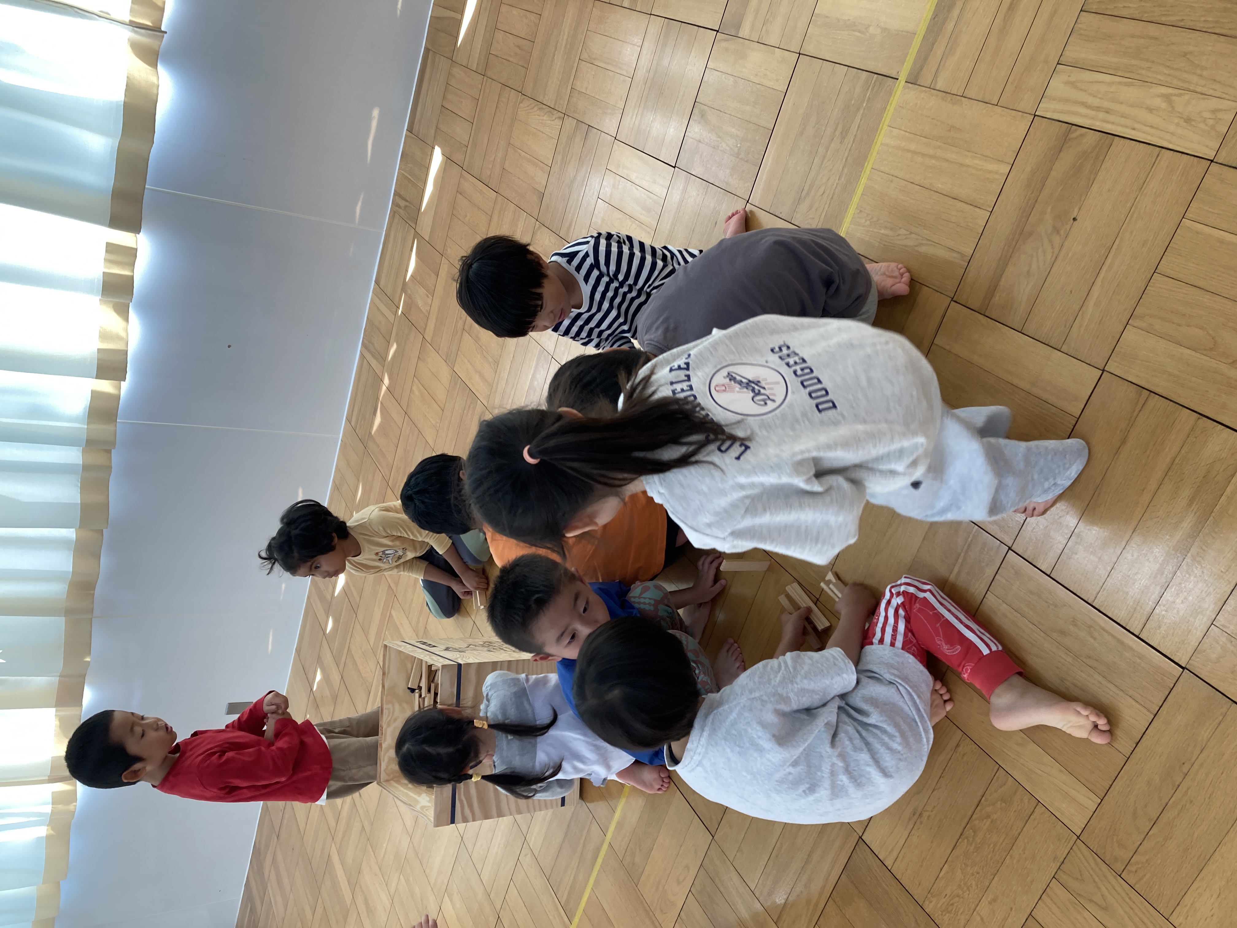 4・5歳児クラスで一緒にホールでカプラをしました。