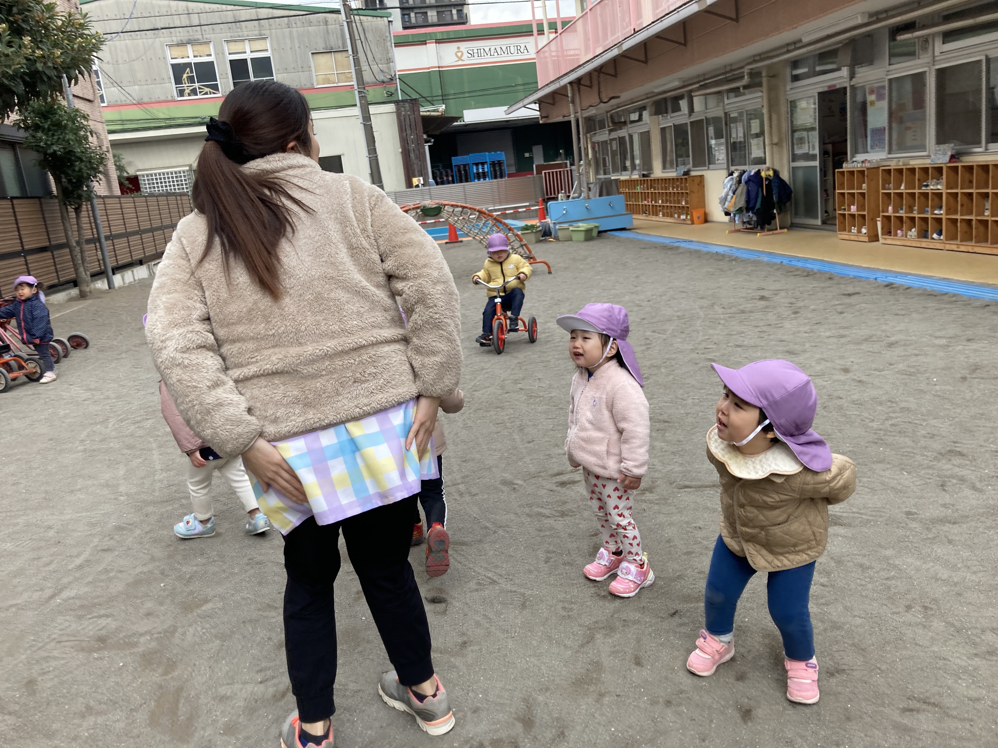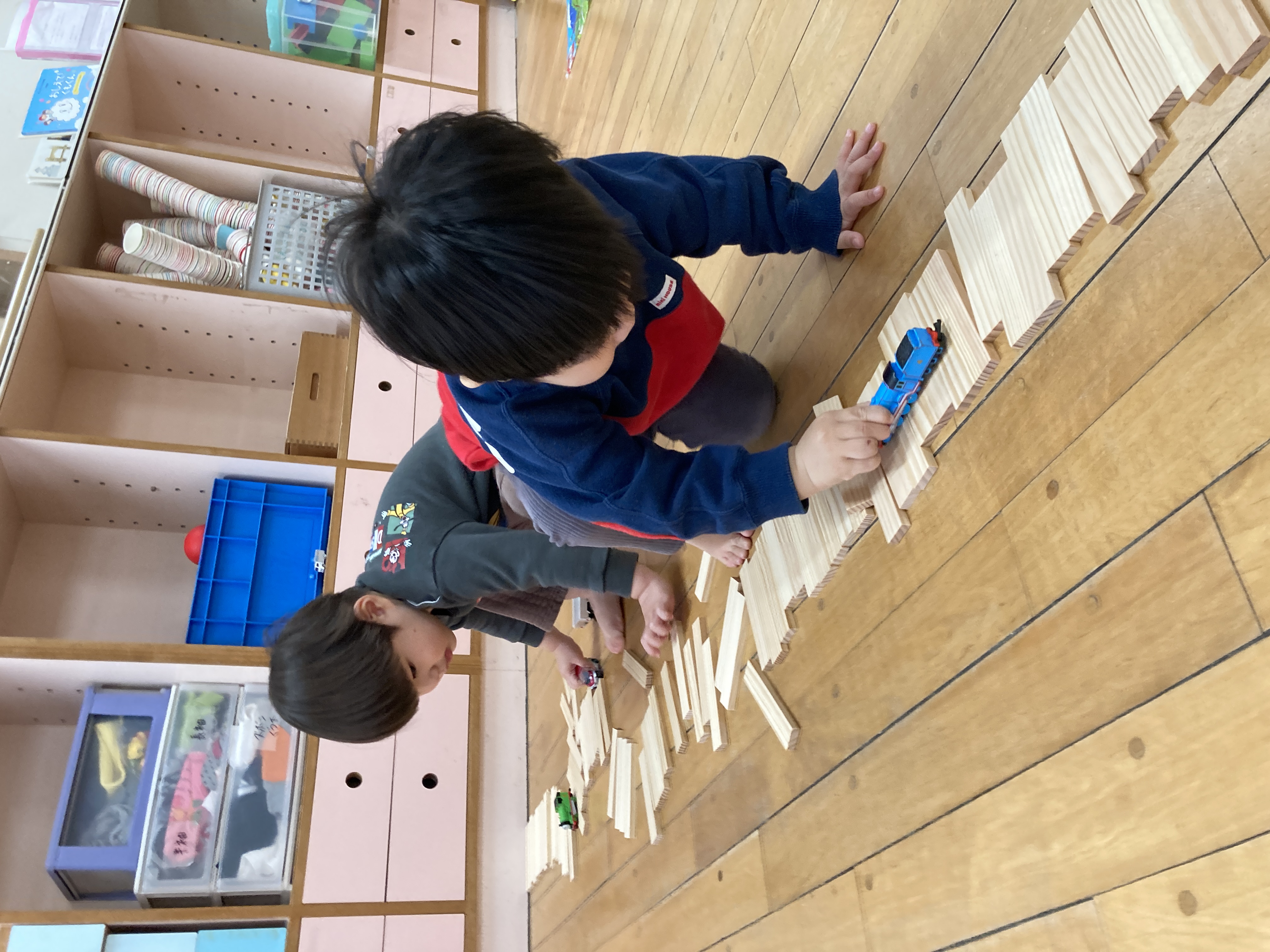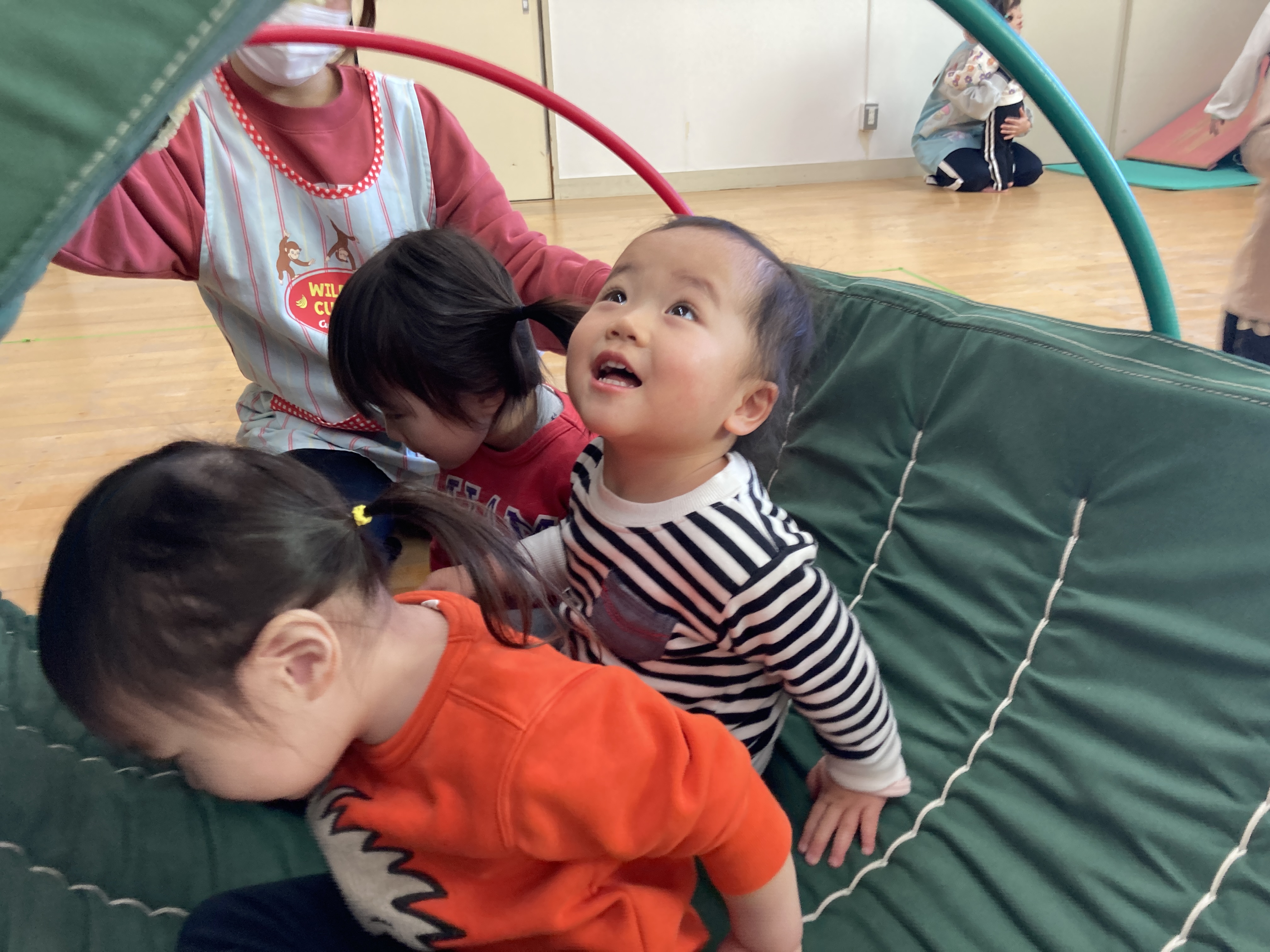 寒い日はお部屋でも元気に遊びます!ホールでも元気いっぱいの子どもたち!