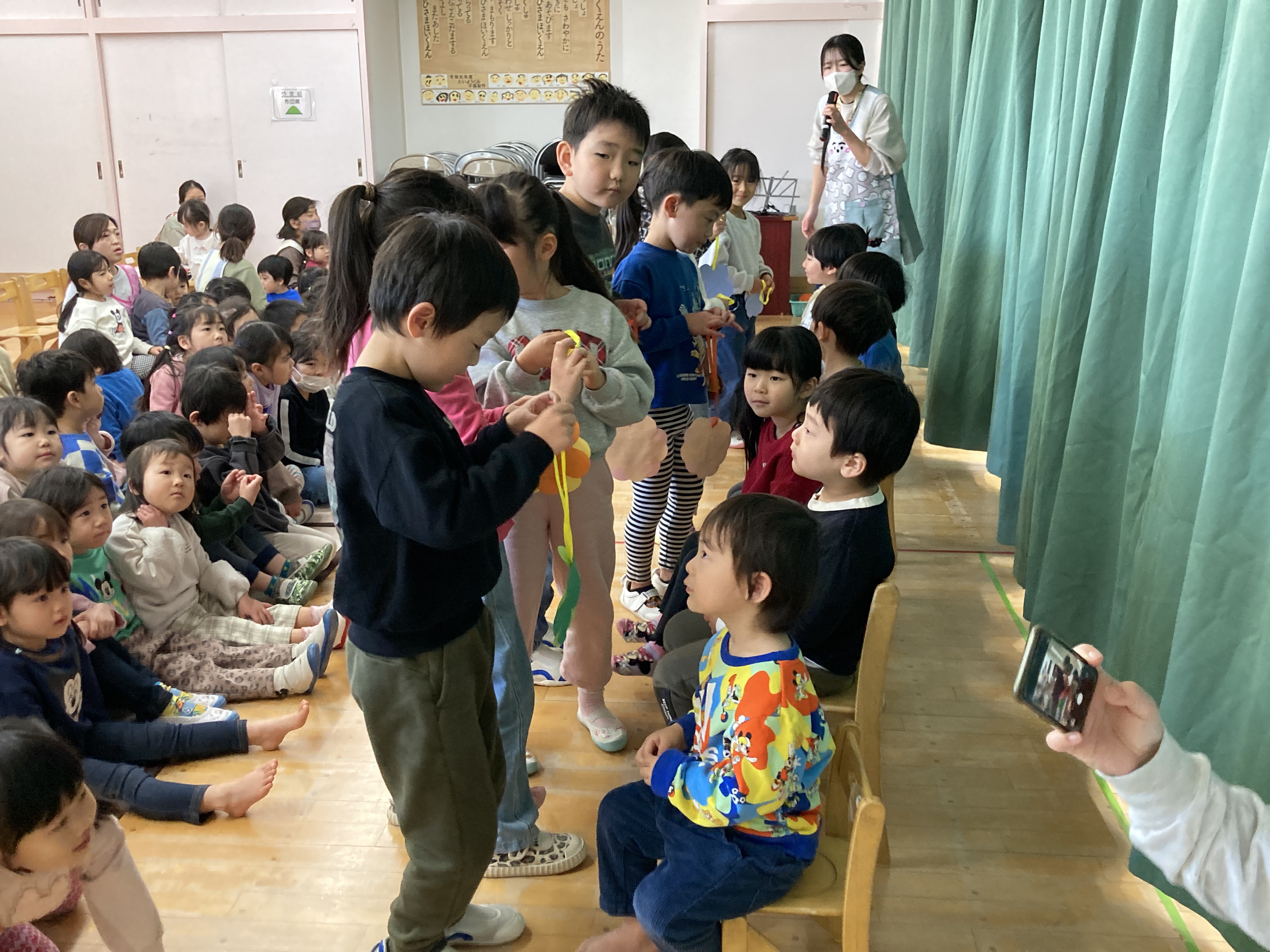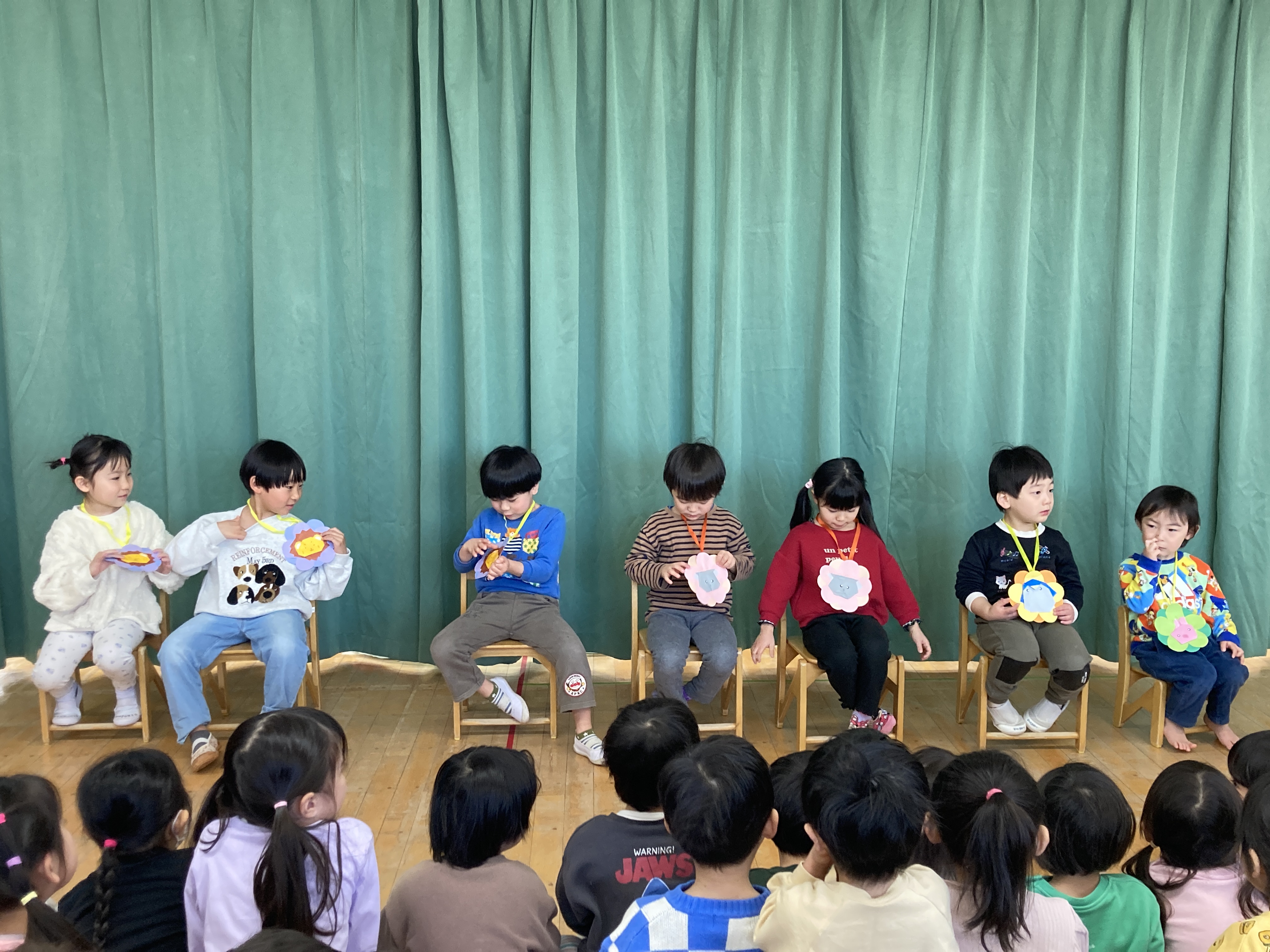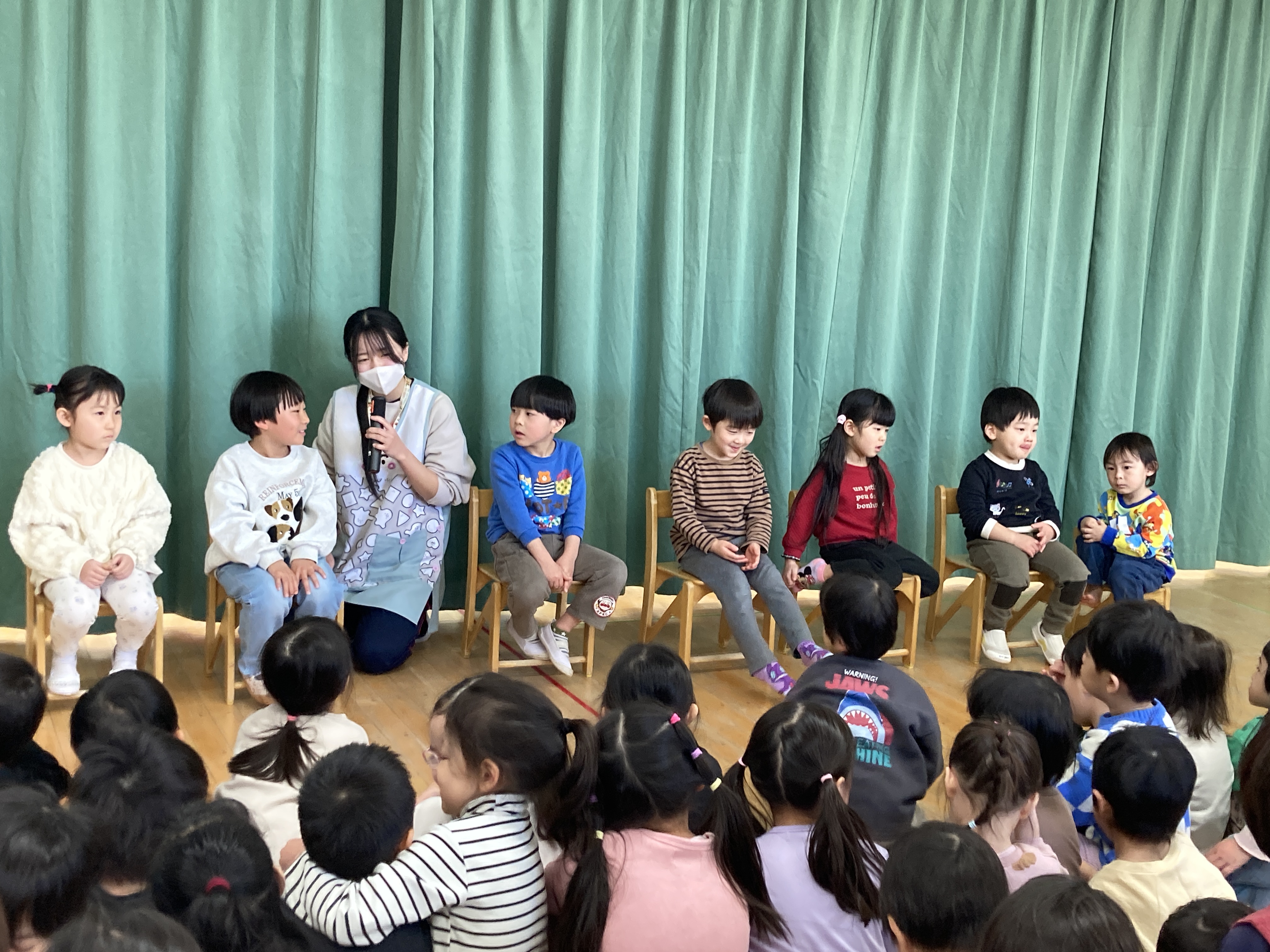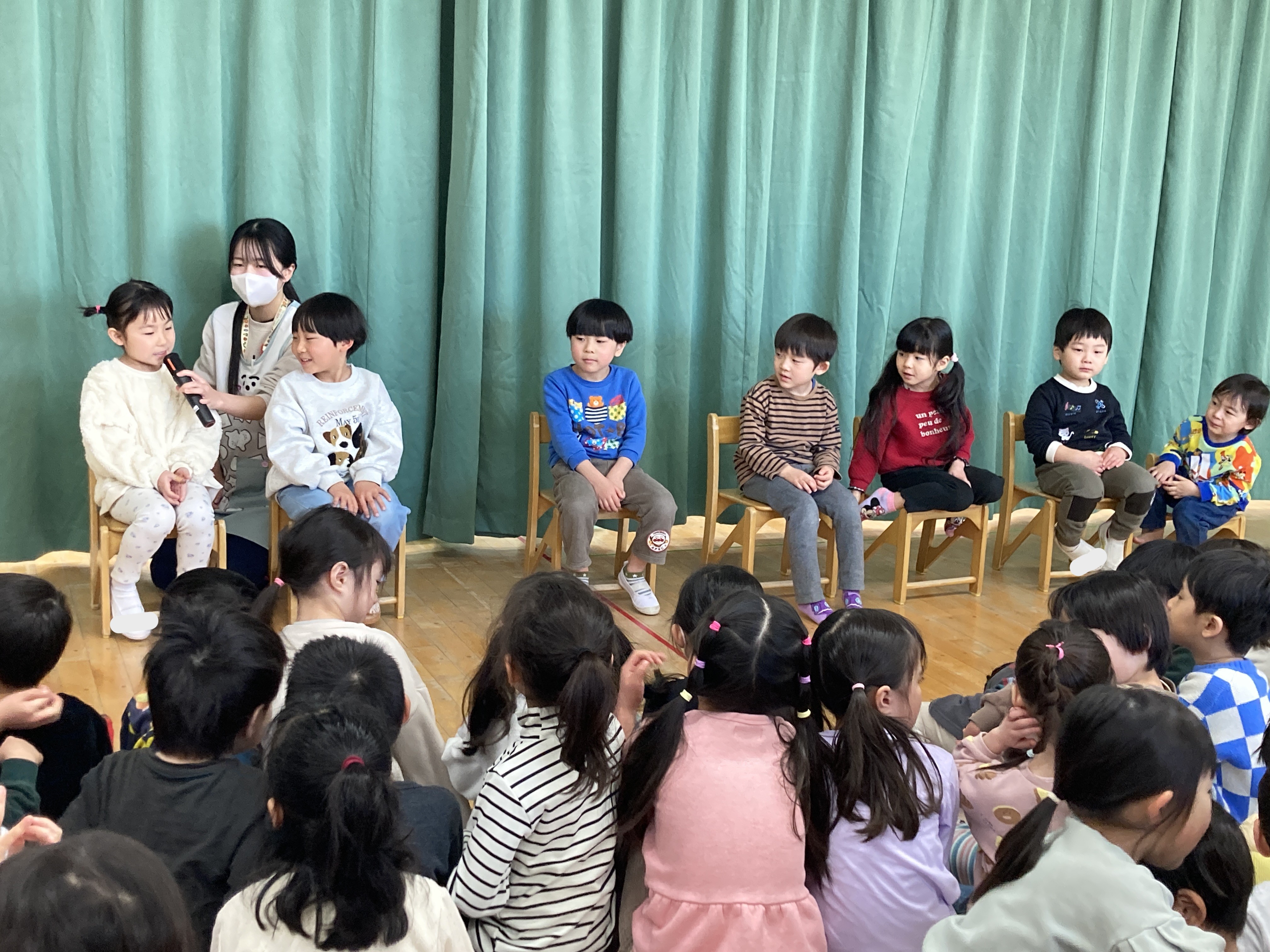 緊張しながらも、自分のお名前をみんなの前で大きな声でお話することができ、とってもかっこよかったです!好きな遊びや好きな食べ物もたくさん教えてくれましたよ!
