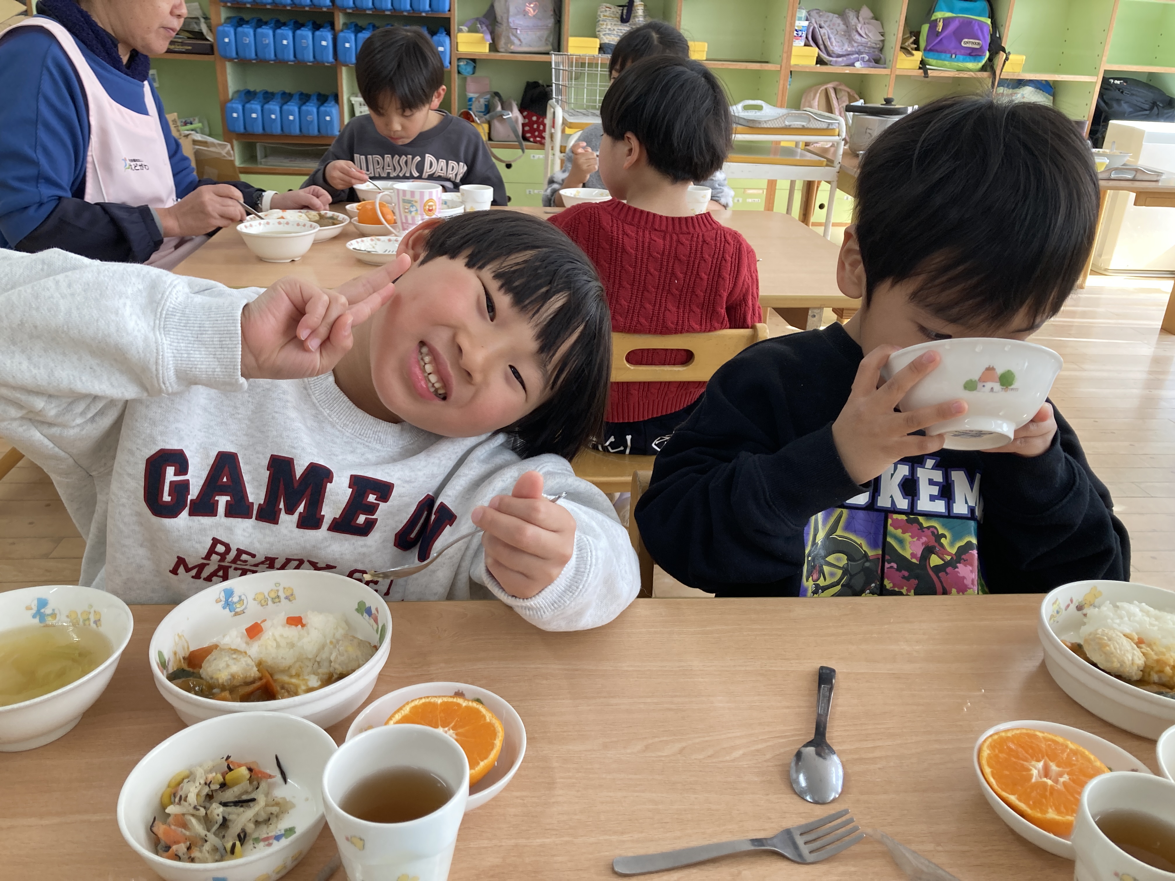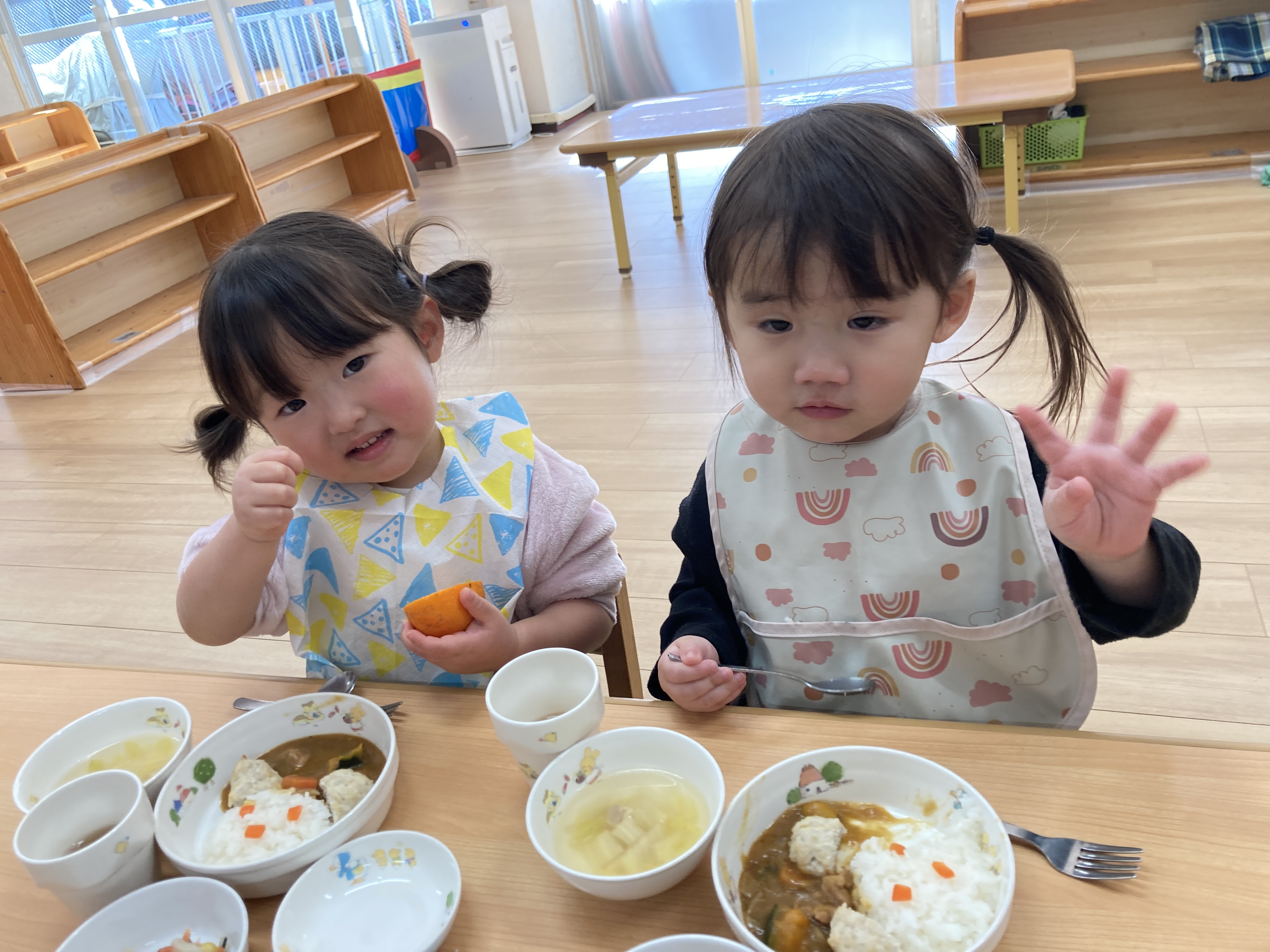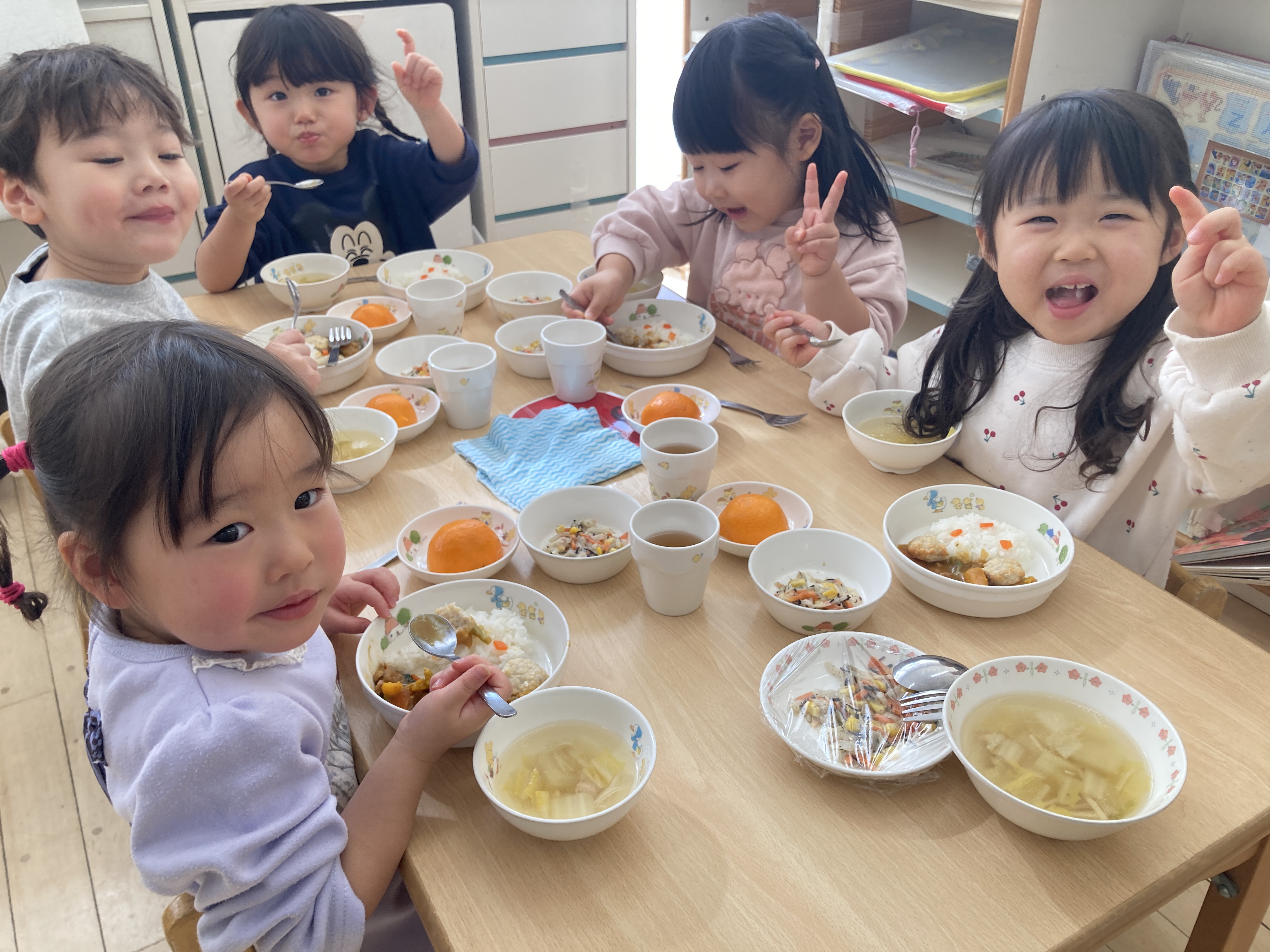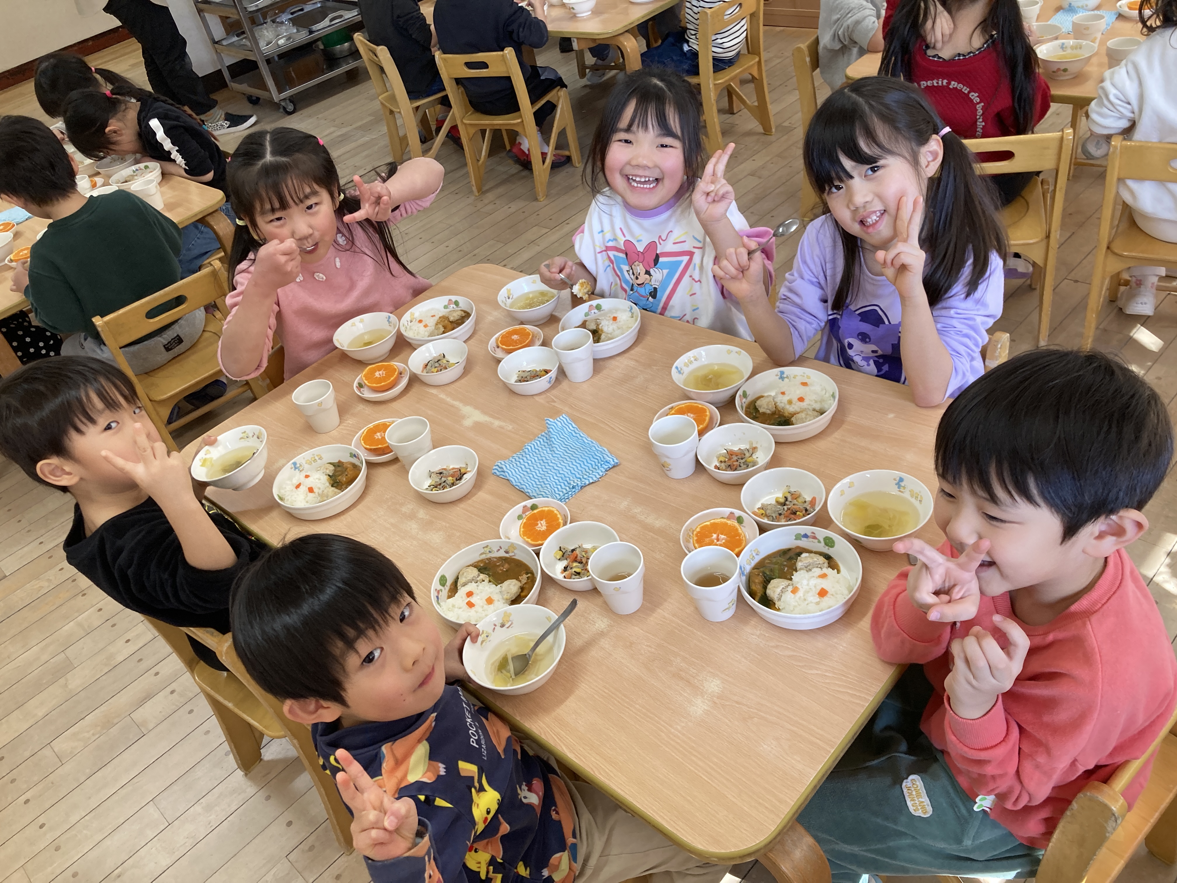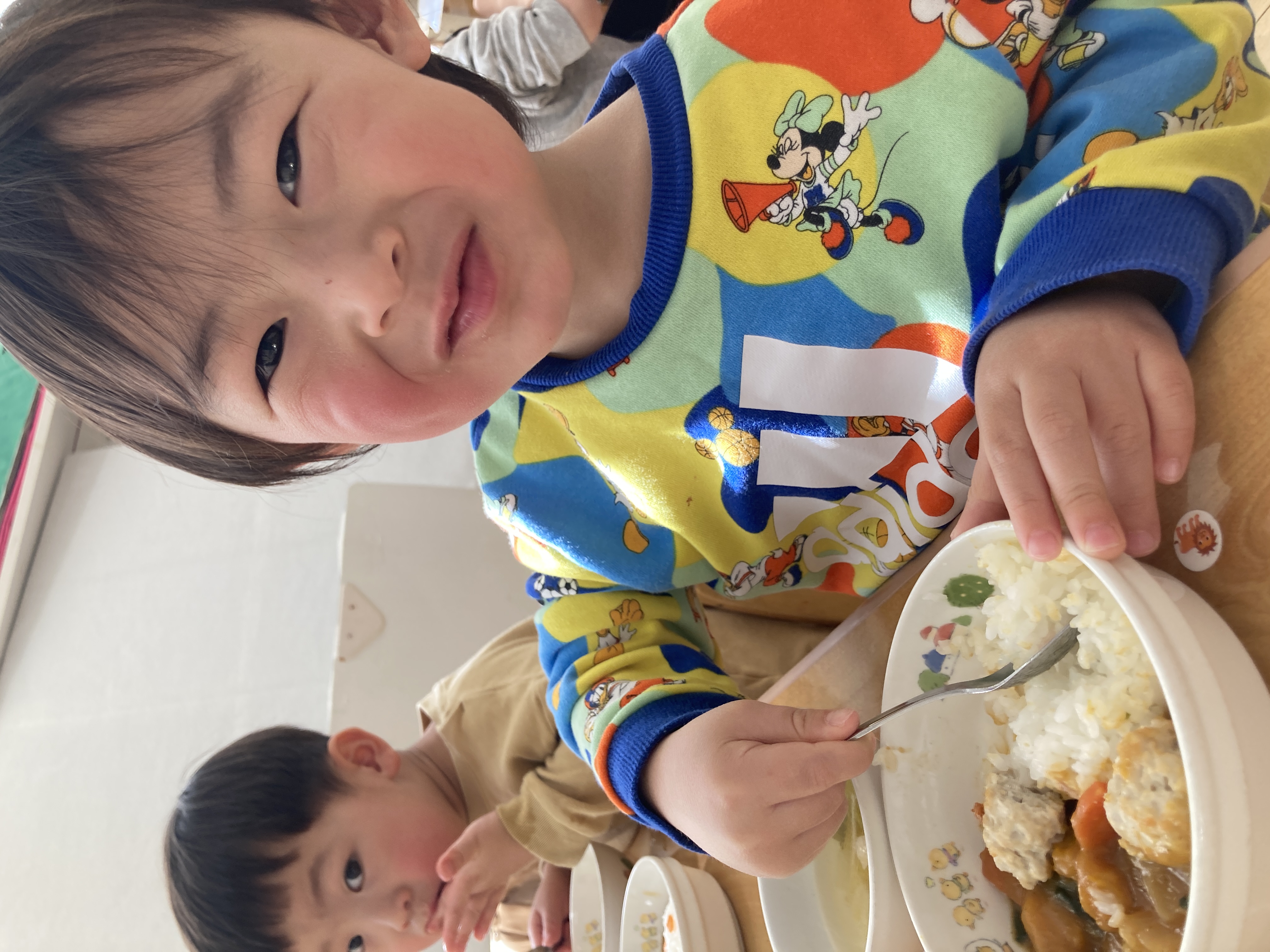 くまさんに変身したごはんを見ると、「かわいい~♡」という声が沢山上がり、食べるのがもったいないくらい可愛いくまさんチキンカレーは大人気で、あっという間にピカピカに完食していました!