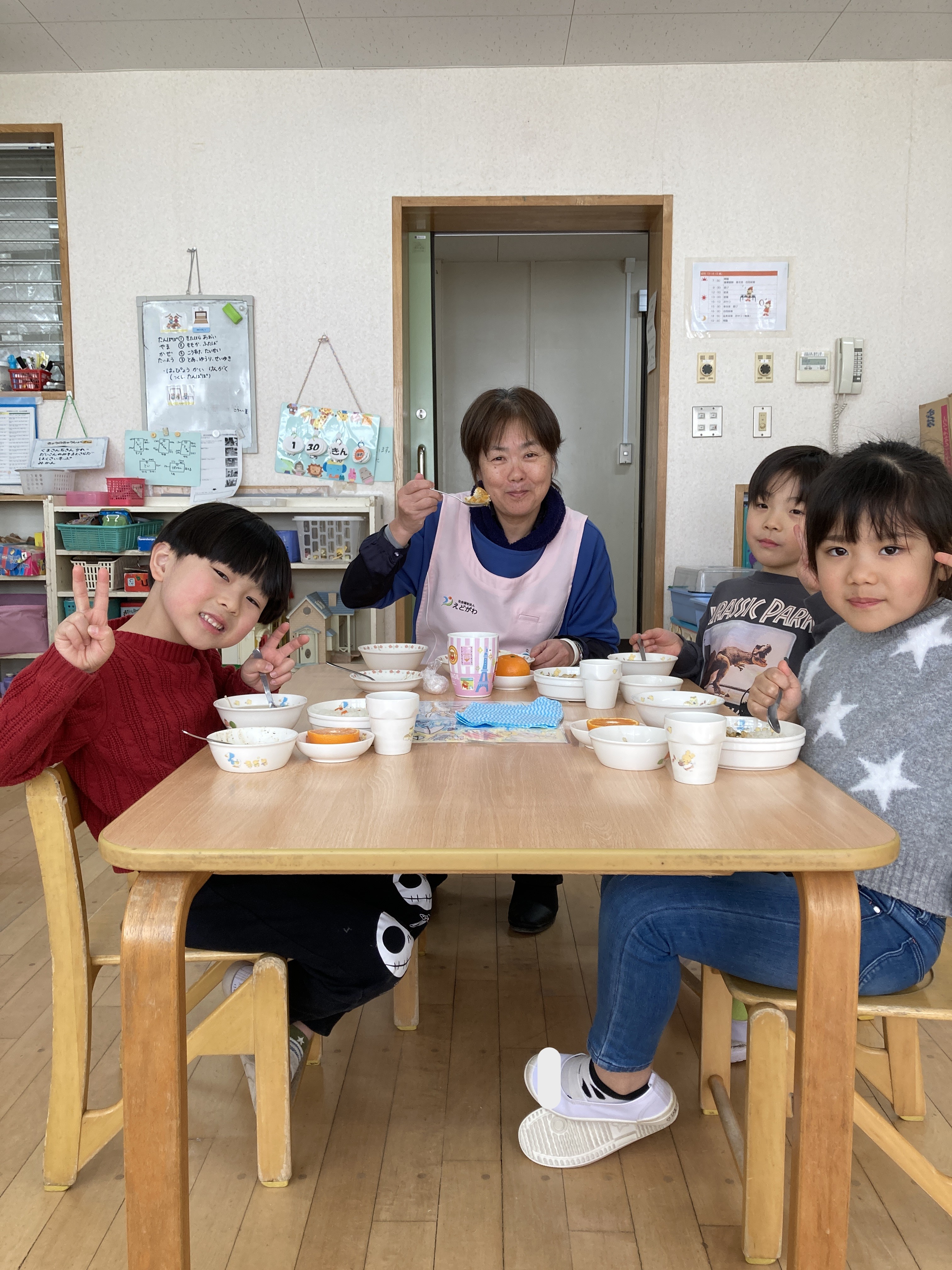5歳児たいよう組では、園長先生と一緒にいただきました!
