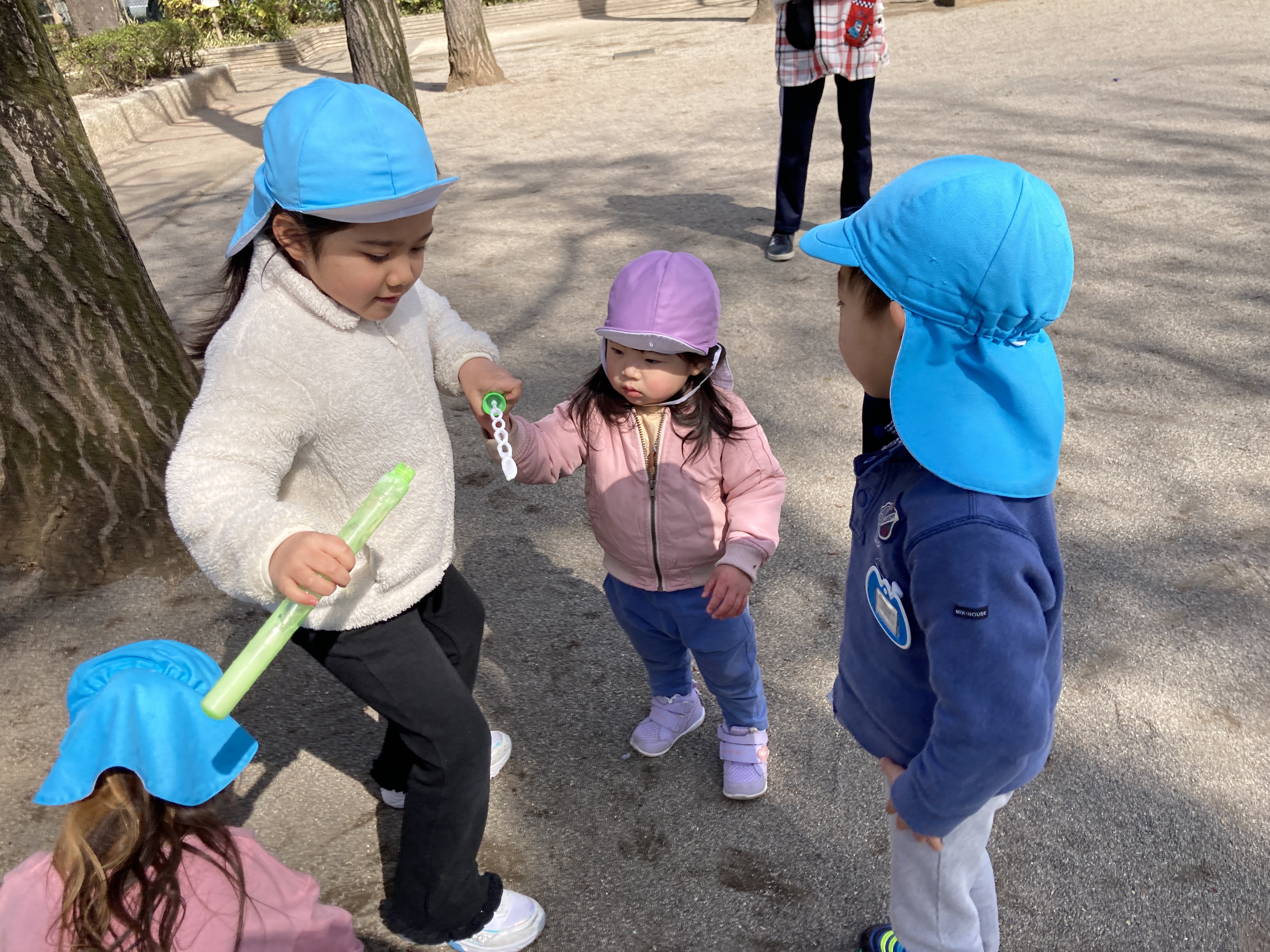 公園では一緒に虫探しやシャボン玉、追いかけっこをして楽しみました。