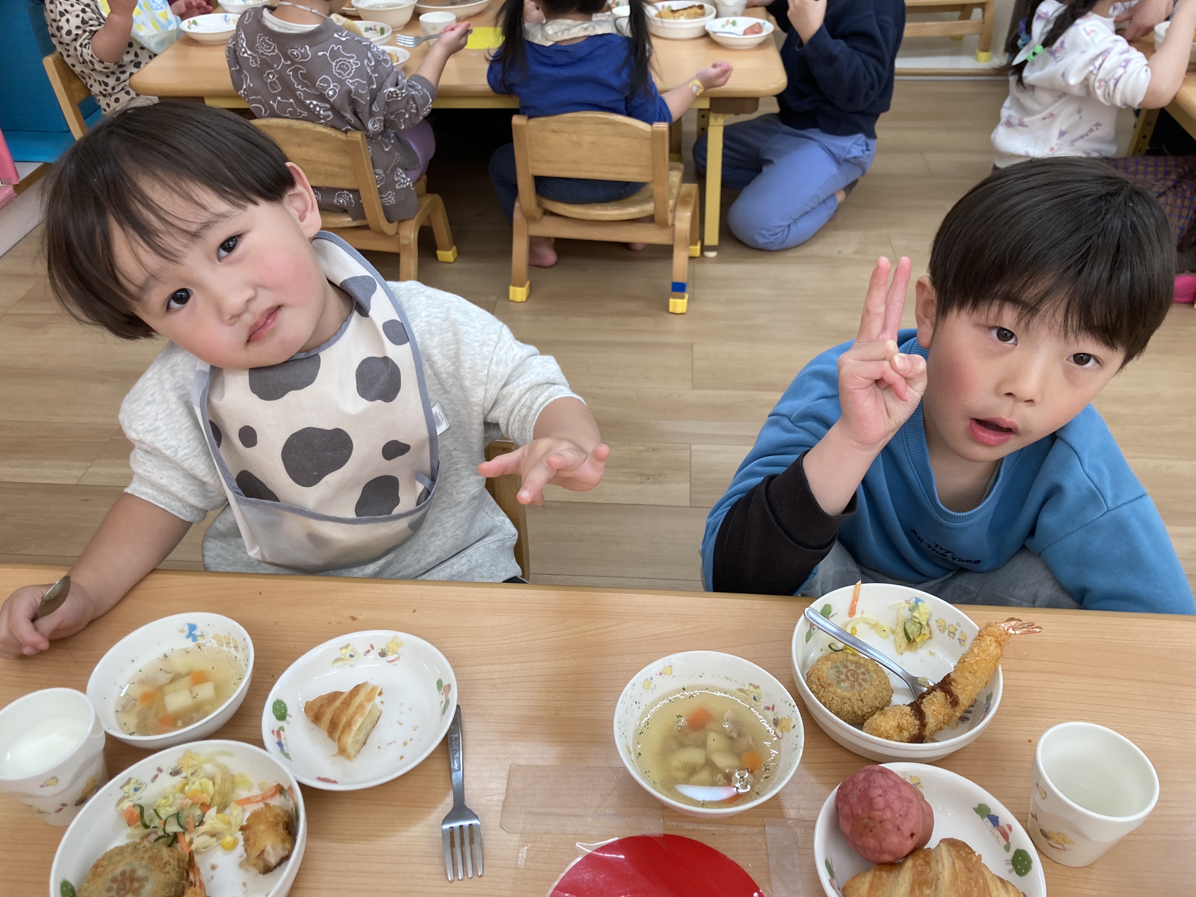 この日はたいよう組さんと一緒にお給食も食べました。