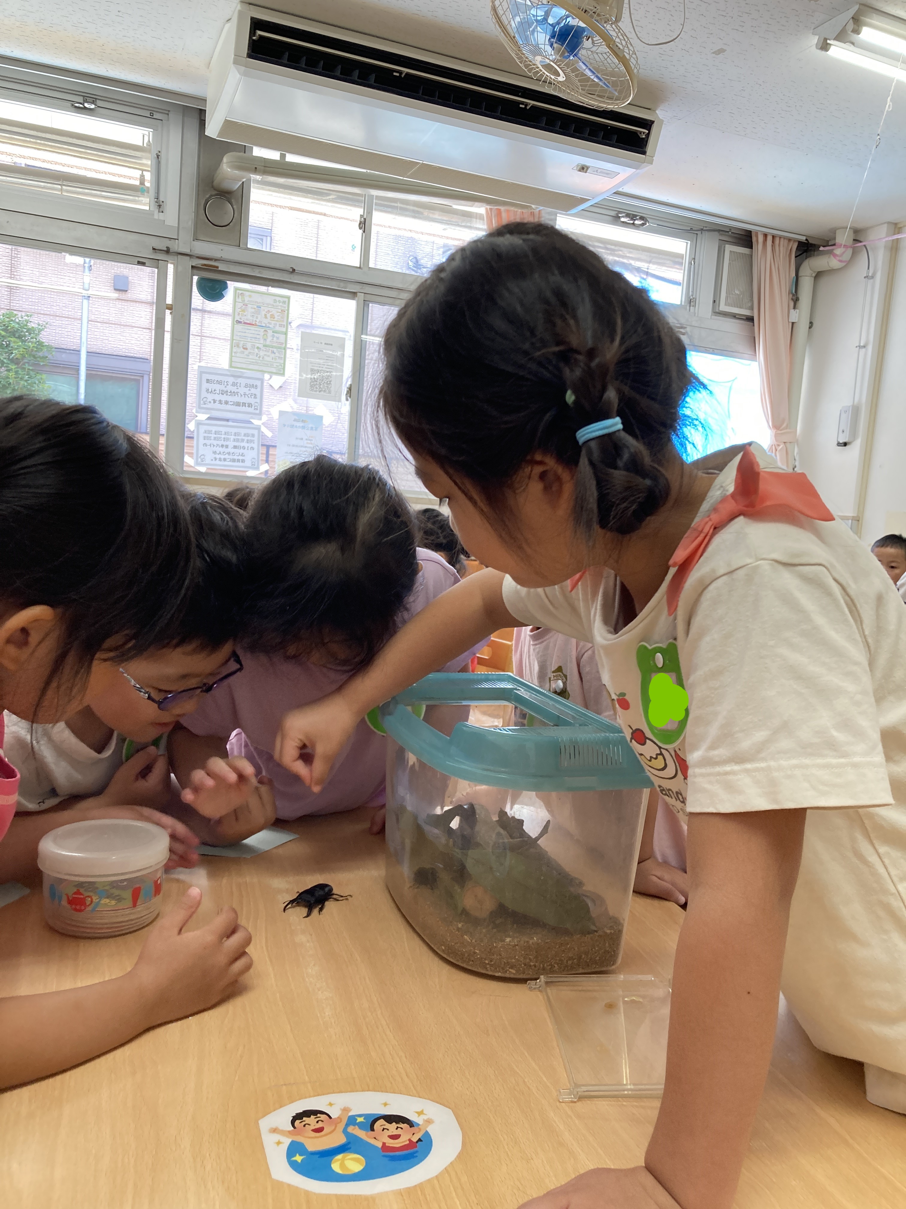 専用のケースで数匹ずつお部屋に持ってきて、観察することも楽しんでいます。