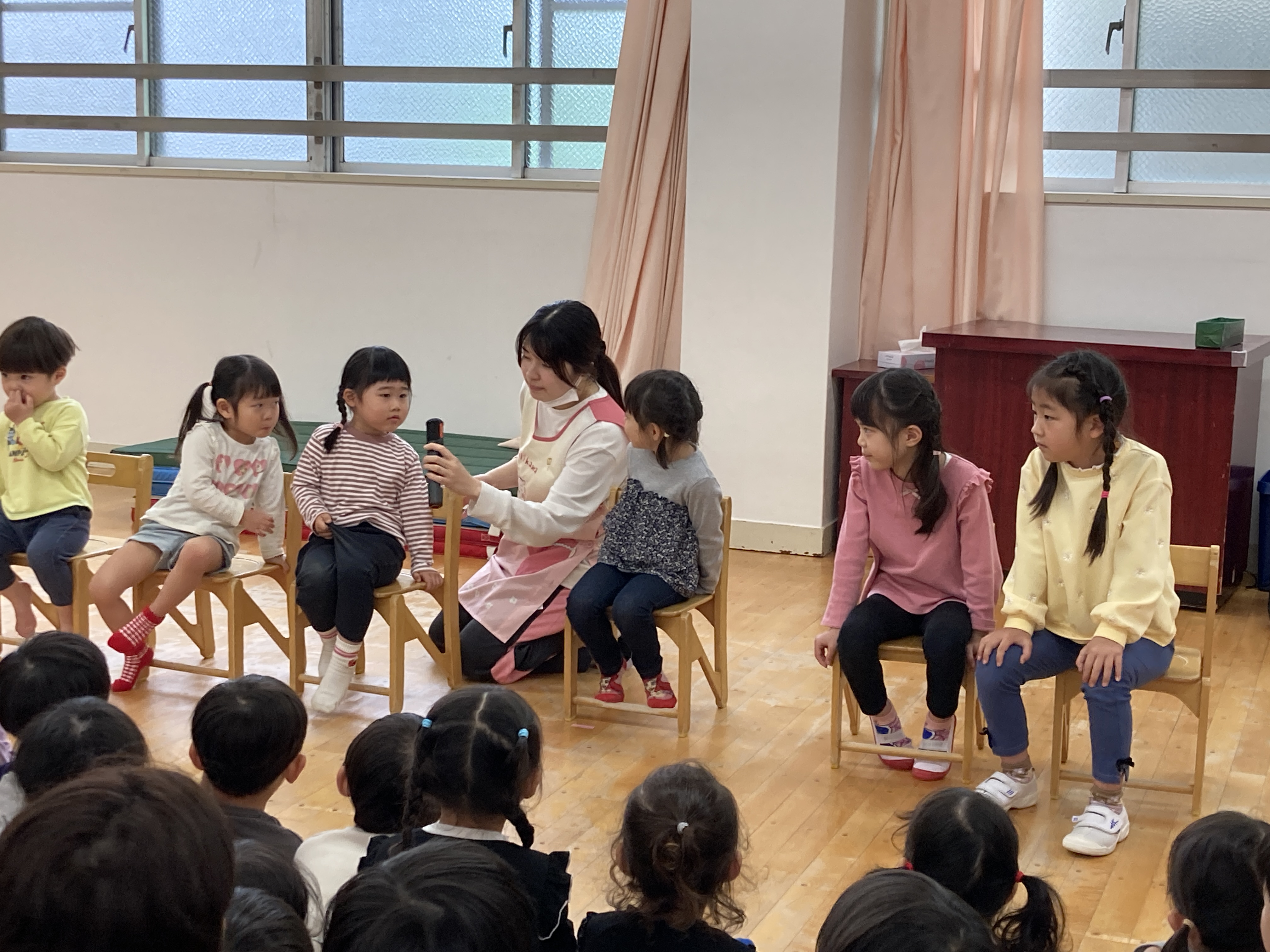 本日ホールにて、4月のお誕生日会が行われました。