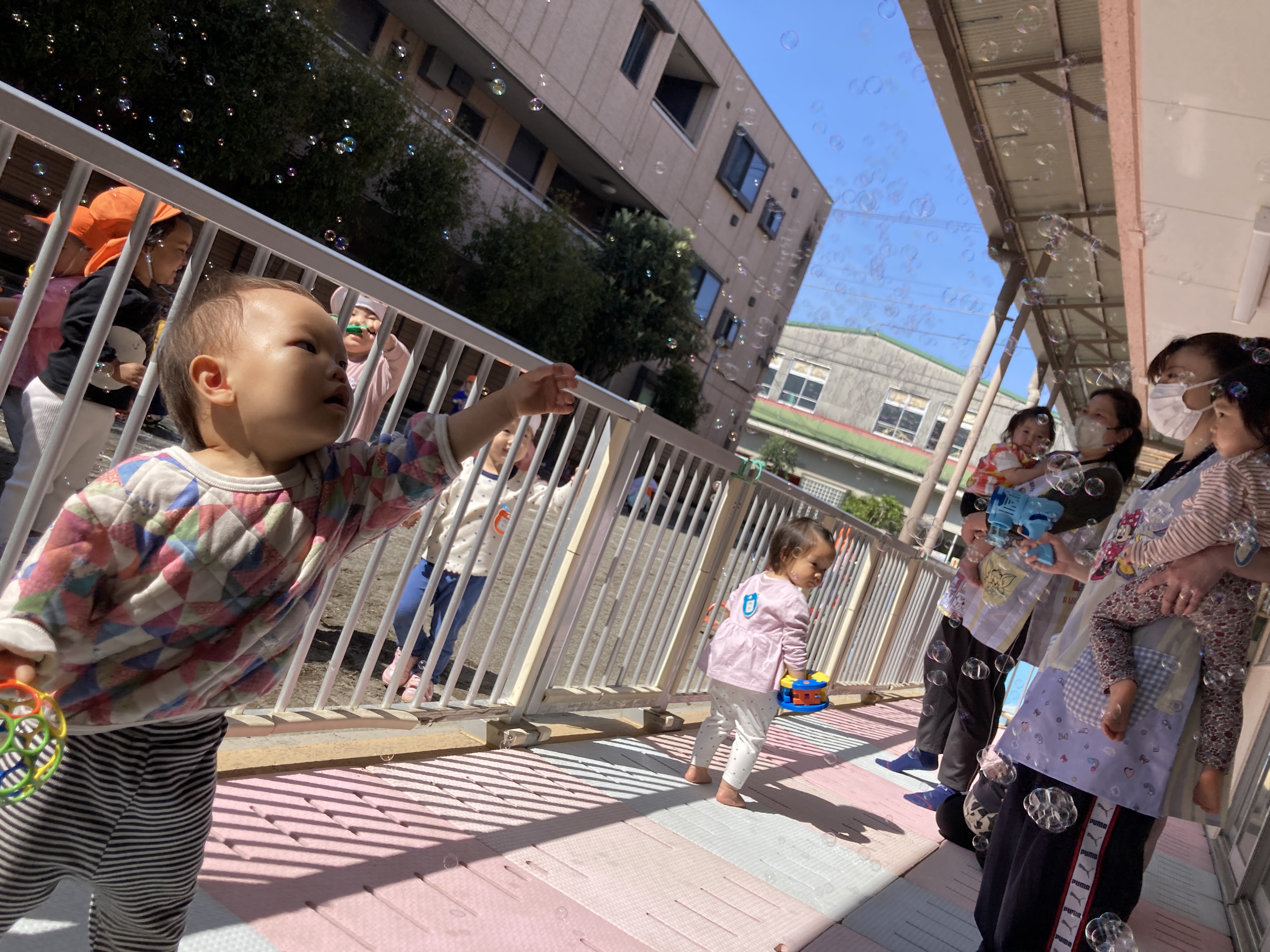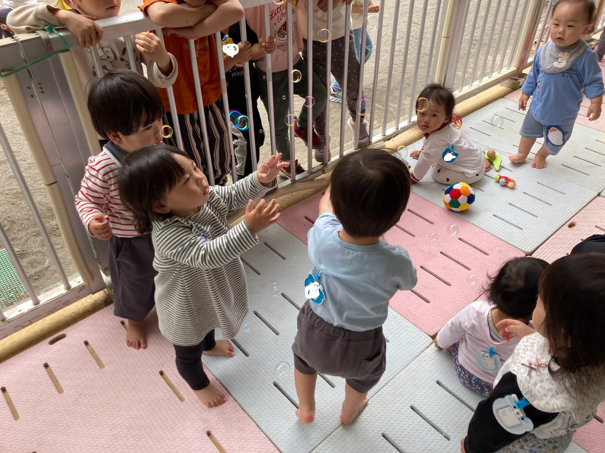 天気のいい日にはテラスに出て日向ぼっこをしたりしゃぼん玉を楽しんでいます。