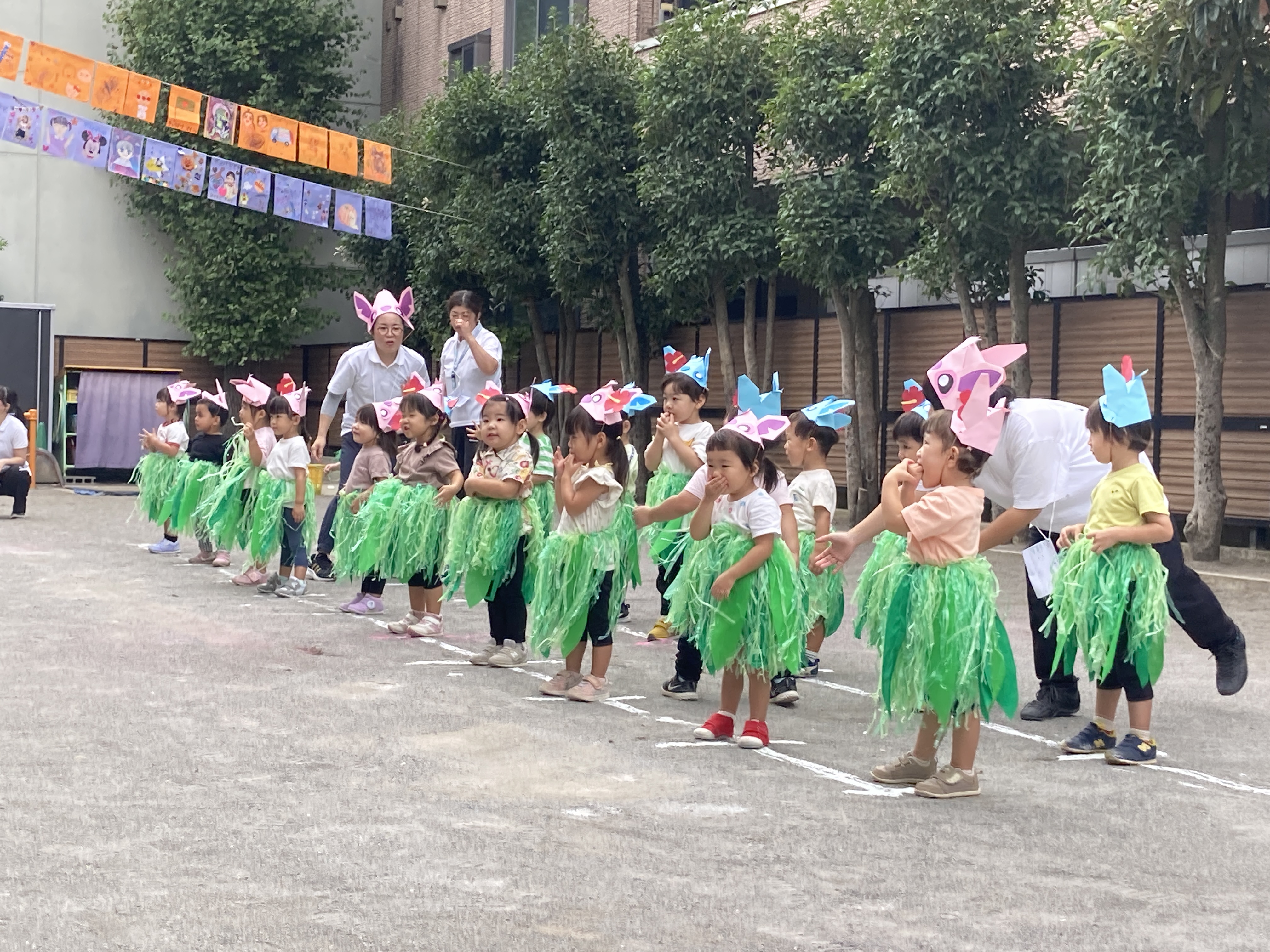 9月には敬老の日にちなんで、祖父母の方々を招待し、歌や楽器の演奏を披露したり、普段園で遊んでいる遊びを一緒に楽しんでいただきました。