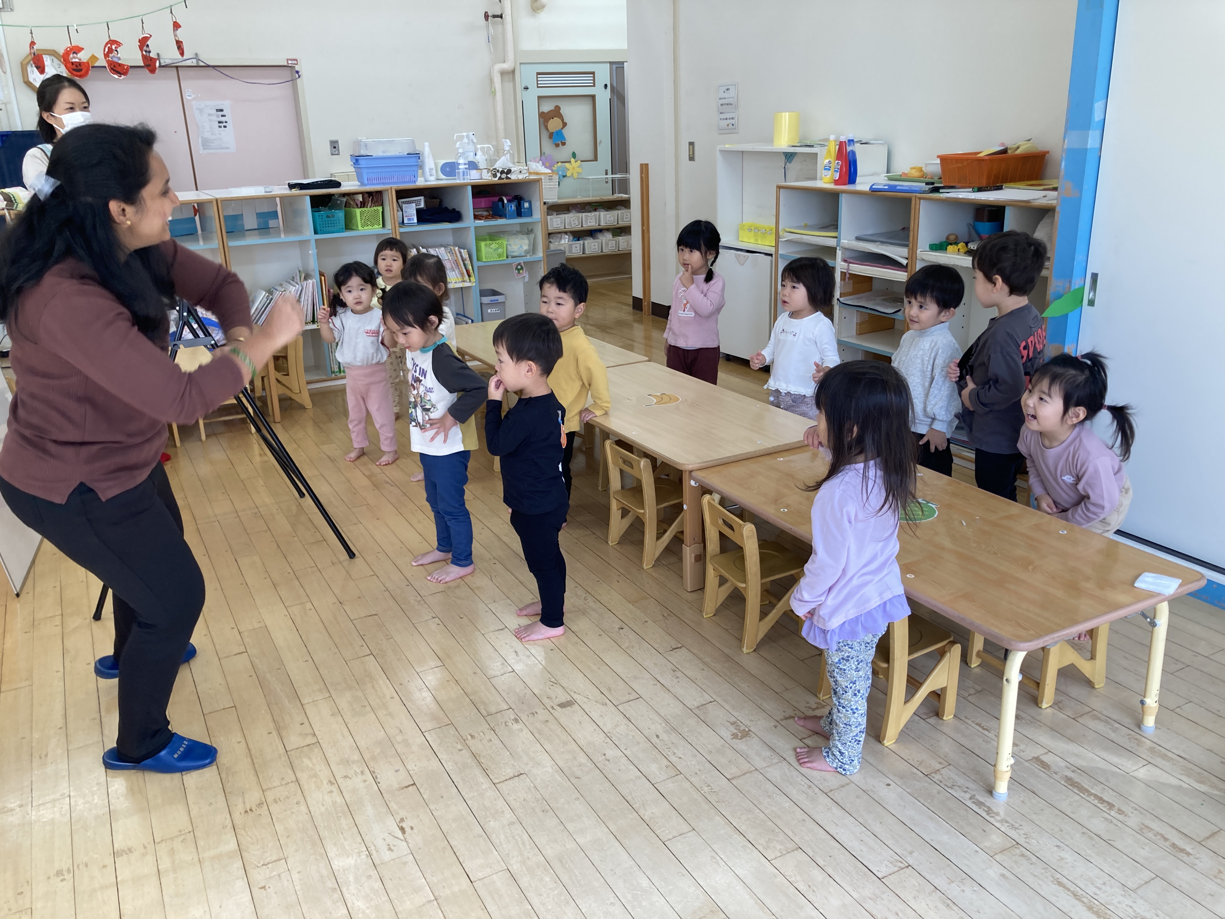 初めての英語遊び。はっぴぃ~みんなノリノリ楽しいな。