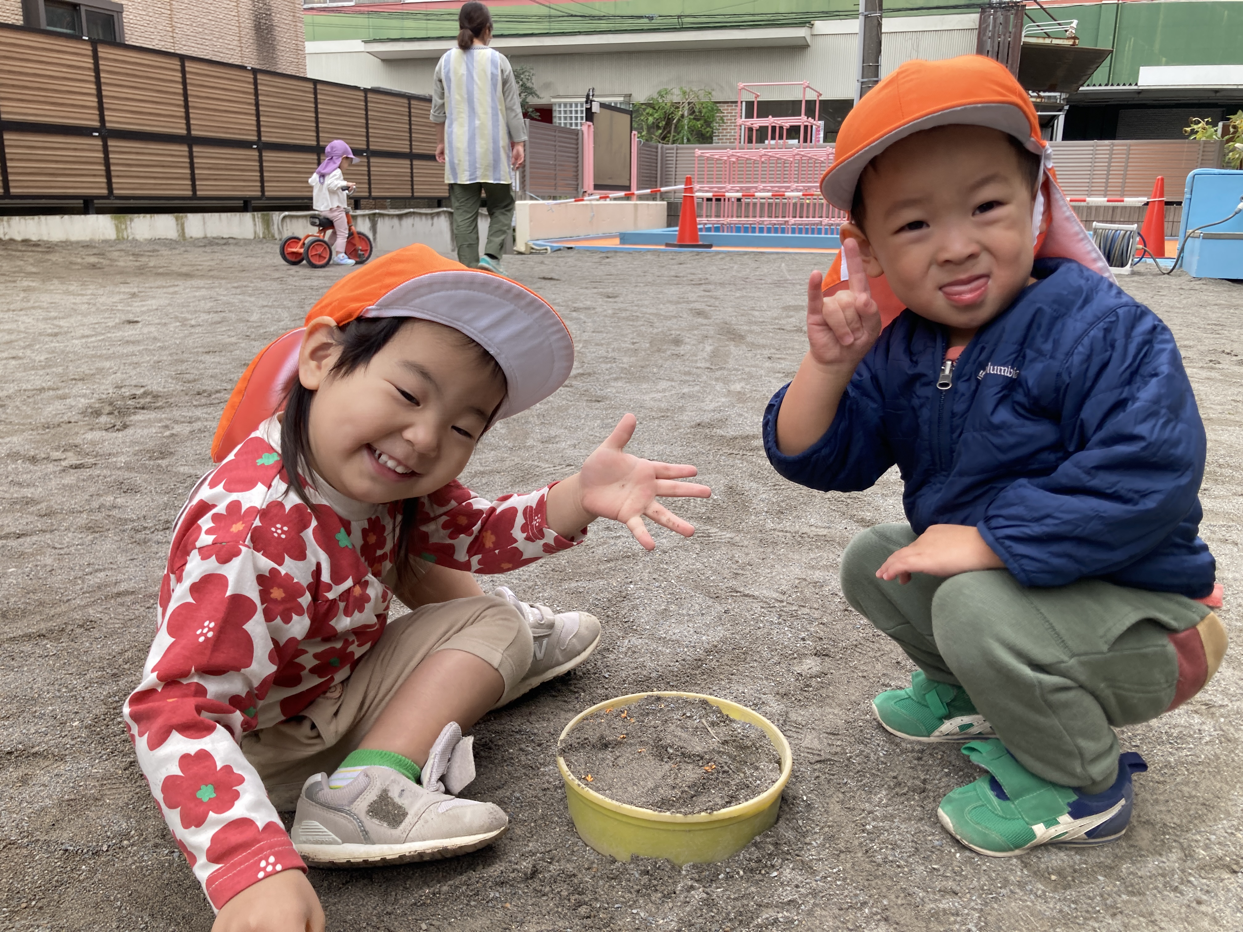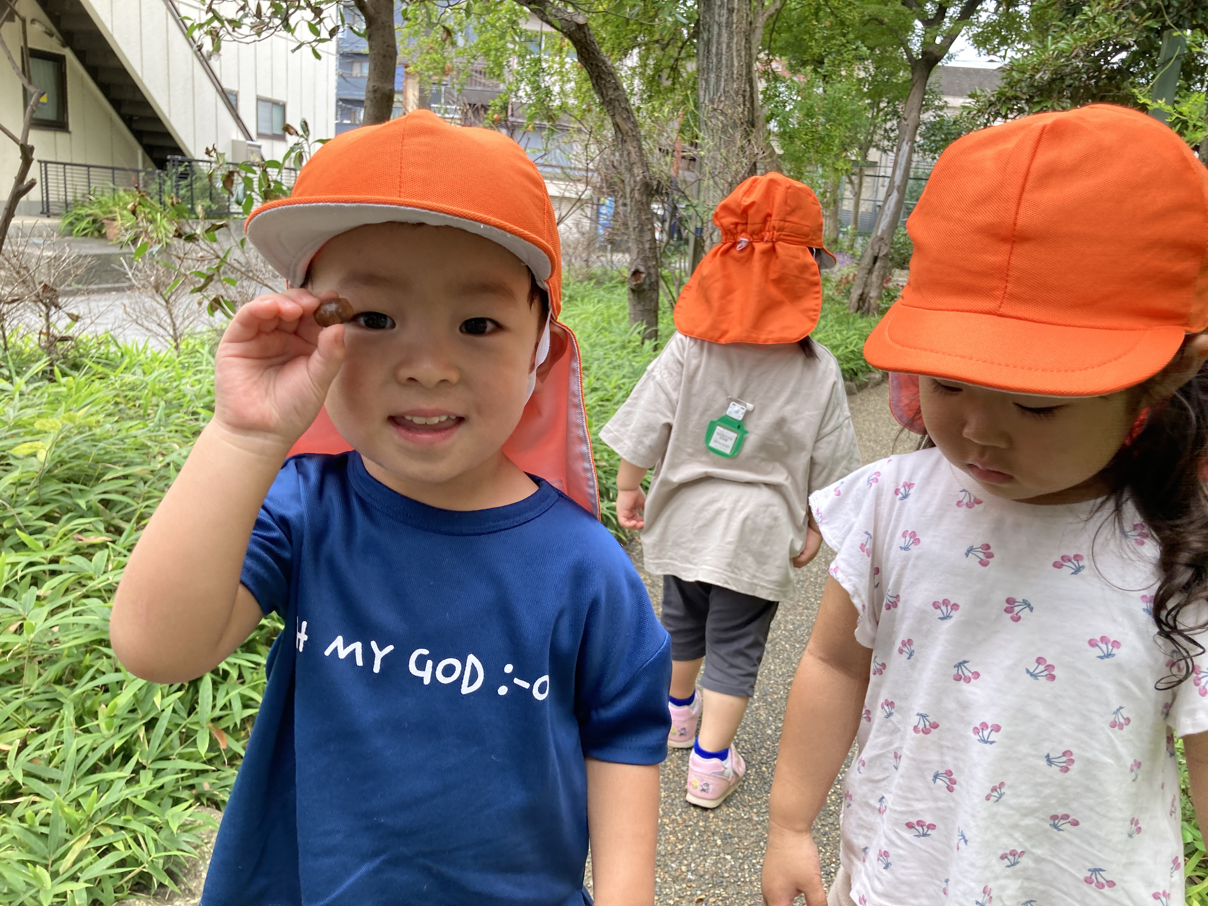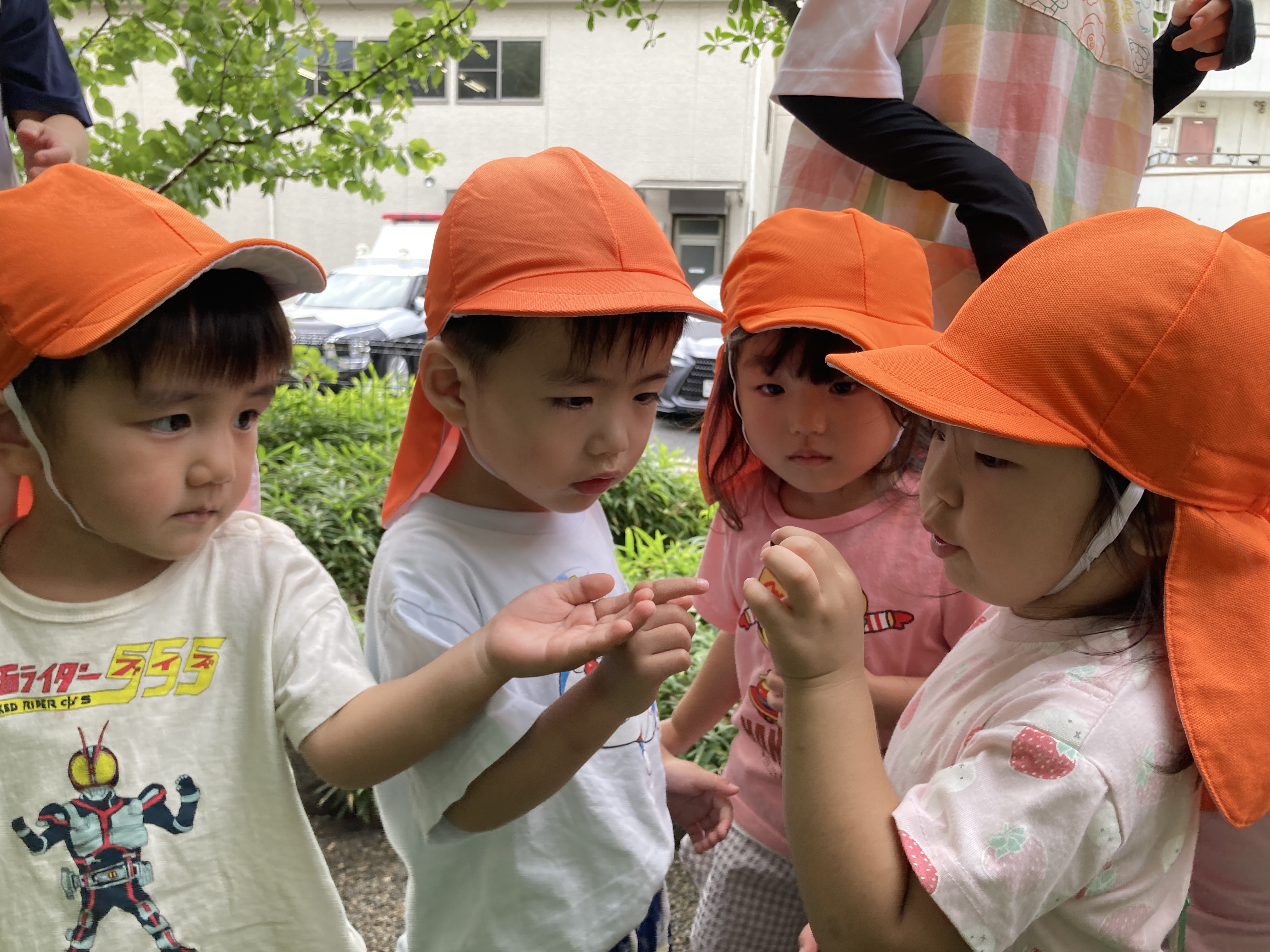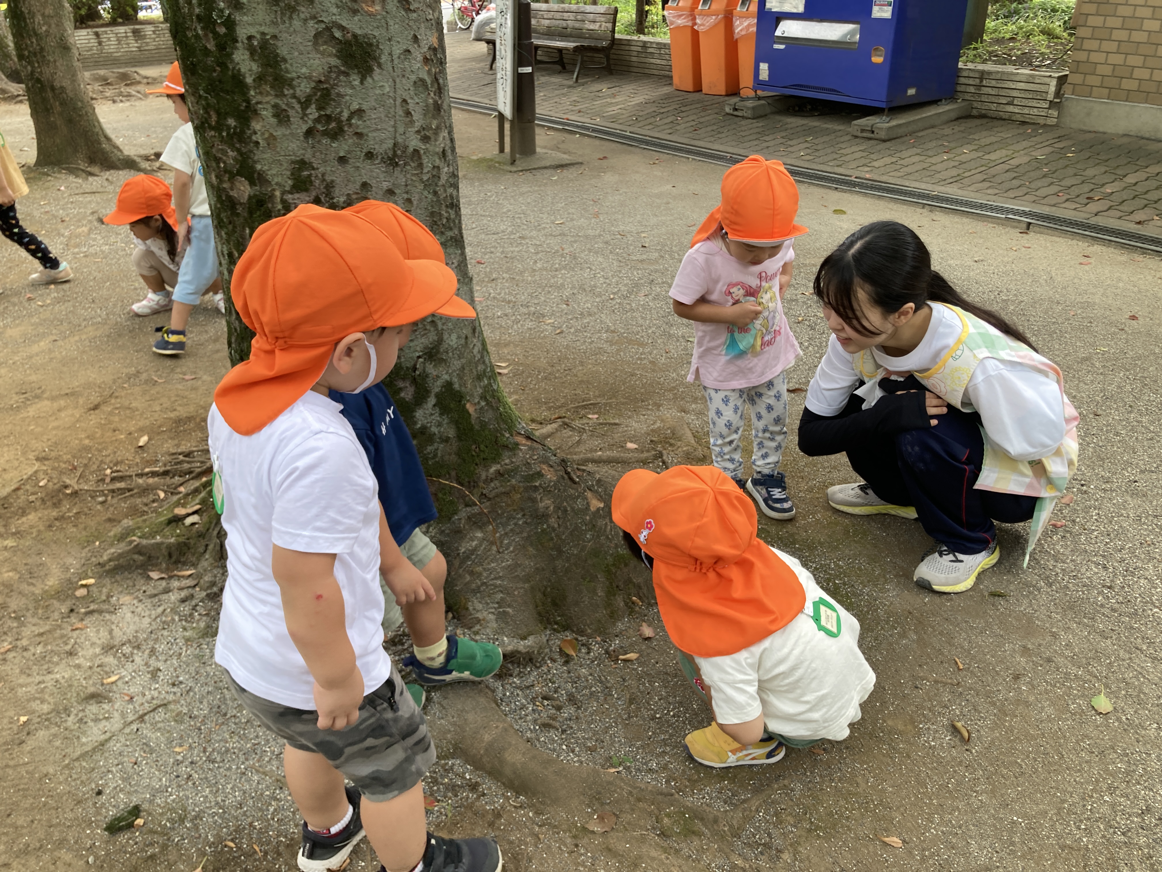「アリさんが何か運んでるね~。「がんばれ~」