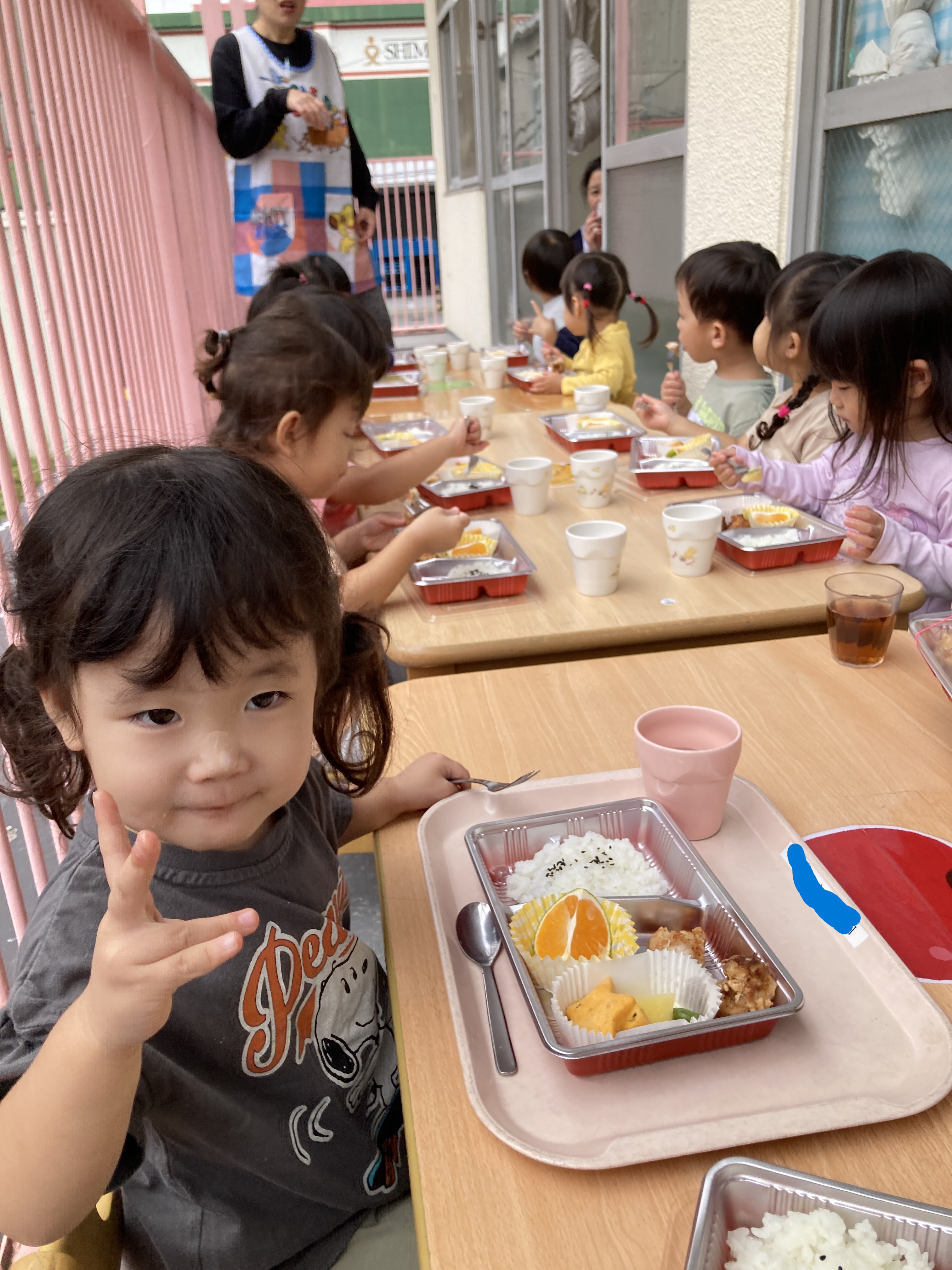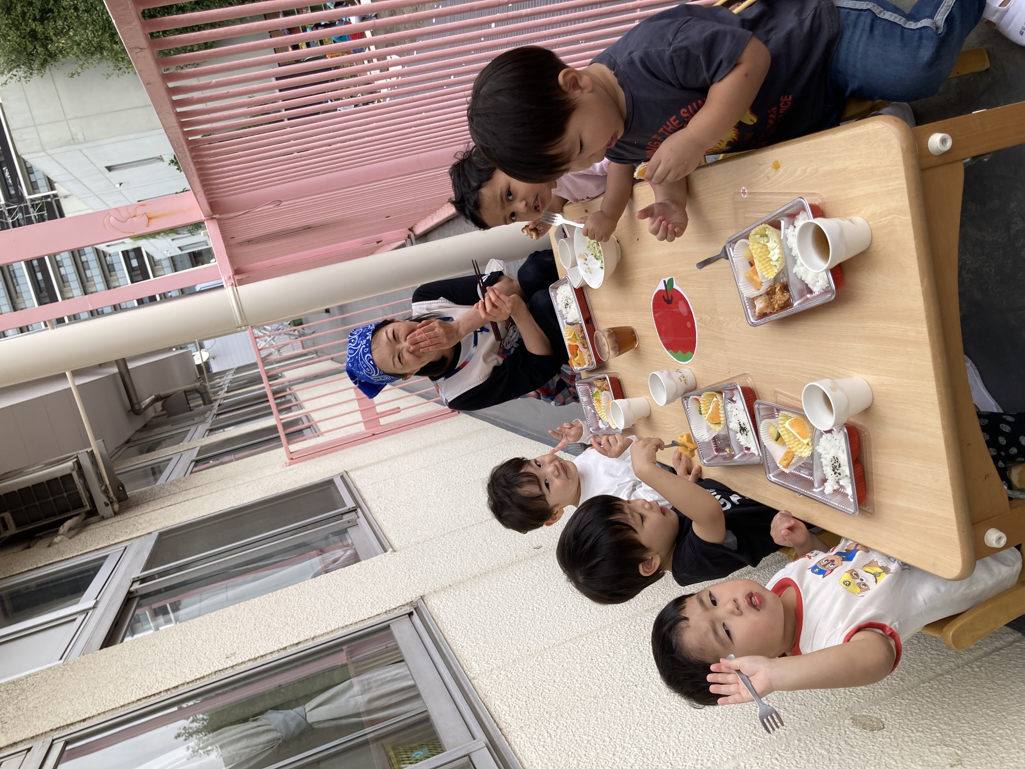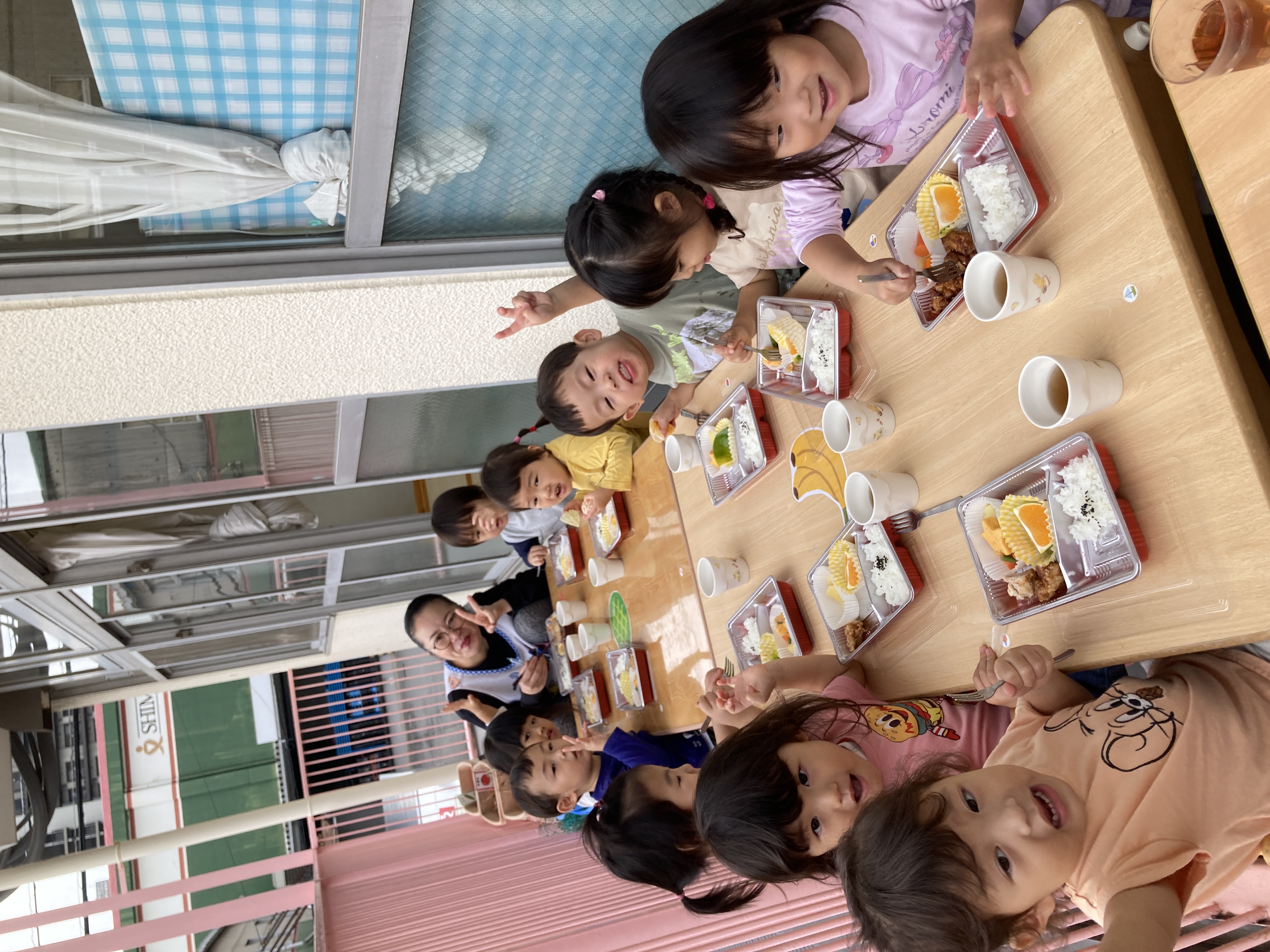 たんぽぽ組のテラスで食べました。
