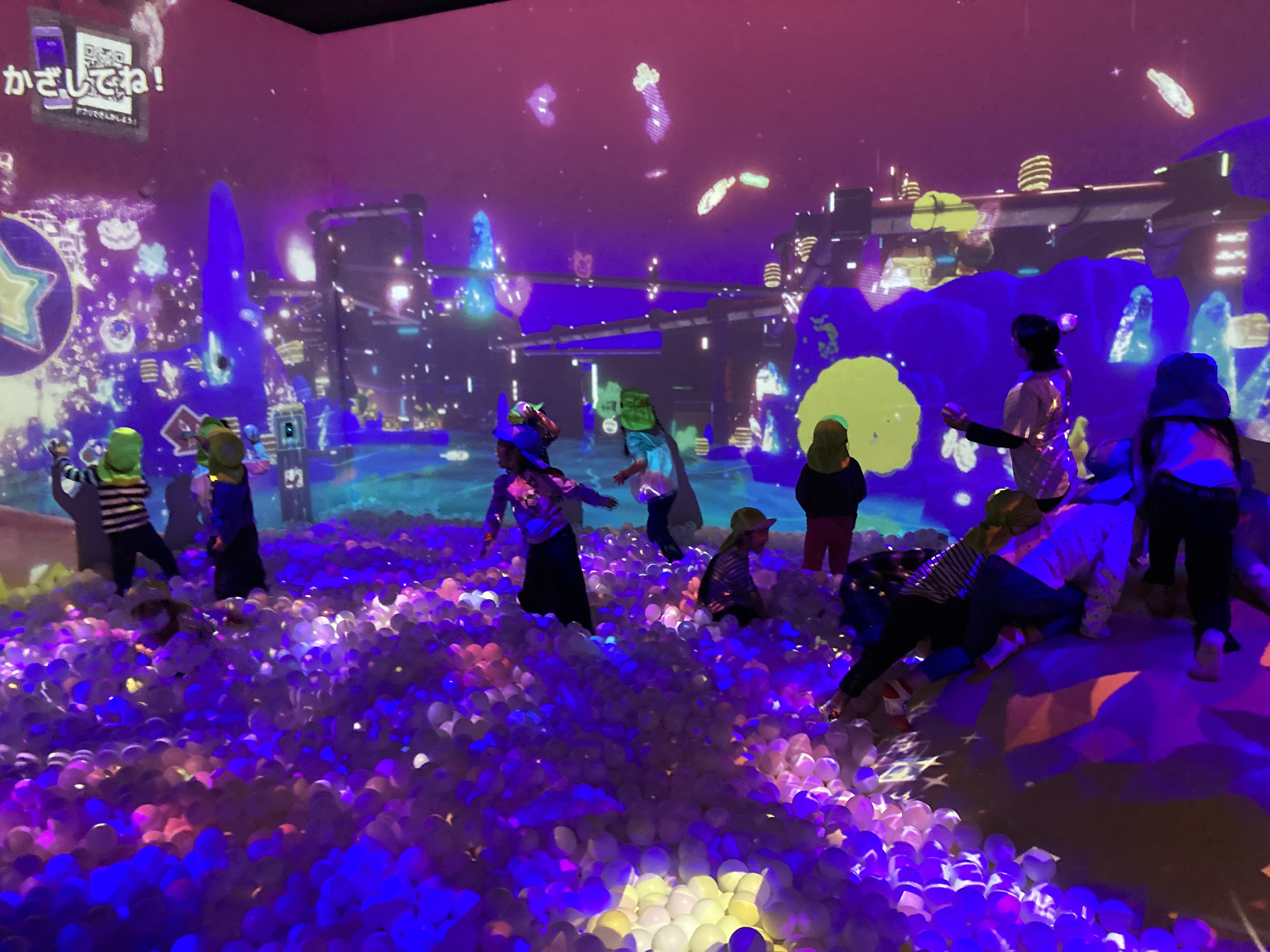 ボールプールのコーナーは大人気で、飛び込んでみたり、横になってみたりと気持ち良さそうでした。真ん中にある山にみんなで集まって乗りおしくらまんじゅう状態でした。