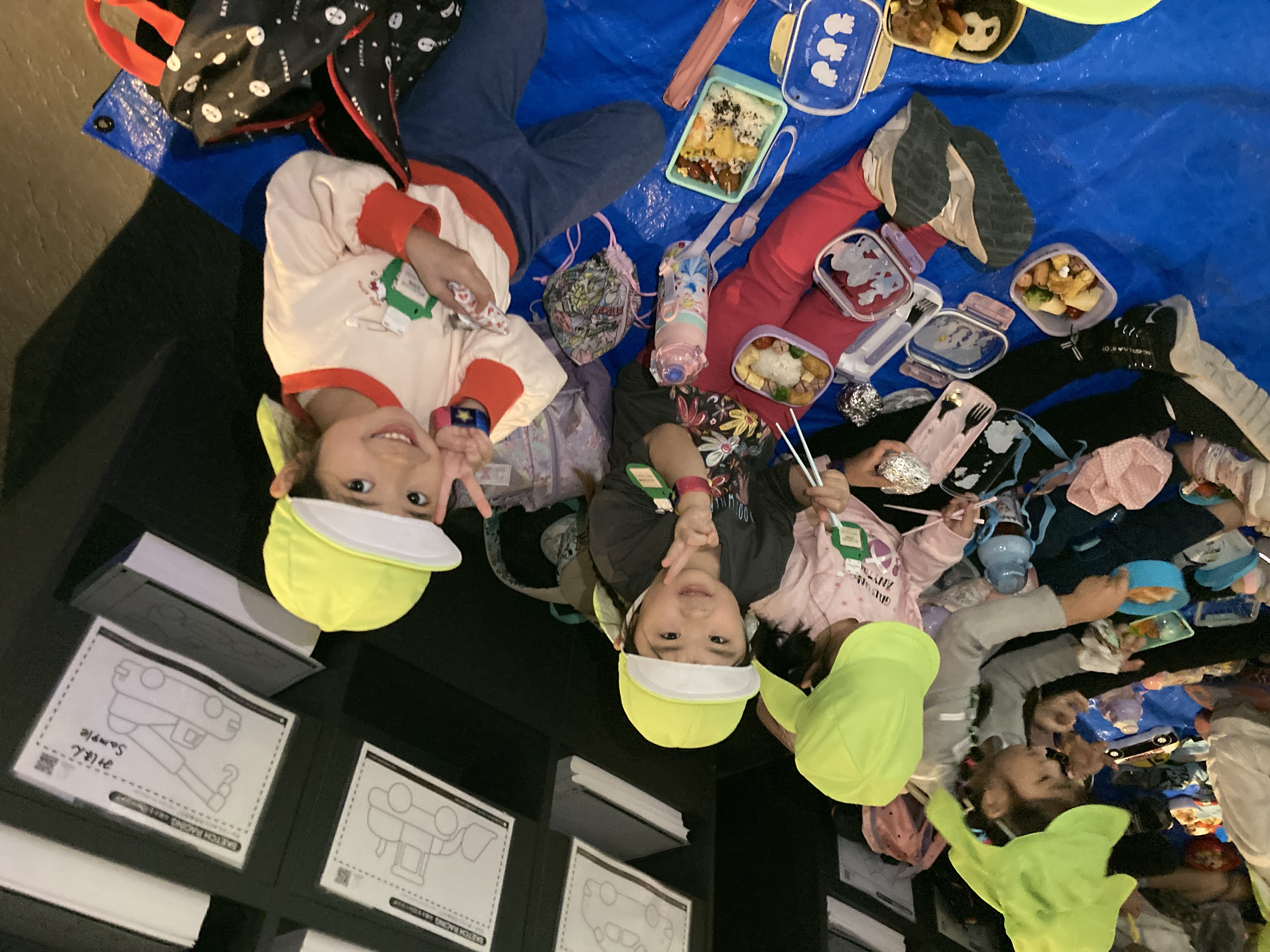 到着するとまずはお弁当を食べました。お友だちとお弁当の中身を見せ合いっこをしながら、お家の人が作ってくれた美味しいお弁当をお腹いっぱい食べました!