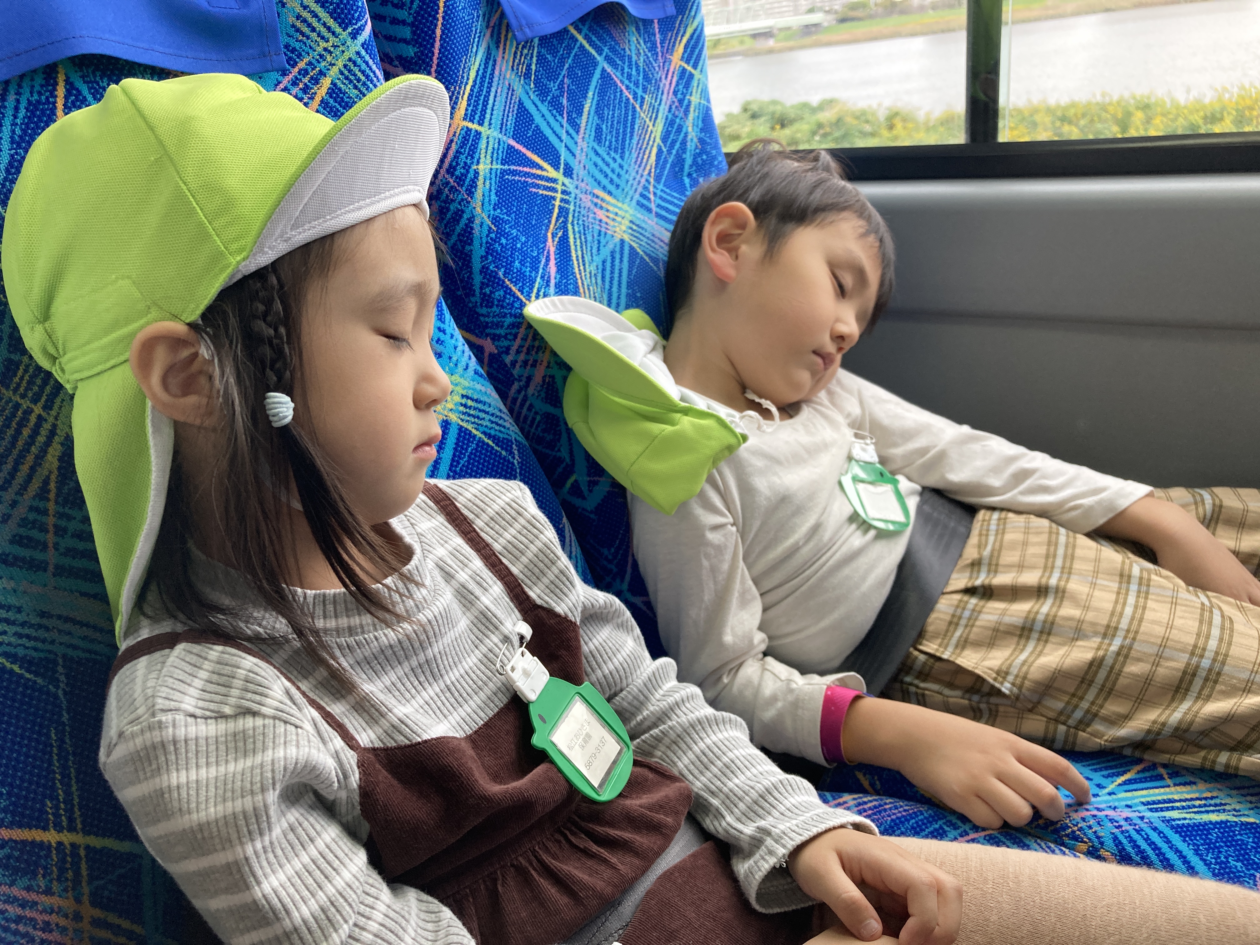 帰りのバスでは、思い出を振り返りながら少しお話を楽しむと、遊び疲れてすやすやと眠っていました。