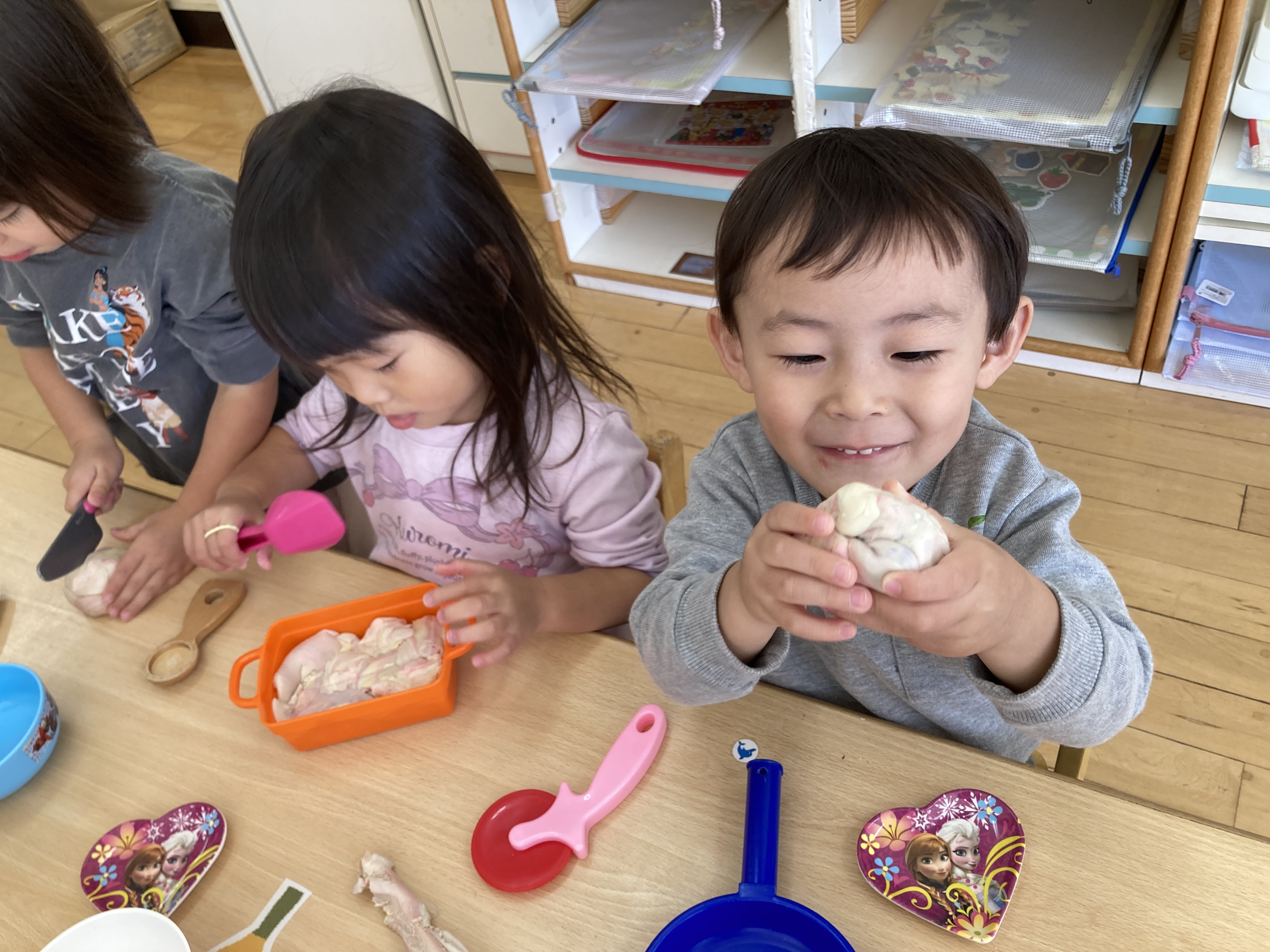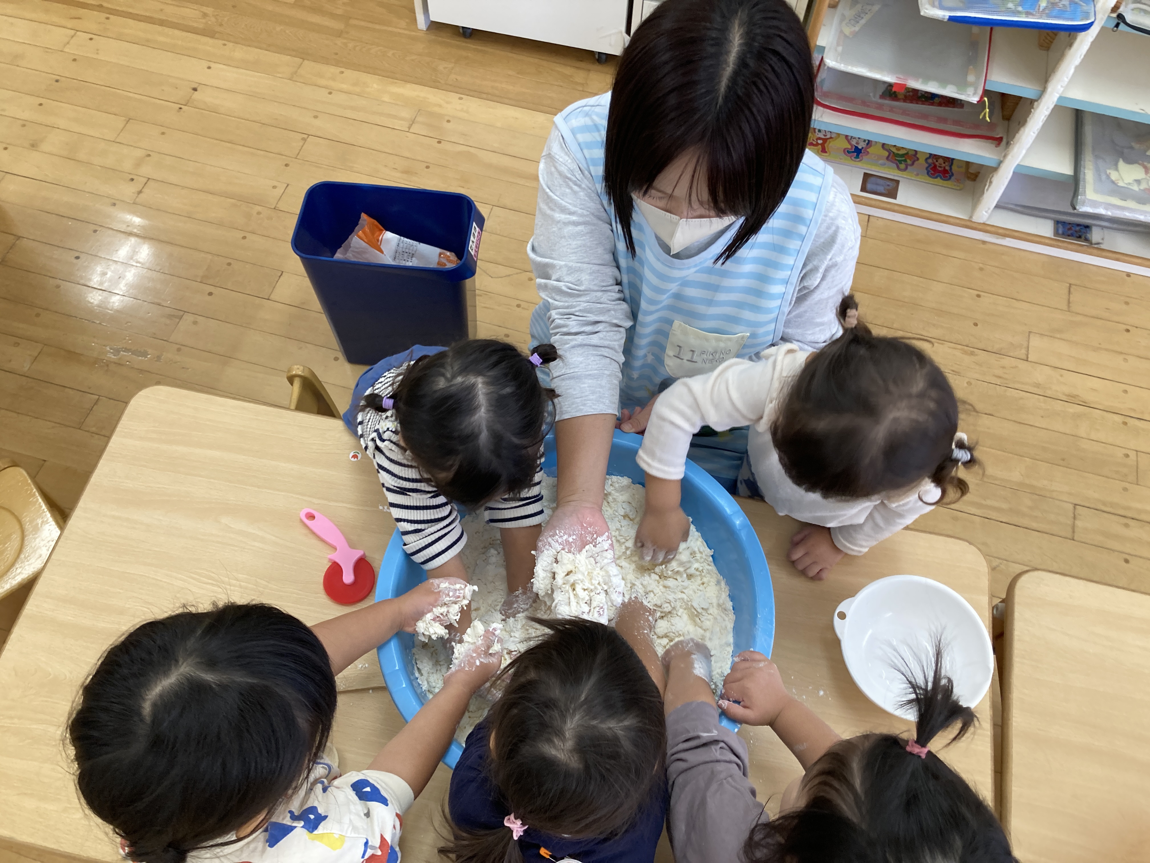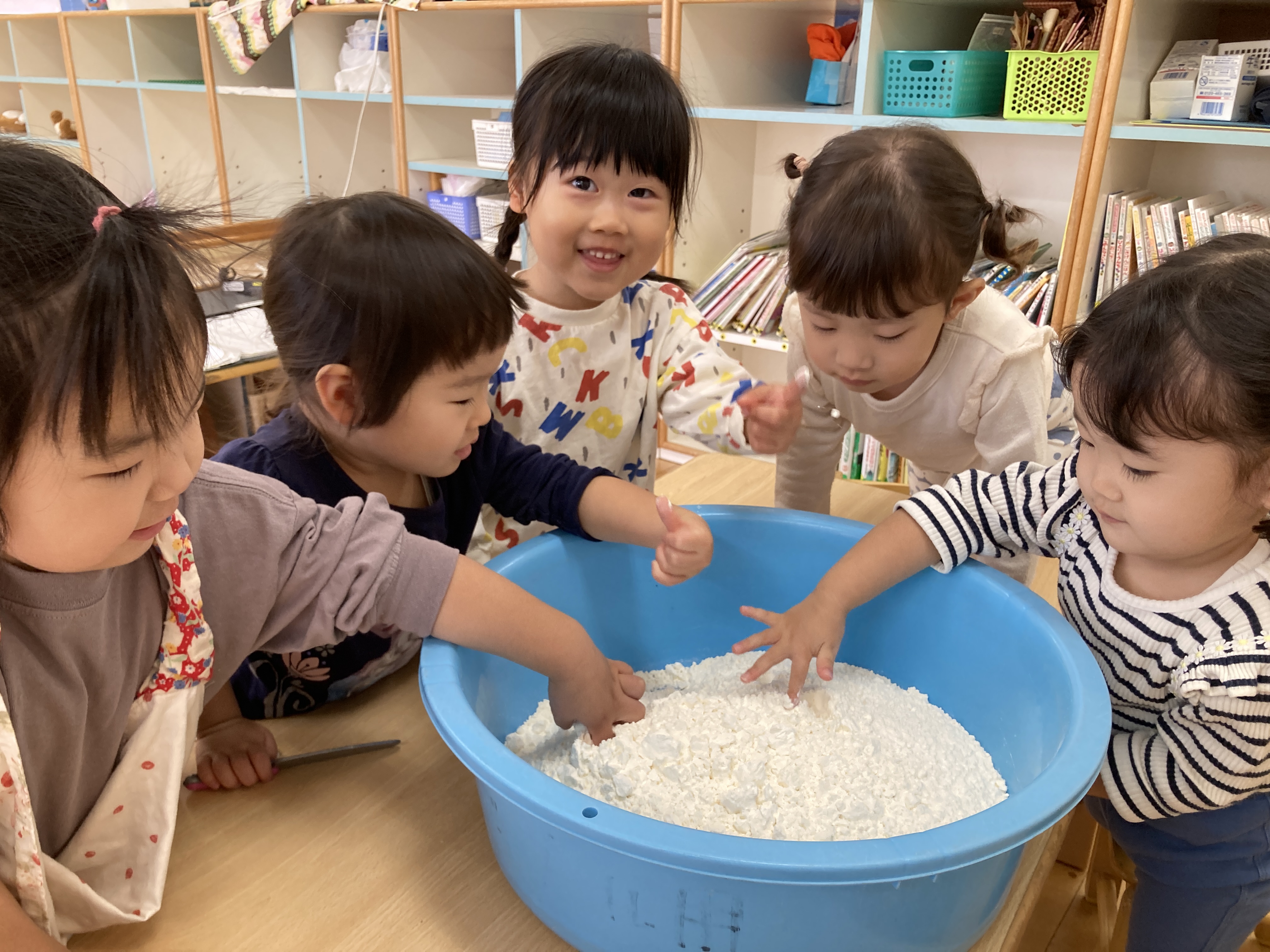 2歳児クラスも、小麦粉粘土遊びを楽しみました!