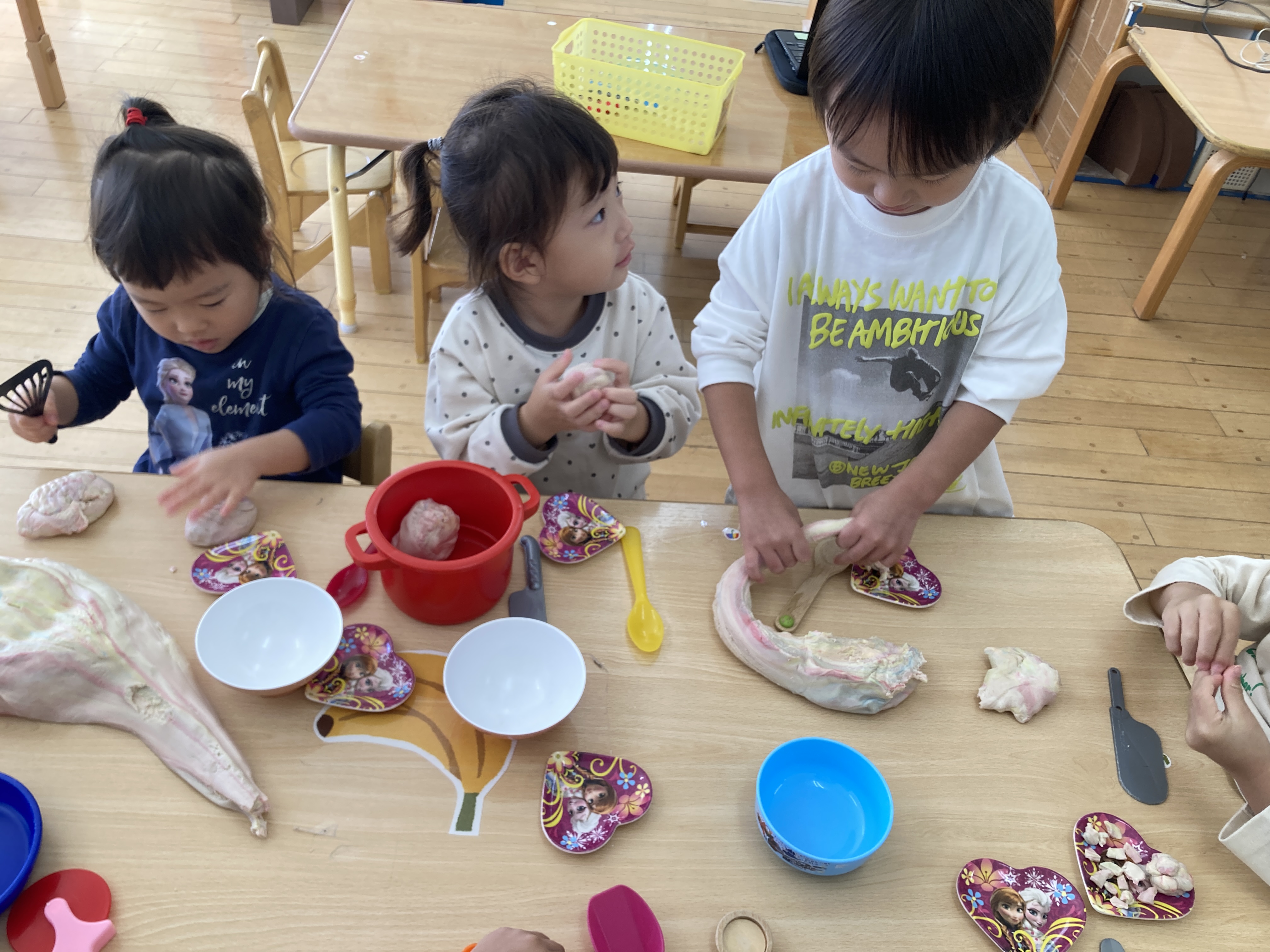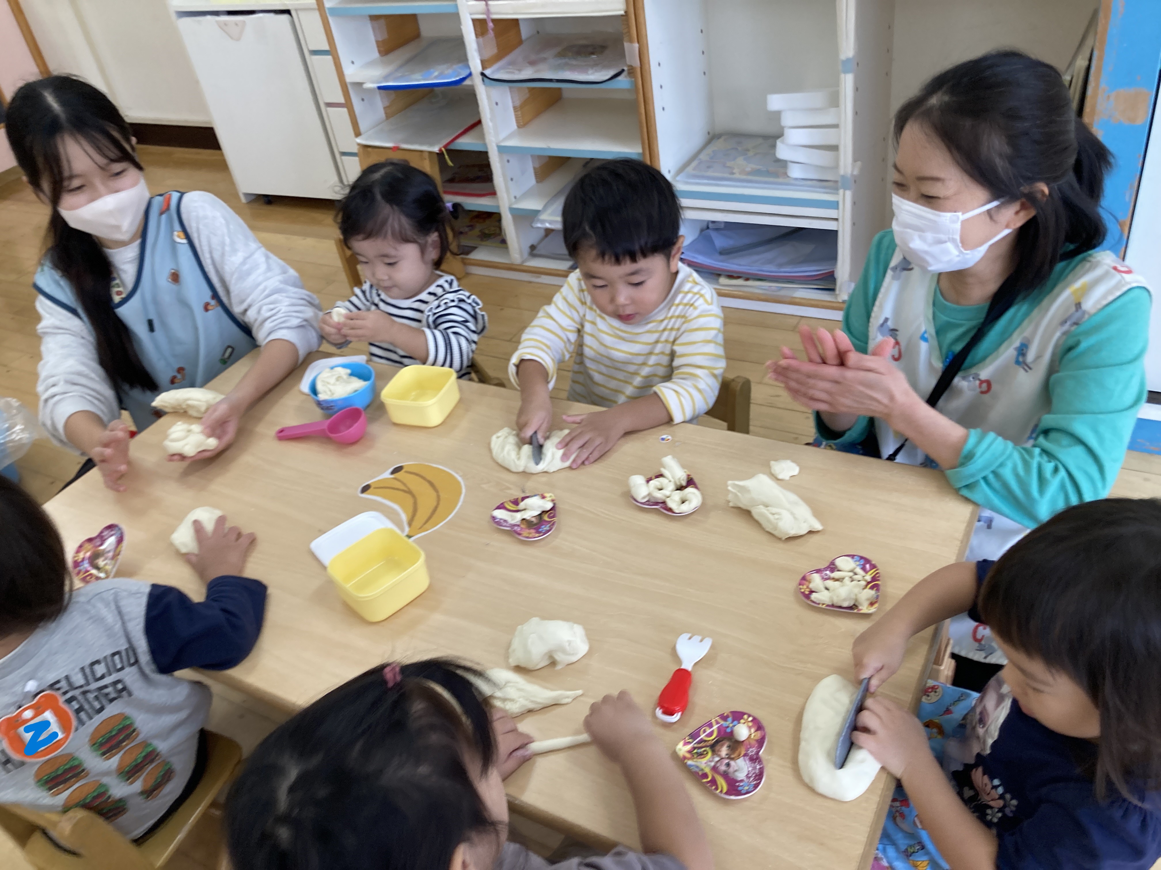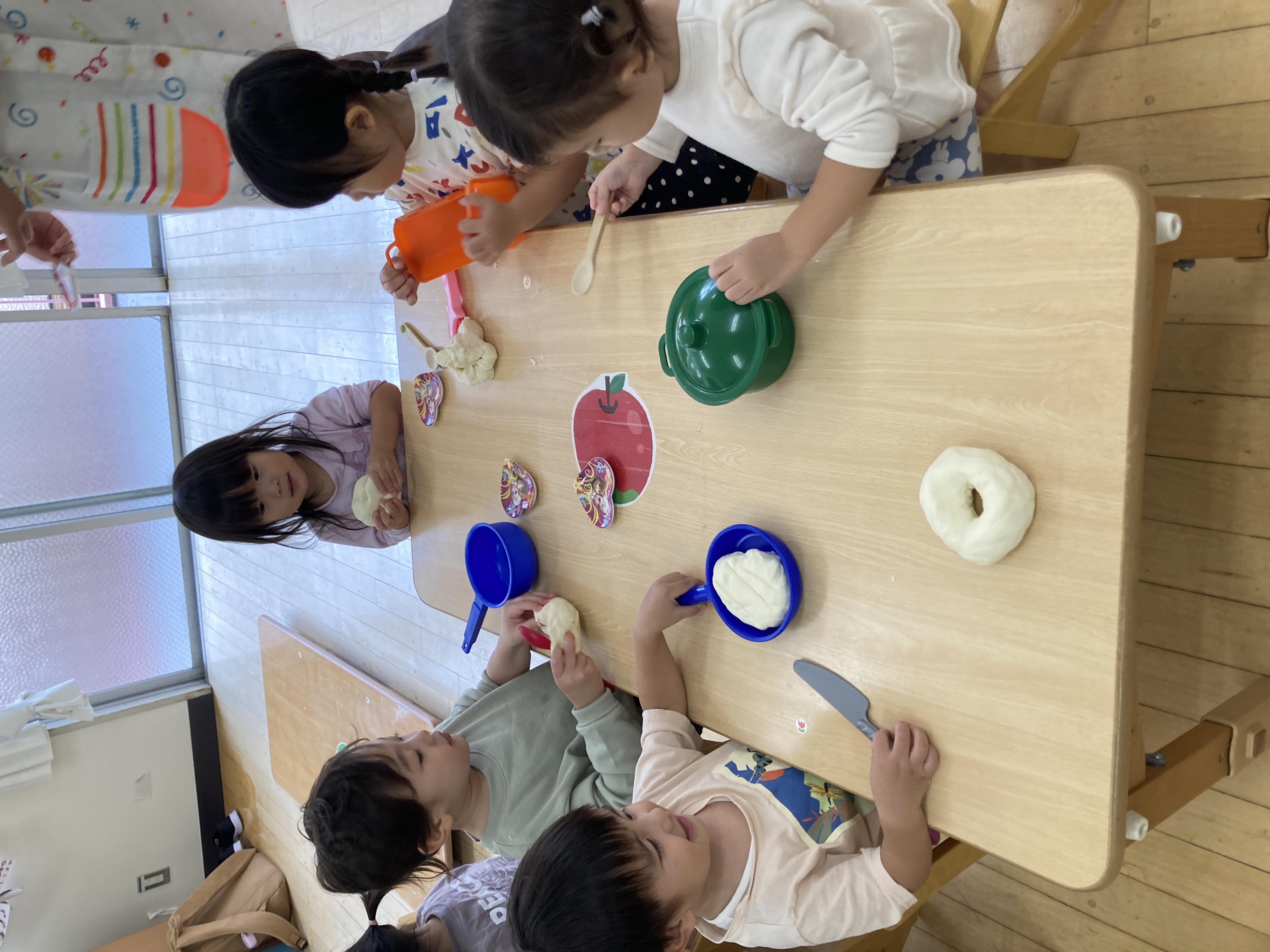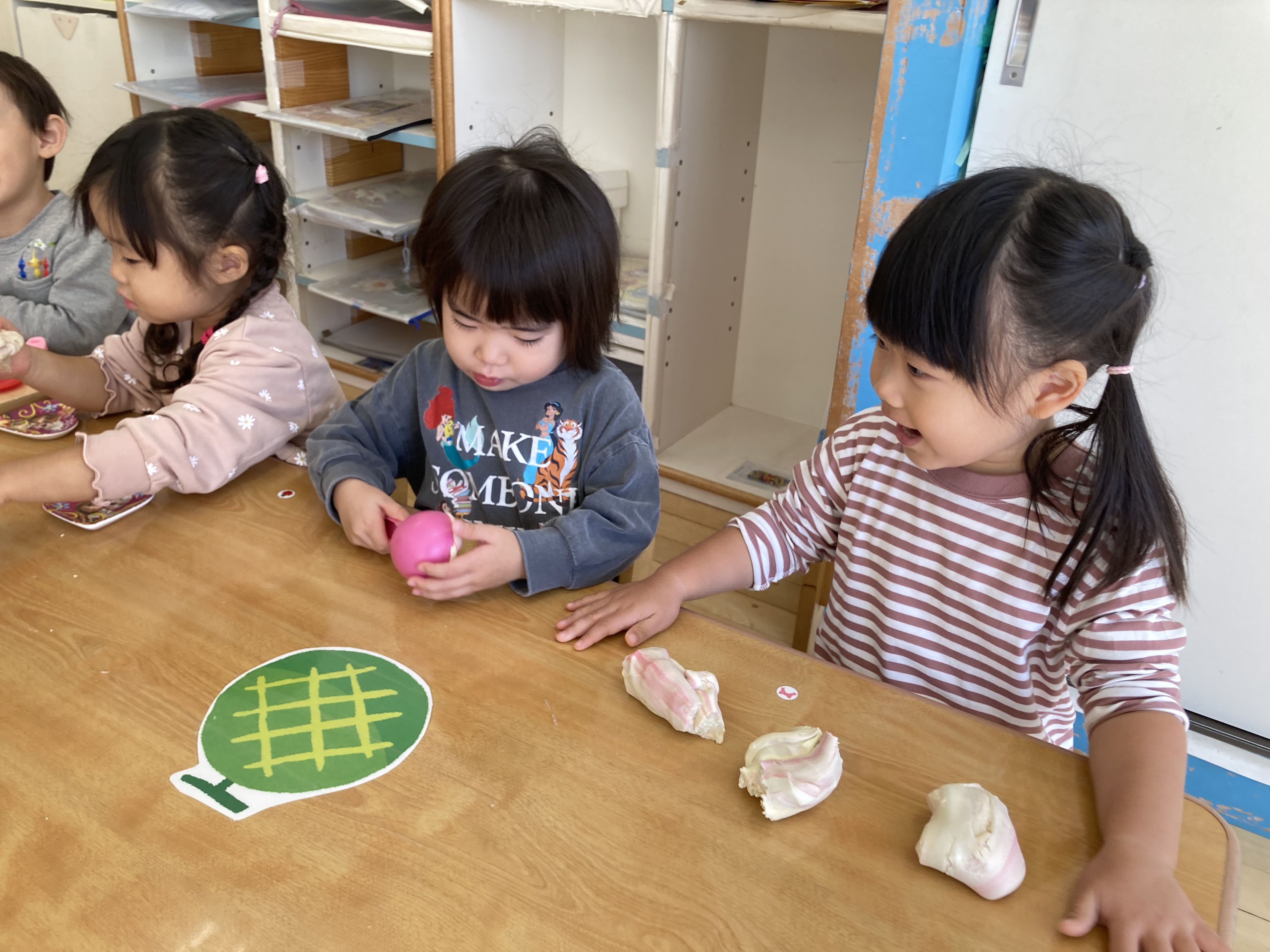 2歳児クラスも、小麦粉粘土遊びを楽しみました!