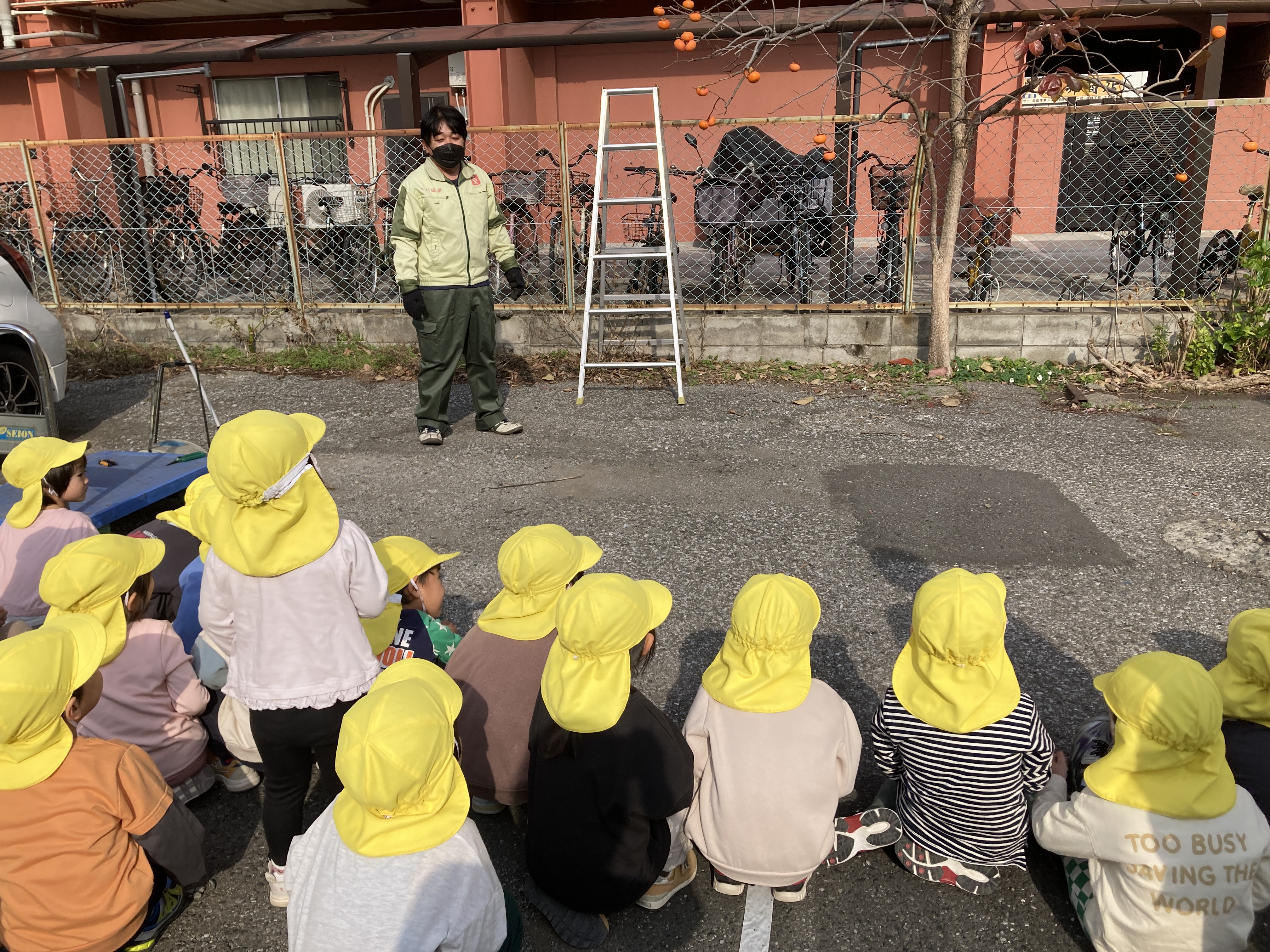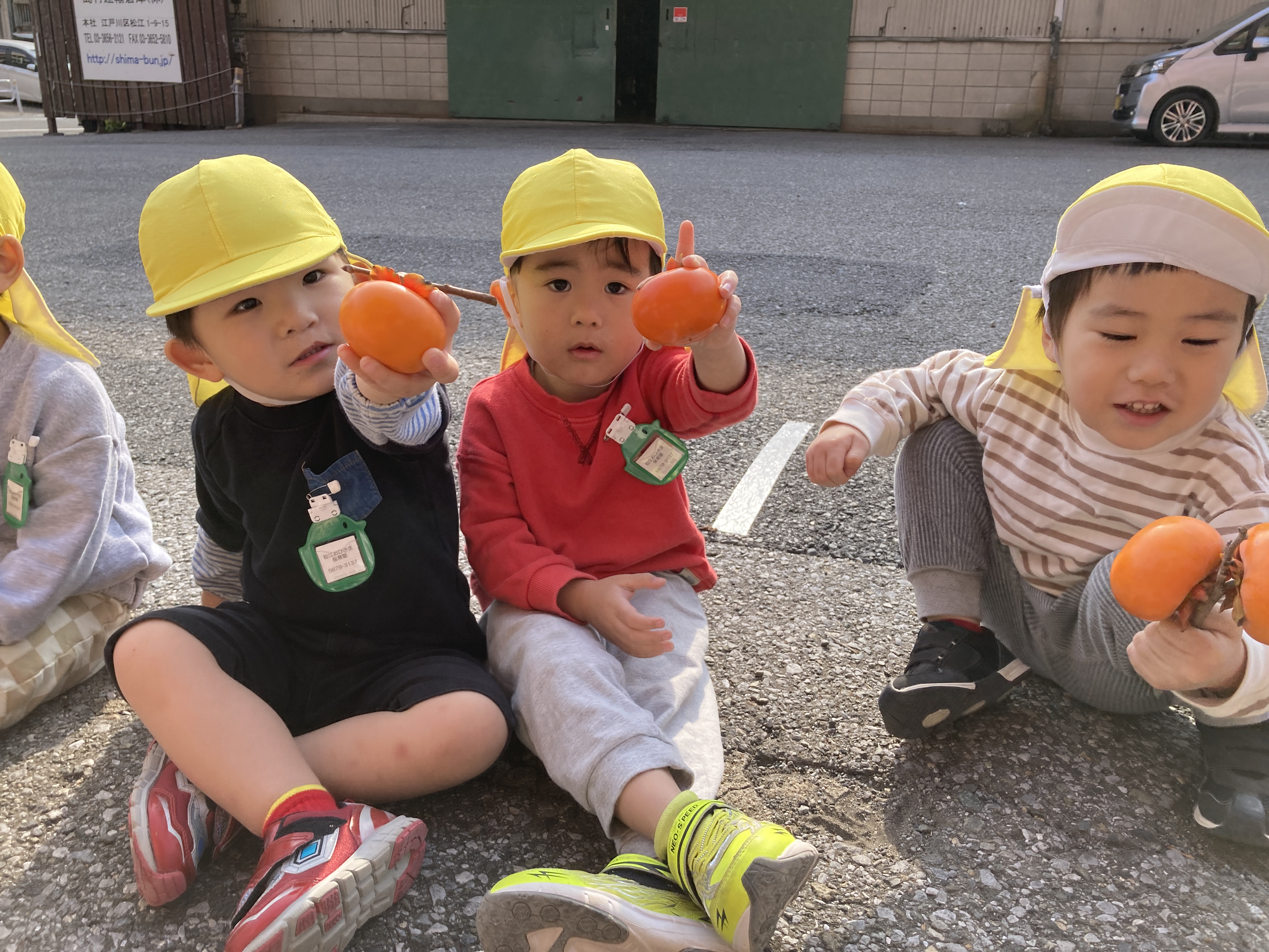 今日は保育園の向かいにある島村運送会社さんにてやま組のみんなで柿の収穫に行ってきました♪