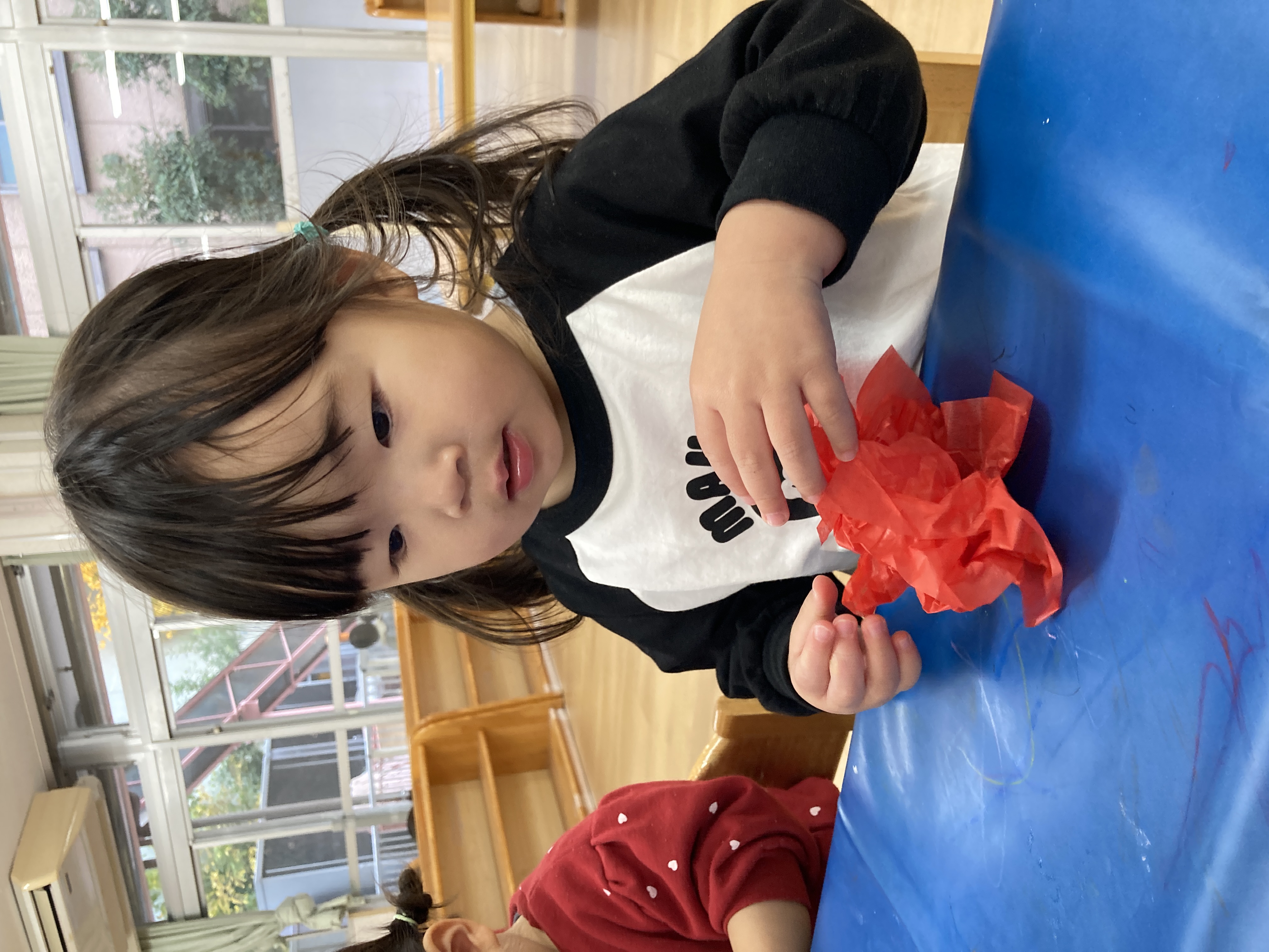 お花紙を触ってくしゃくしゃしてとても楽しそうでした。