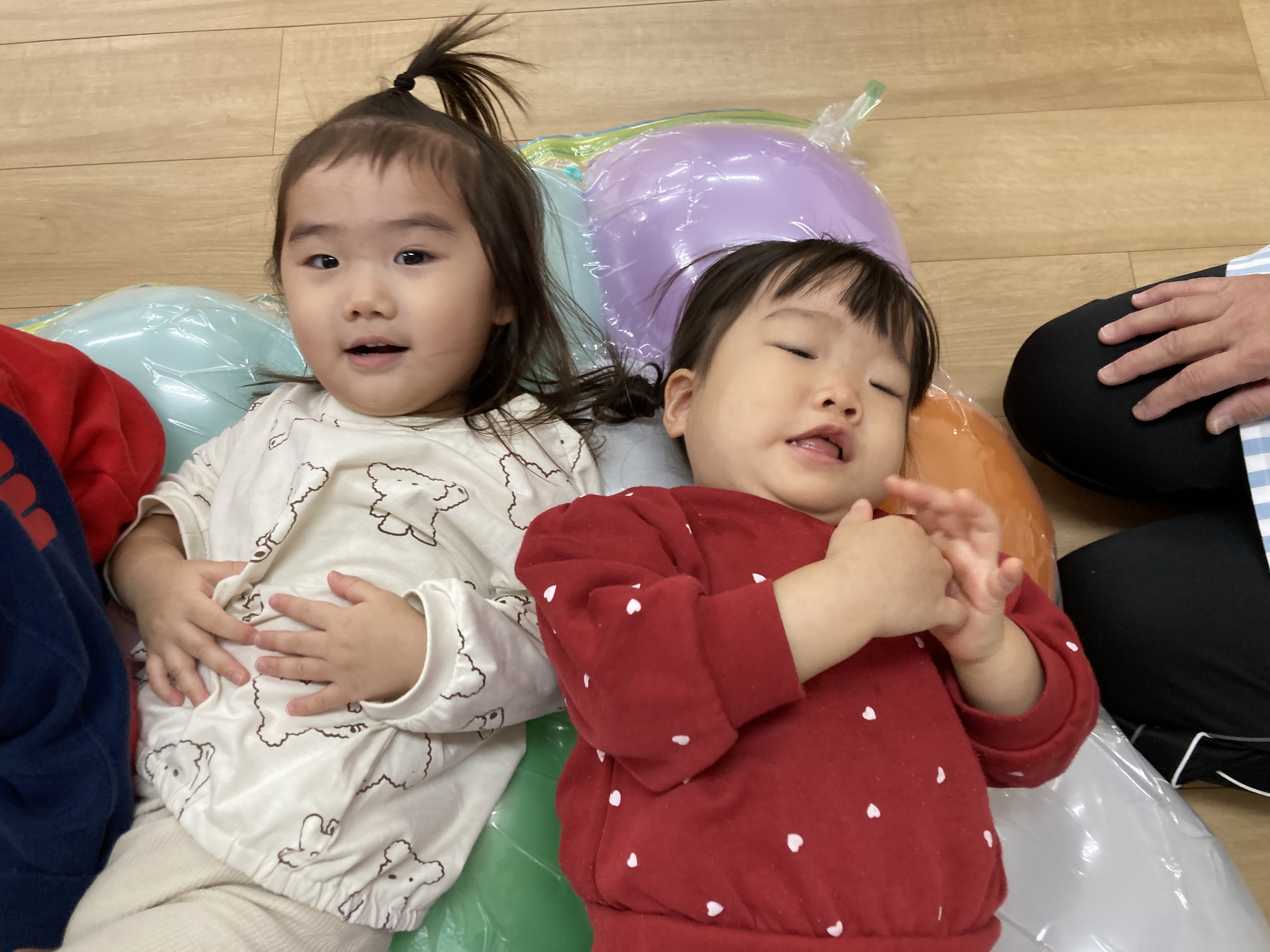 風船遊びの途中で風船がパン!と割れてびっくりする場面もありましたが