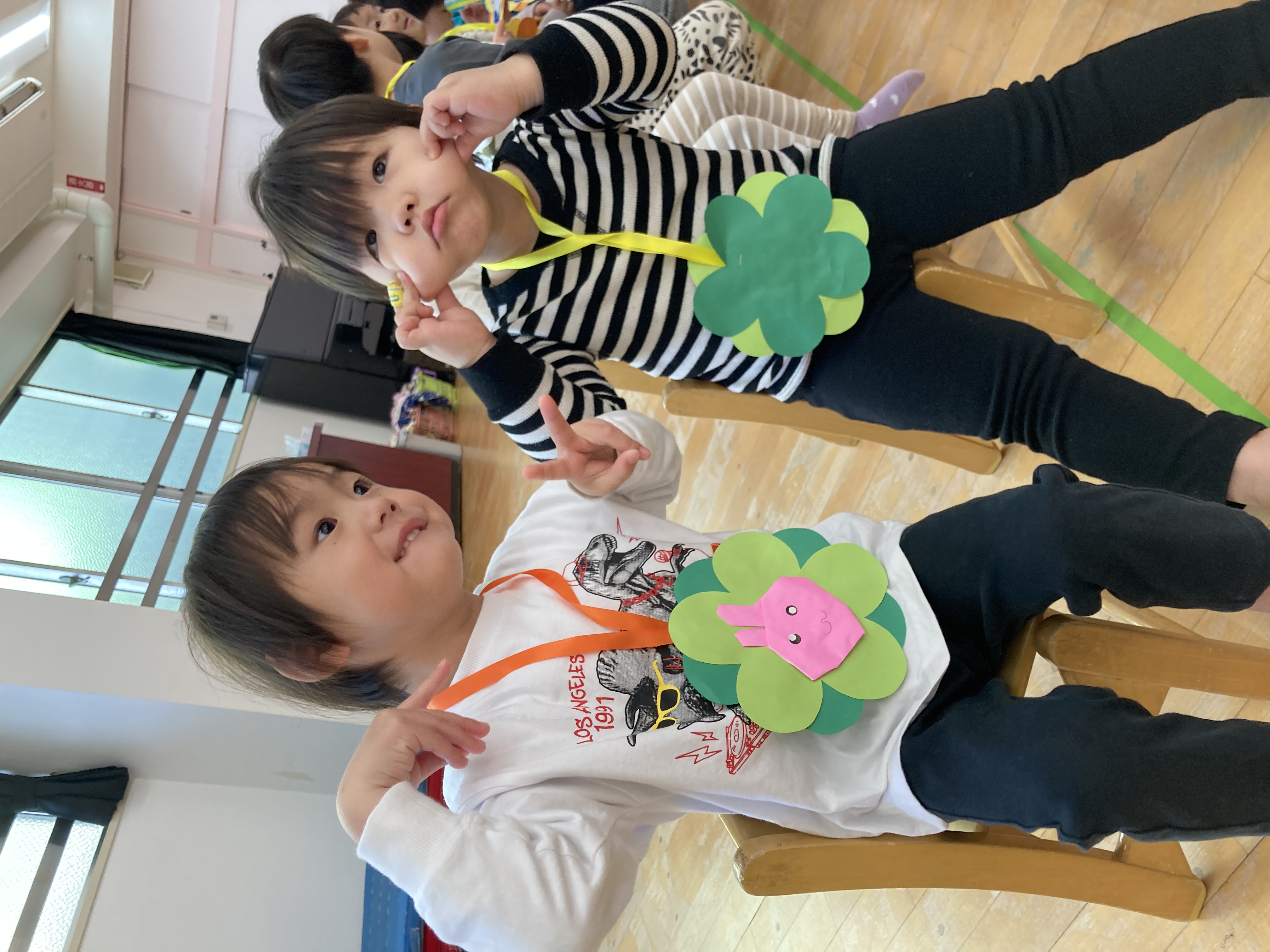 そして5歳児たいよう組のお兄さん、お姉さんからメダルのプレゼントをもらいました!