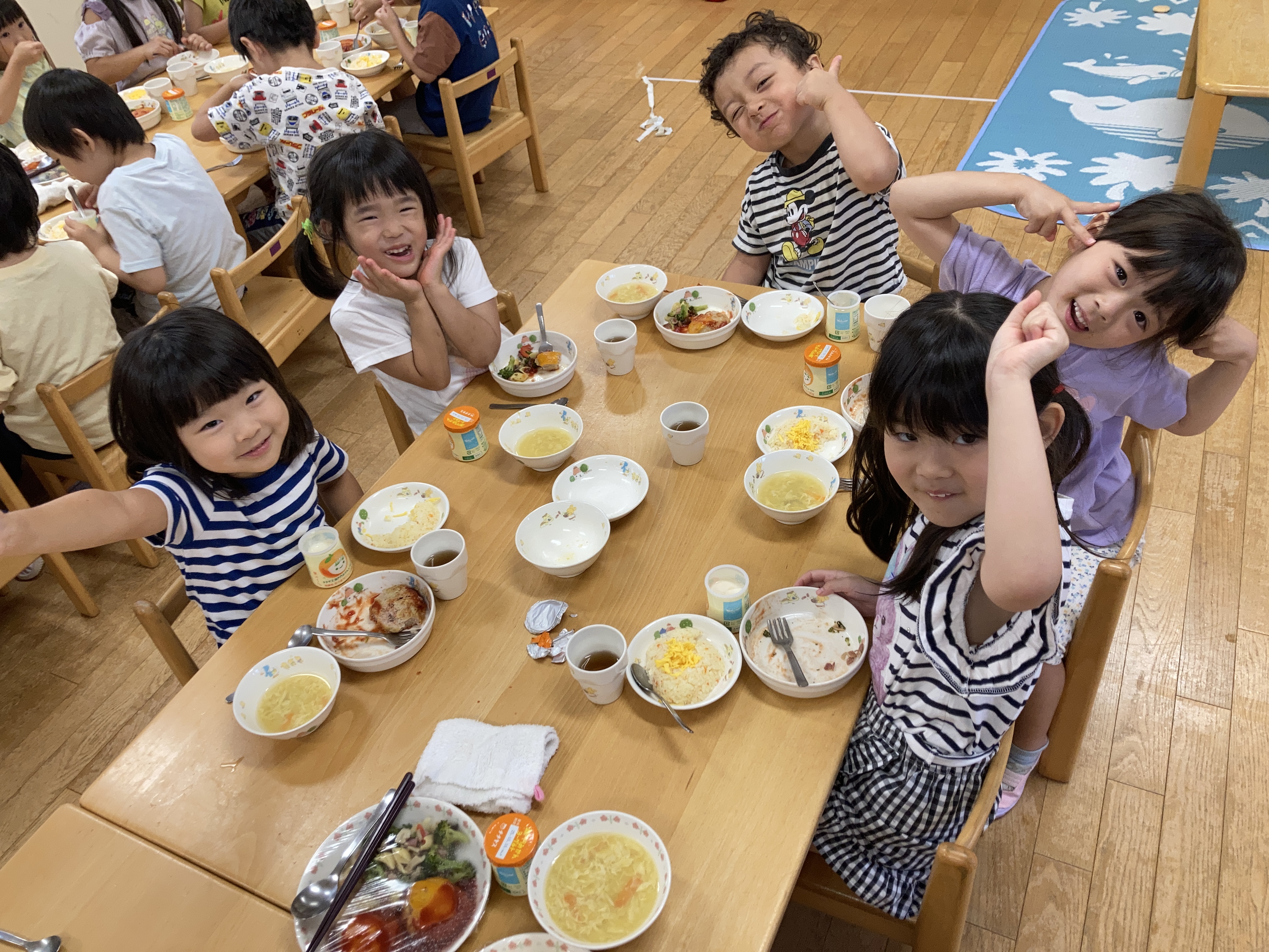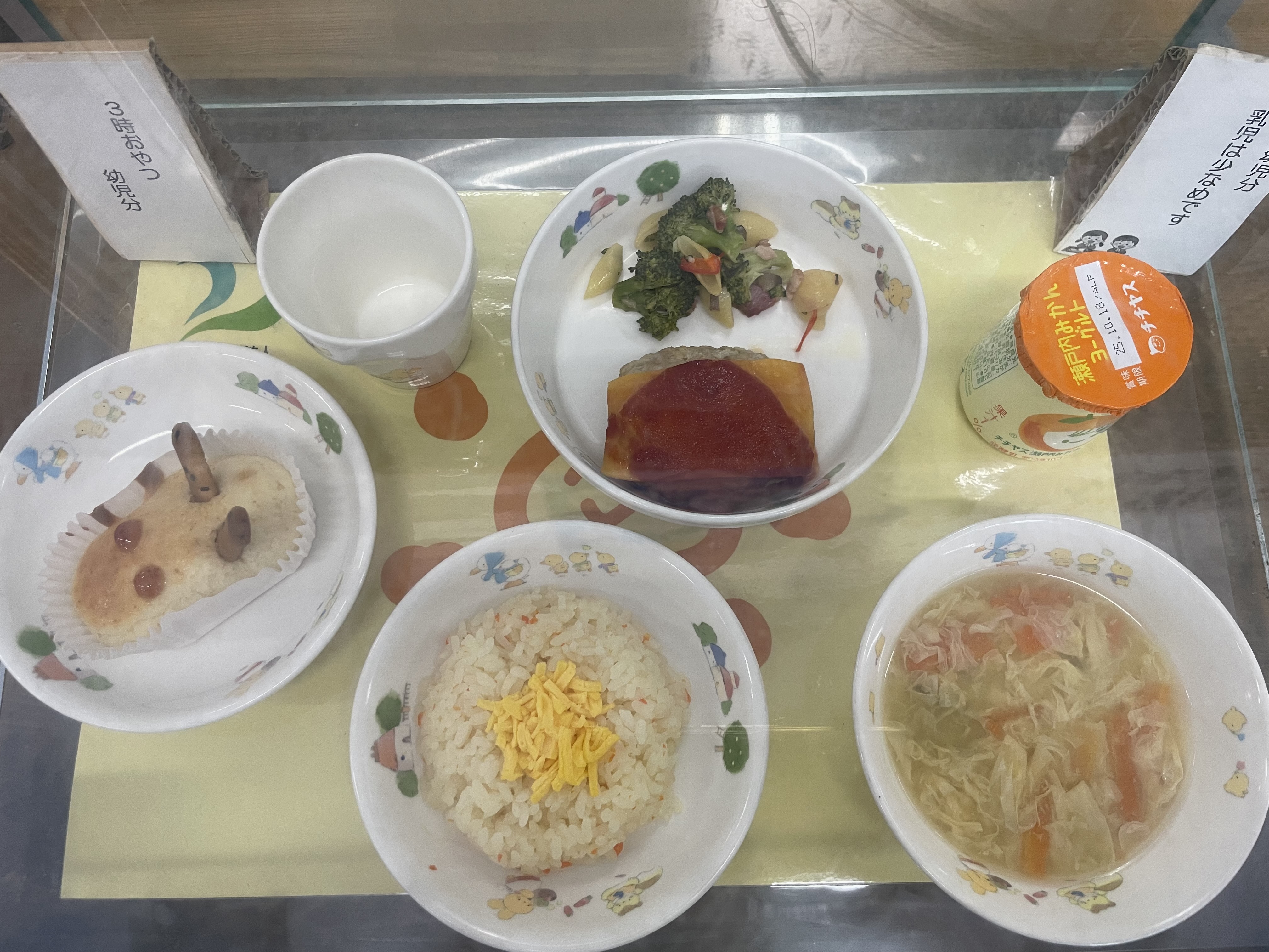 給食ではお月見ライスを見て「お月様になってるんだ!」と喜んでいたり