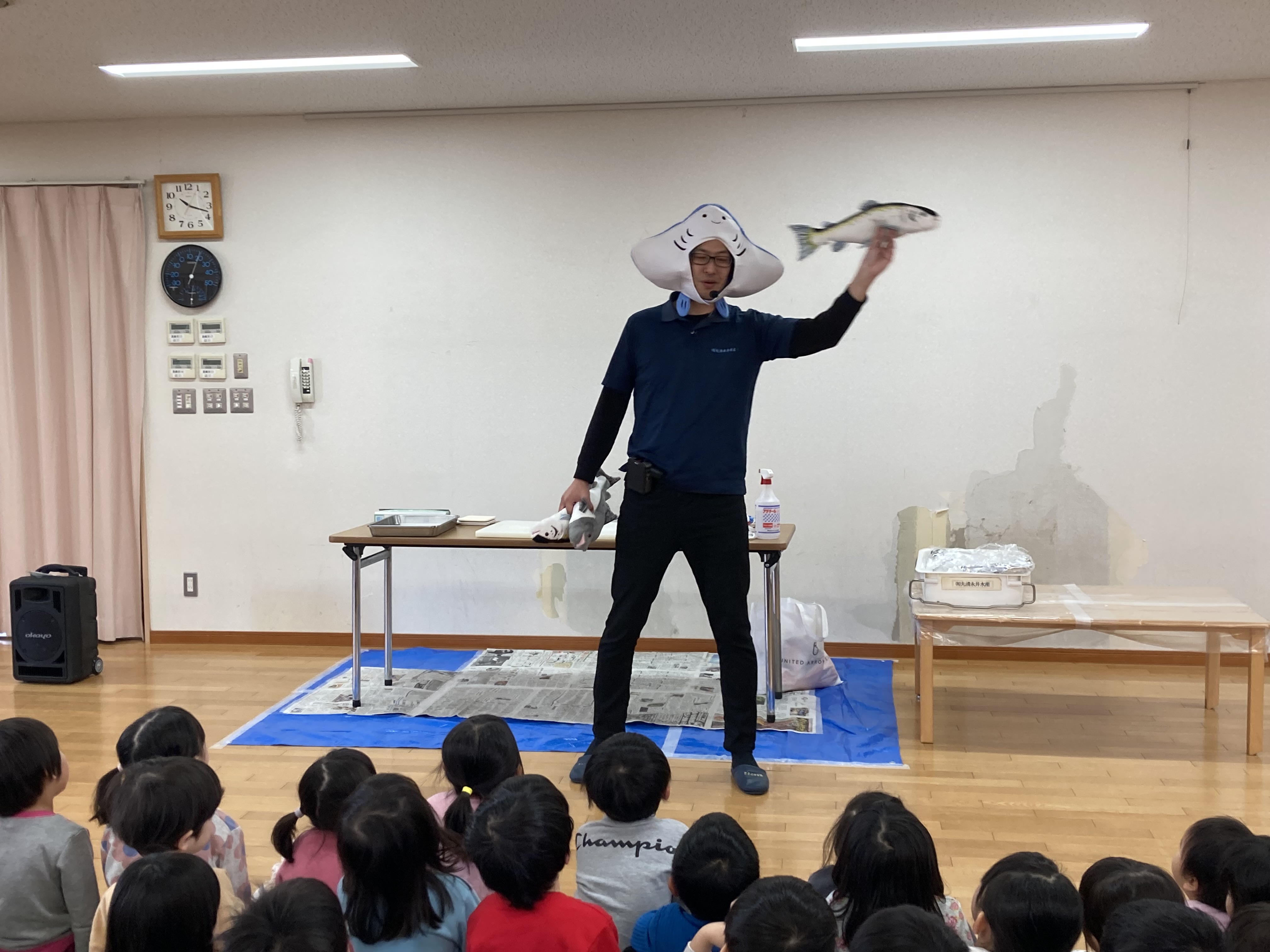大きな鮭を見て「お魚だね」「大きいね」と、とても興味津々の子どもたちでした。