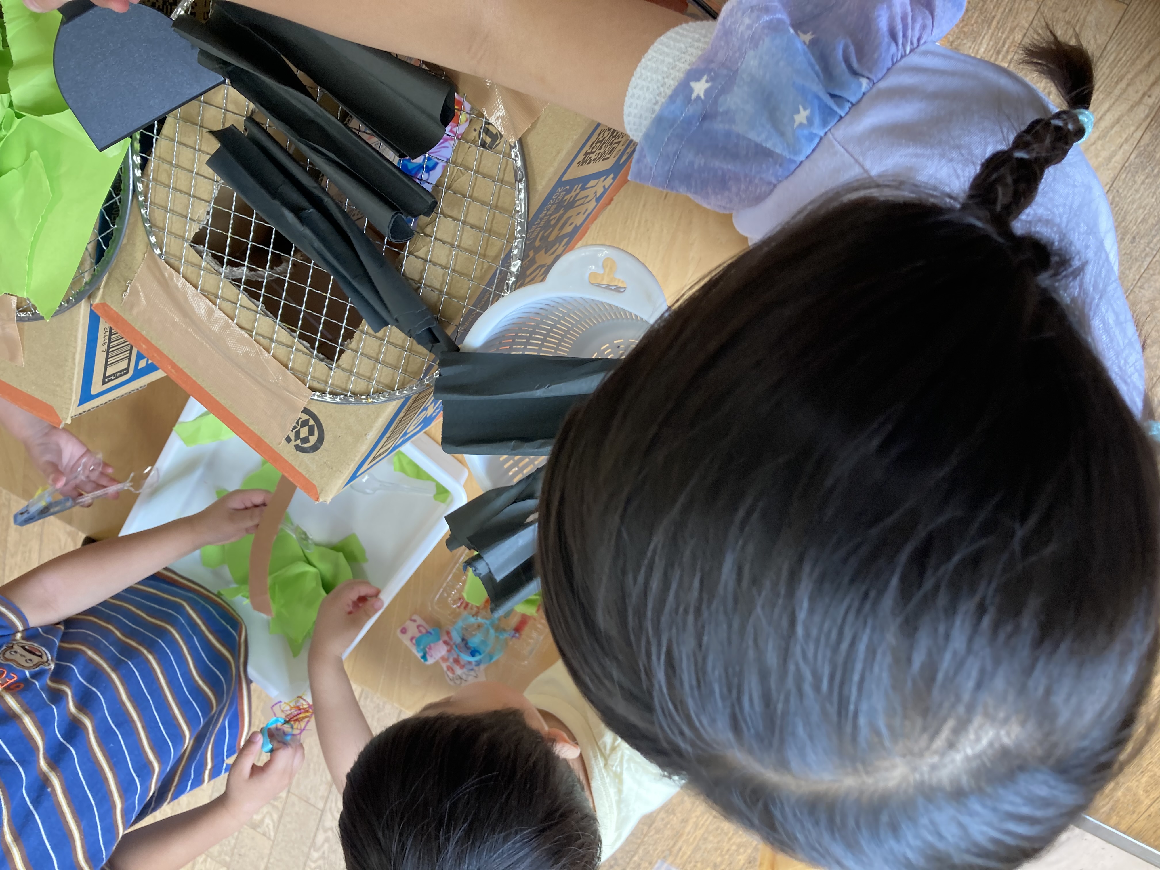 1枚の銀の網から子ども達が考え、廃材でバーベキューをしました。