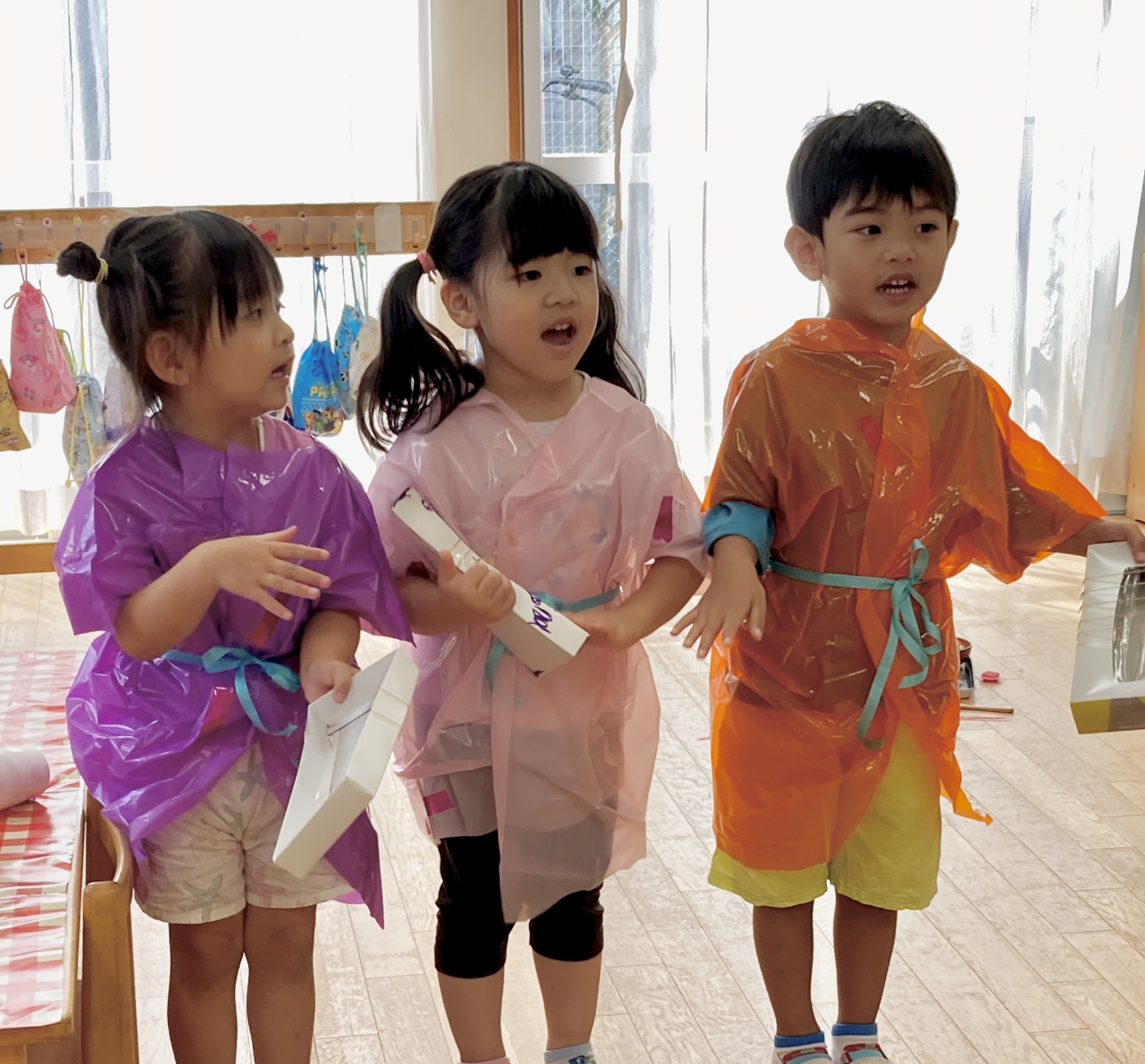 3歳児りす組。子どもが考えて作った手作り衣装です。