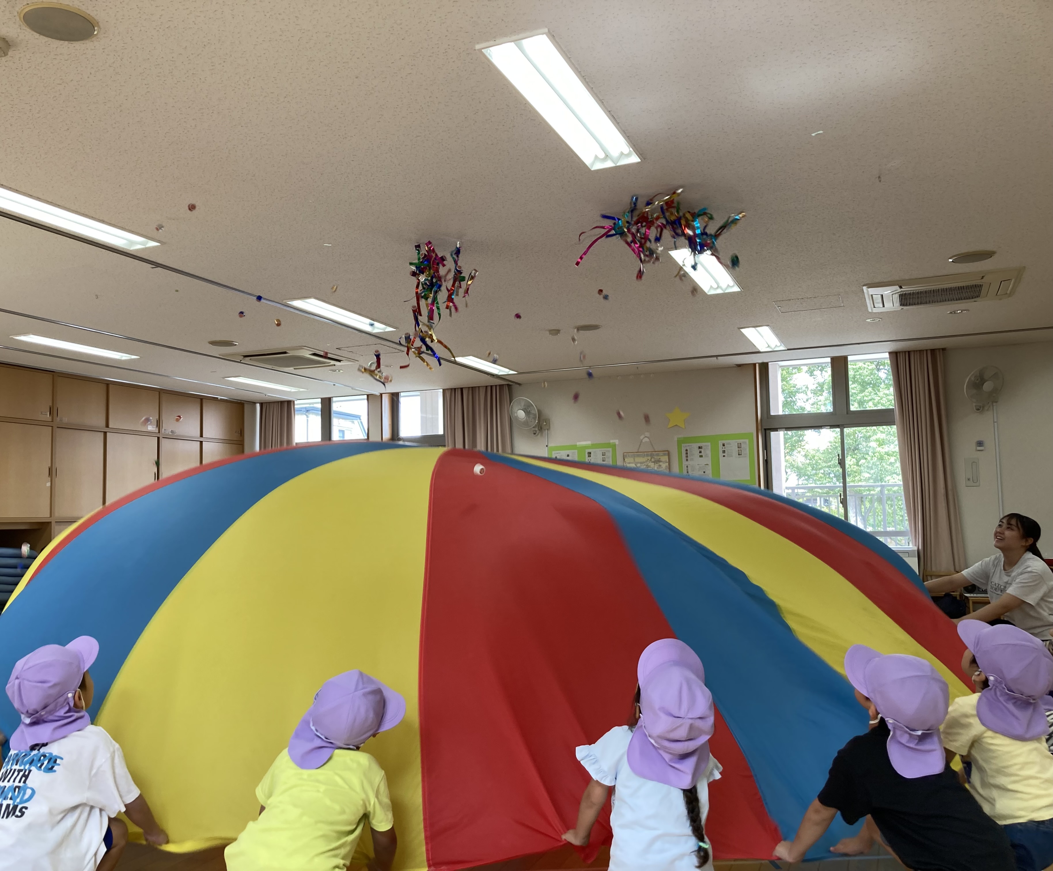 最後は4歳児のお友達が運動会で披露したパラバルーンを行ってくれました。