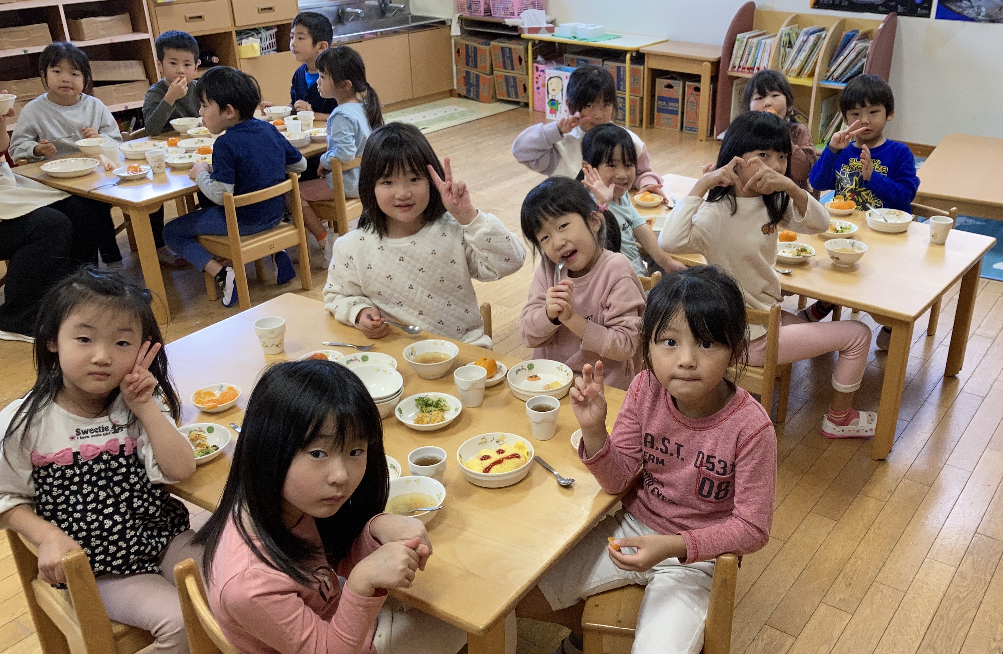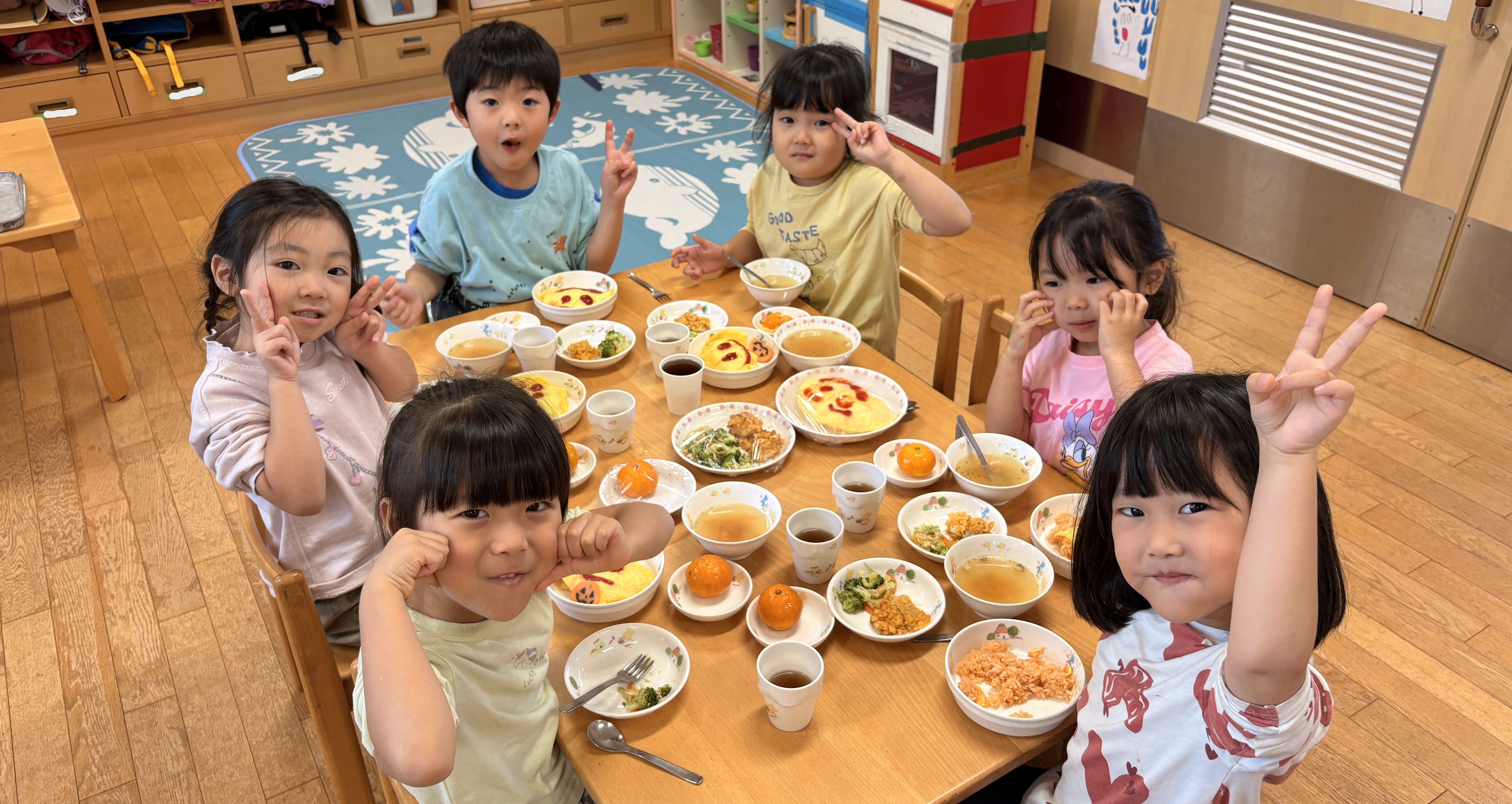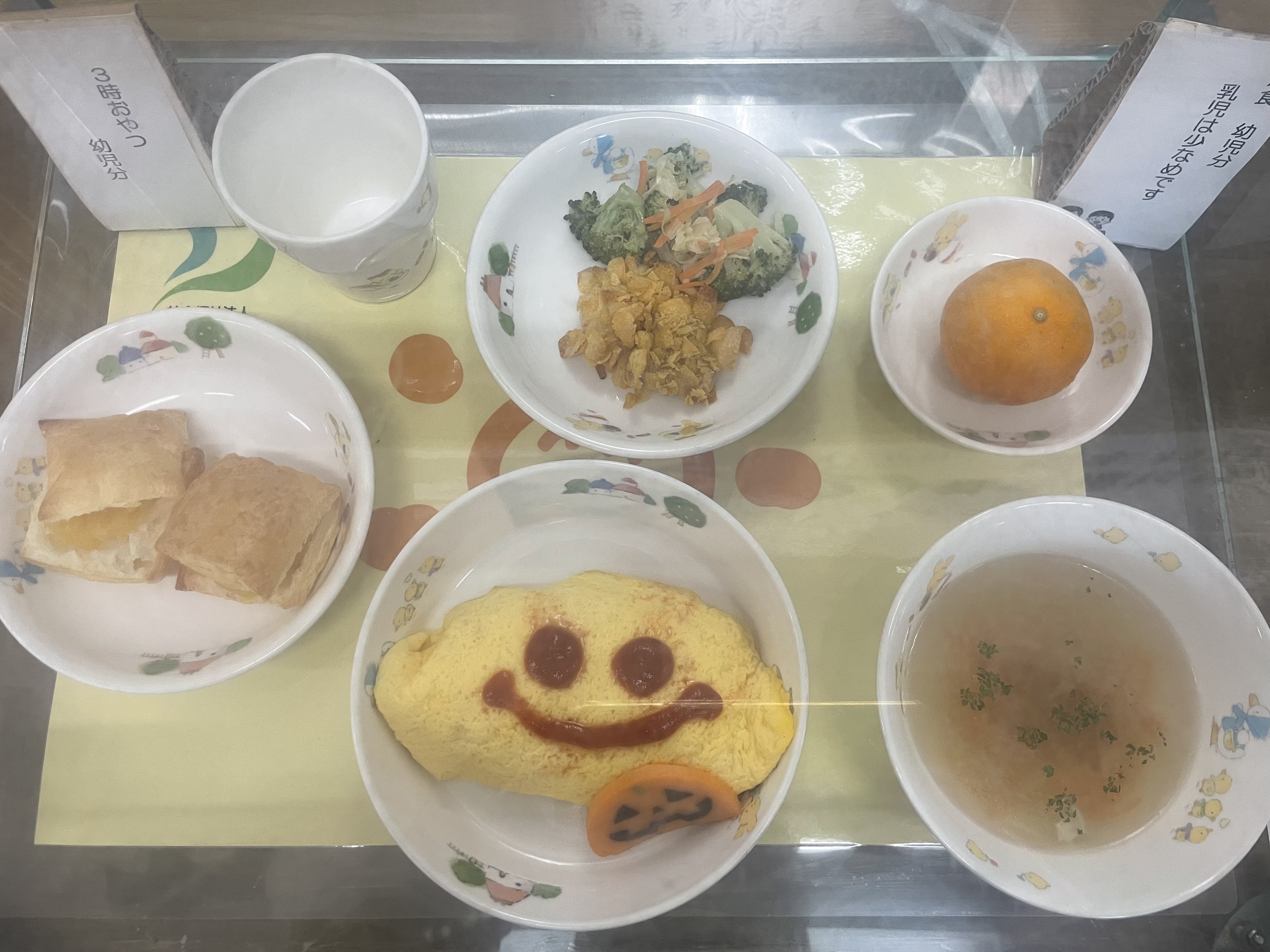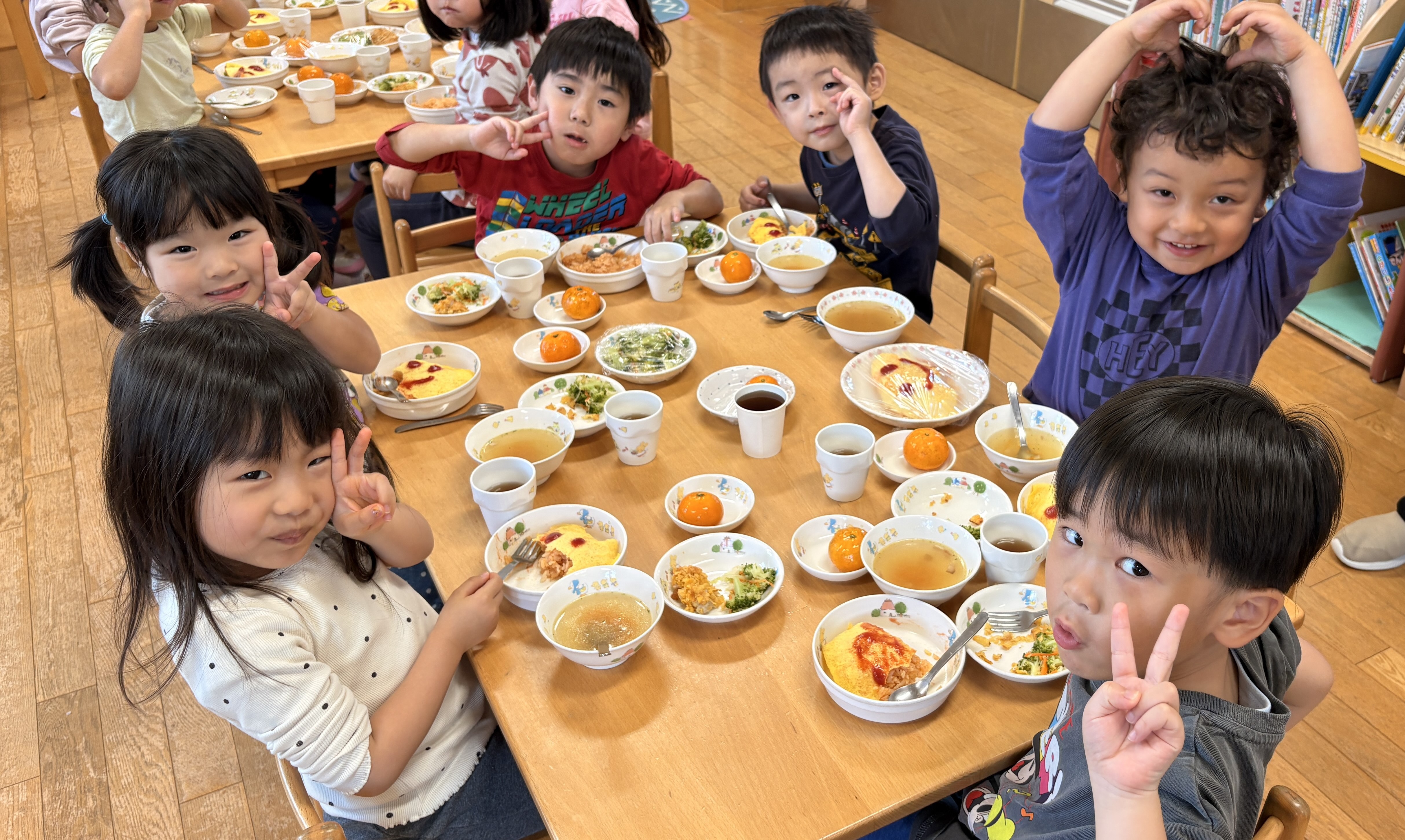 オムライスに描かれた顔はいろいろな表情があり、子どもたちで見せ合いっこしながら嬉しそうに食べていました。