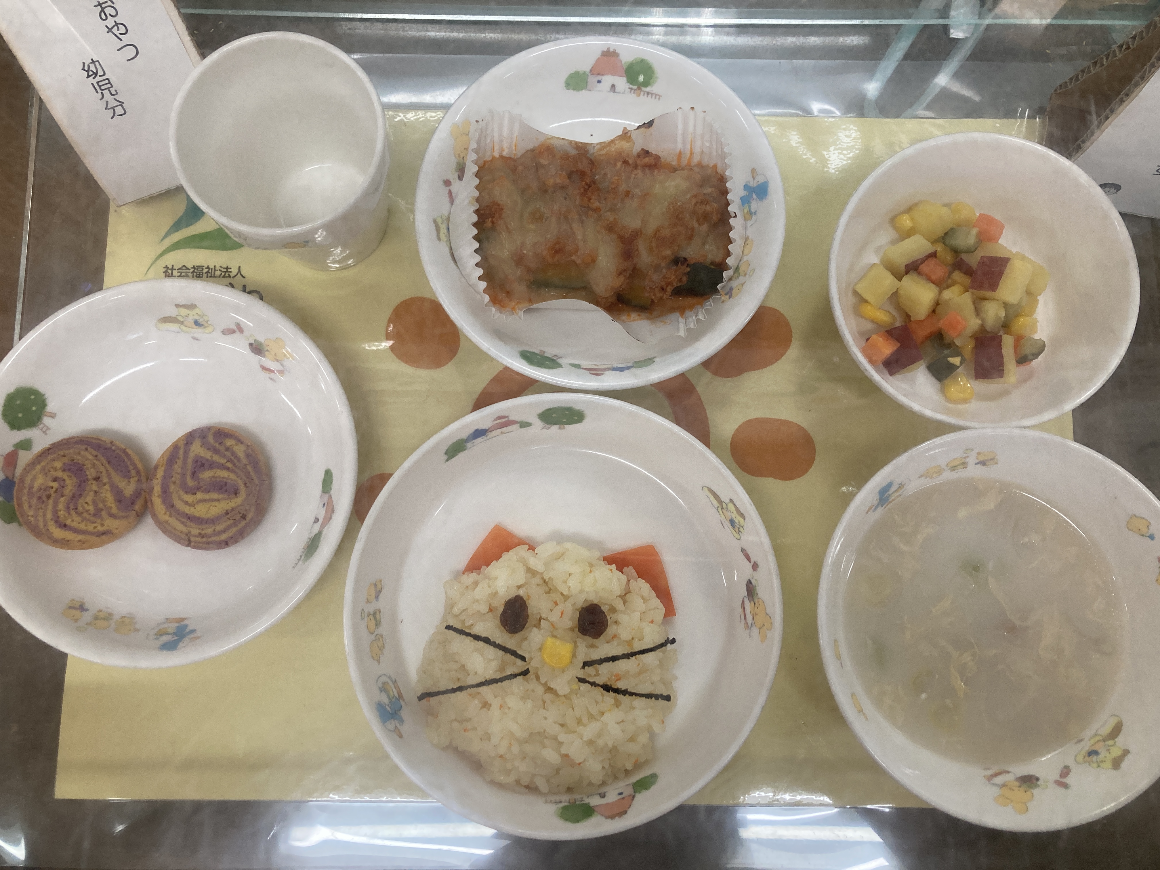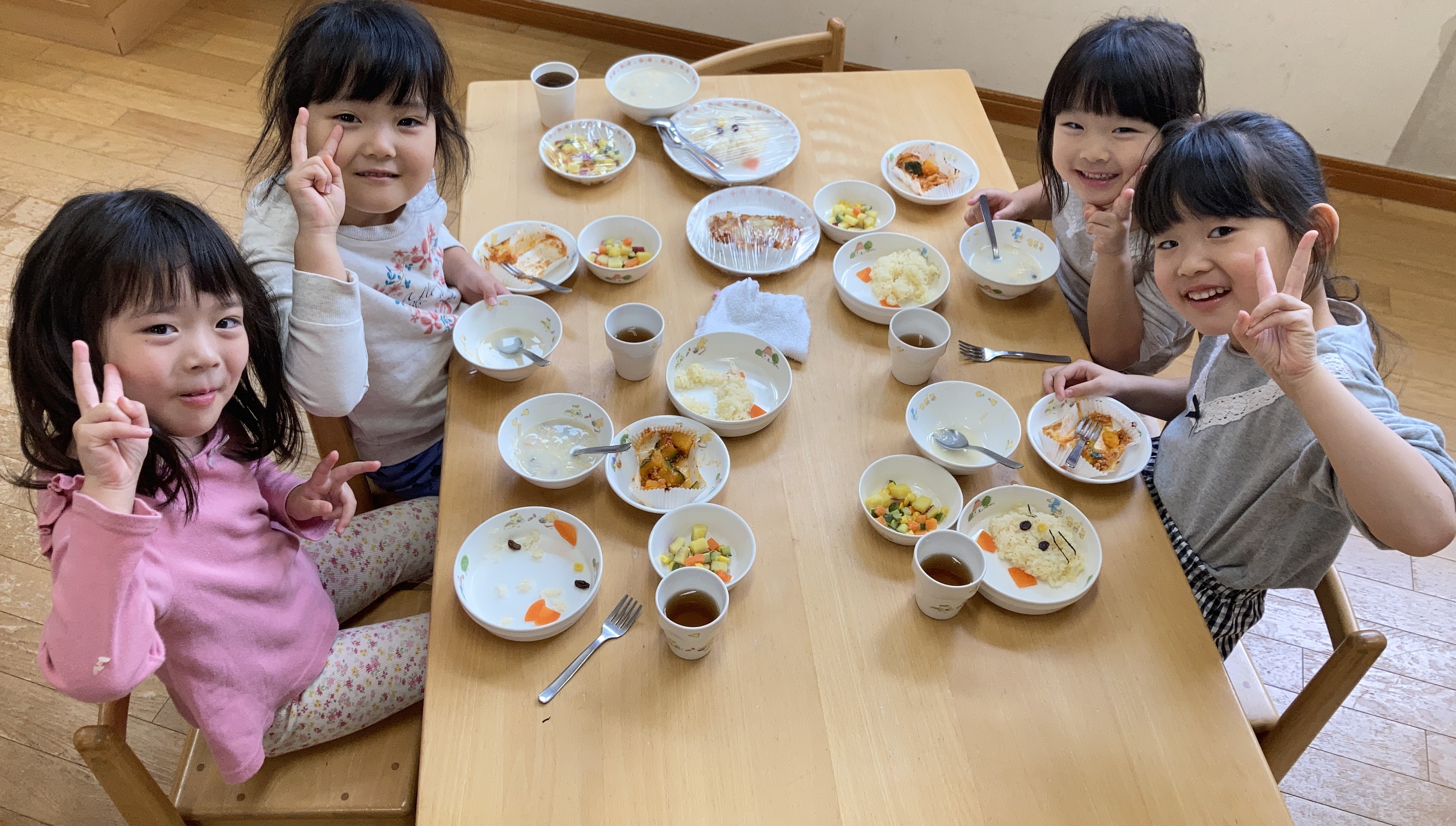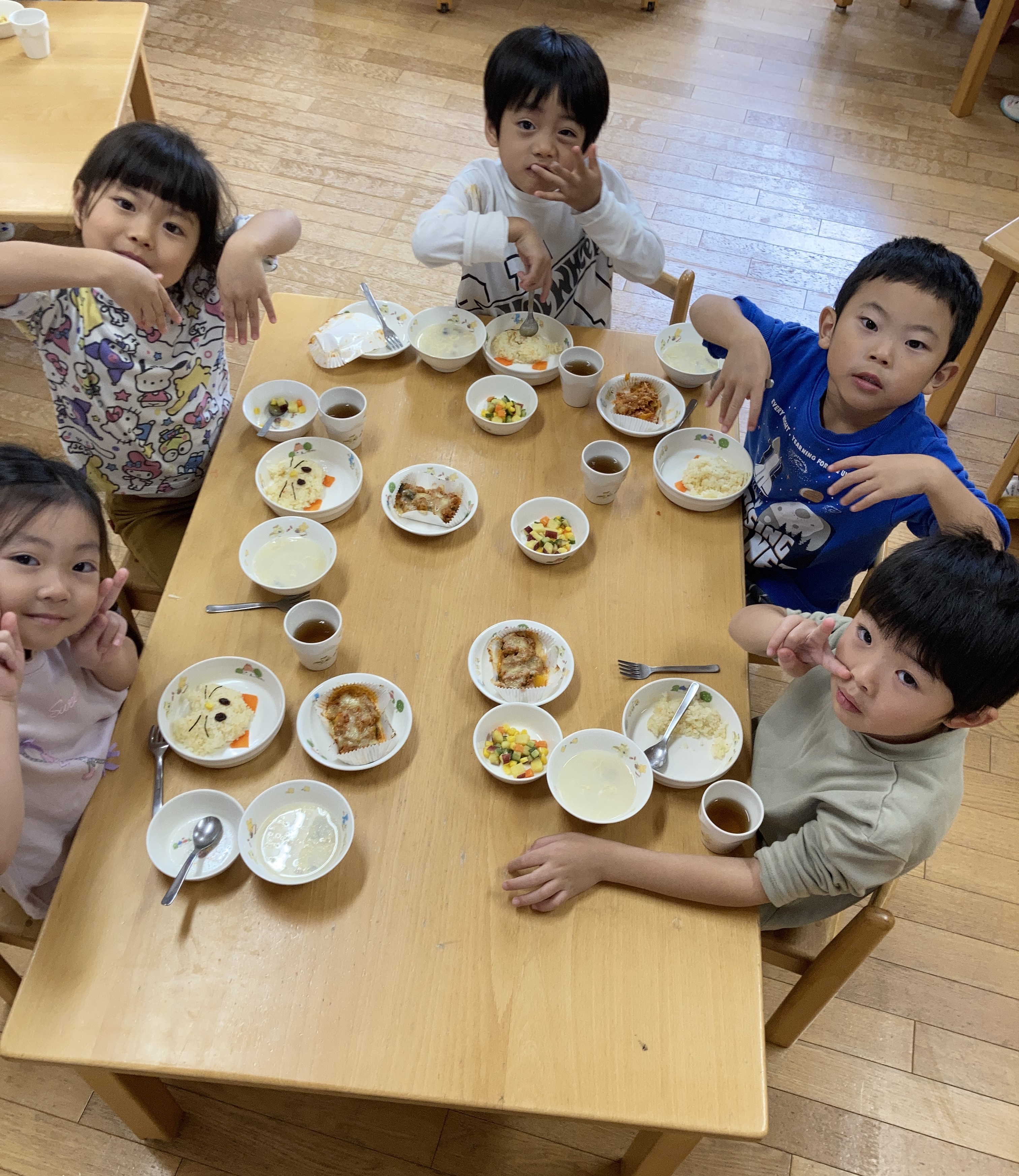 今日はハロウィンだったので、園内ではみんなでハロウィンのダンスを踊ったり、ハロウィンメニューの給食を食べて楽しみました!