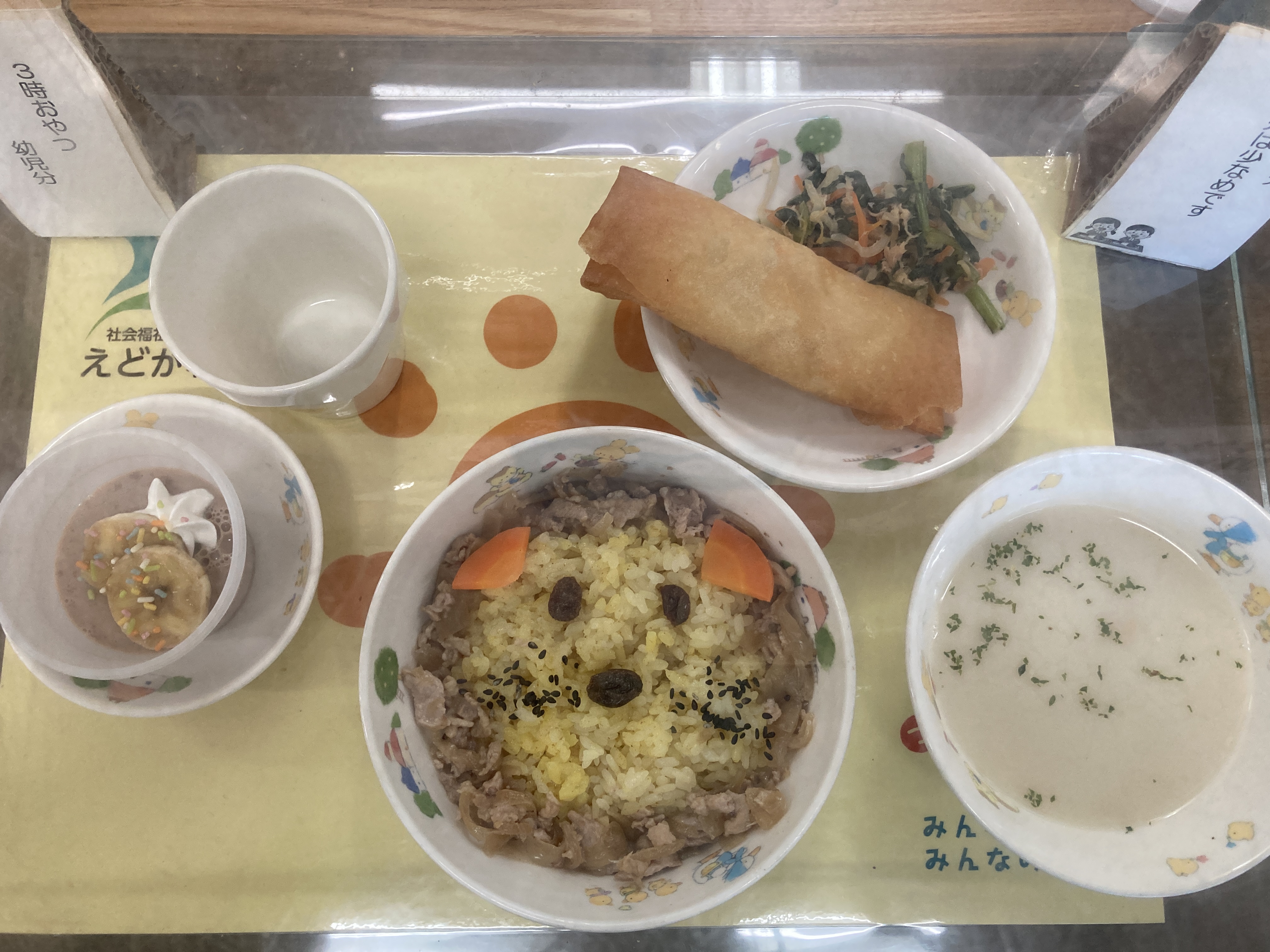 サクサクのポテト春巻きや、カラフルなチョコスプレーがかかったかわいいプリンアラモードも嬉しそうな子ども達でした。