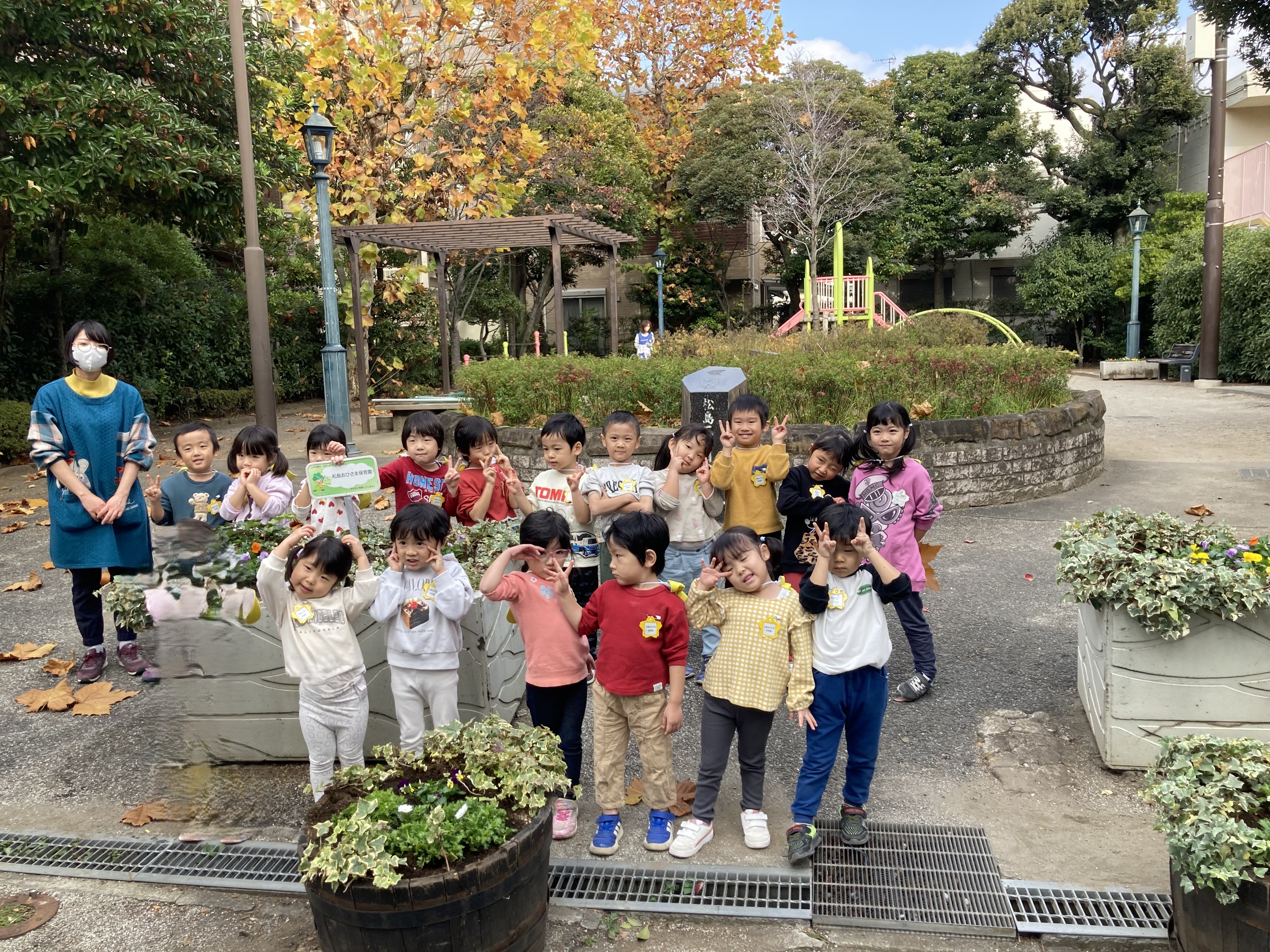 園庭には、桜や楠、銀杏の木が子ども達の成長を見守っているかのように立ち、近隣には、たくさんの公園があります。