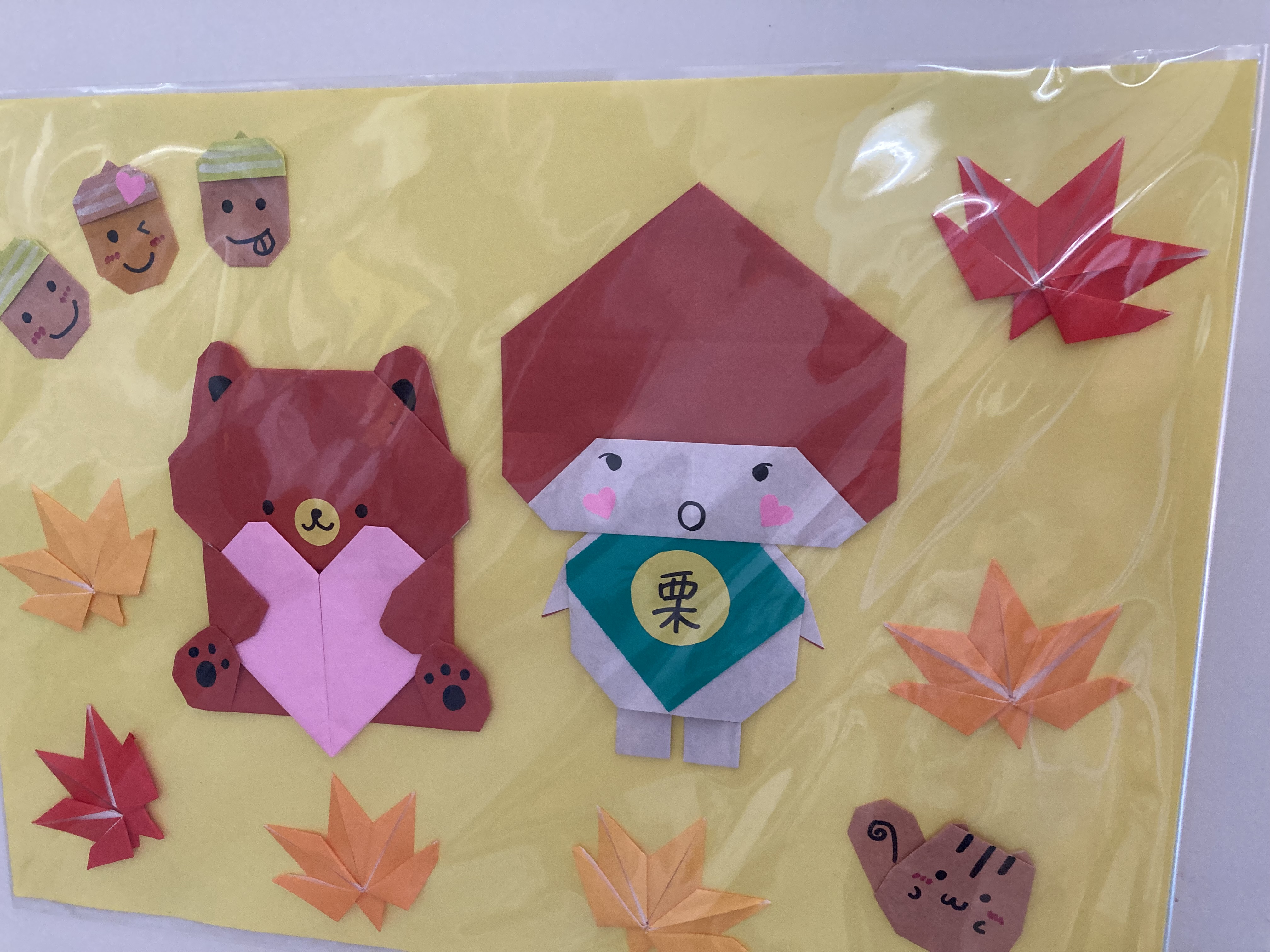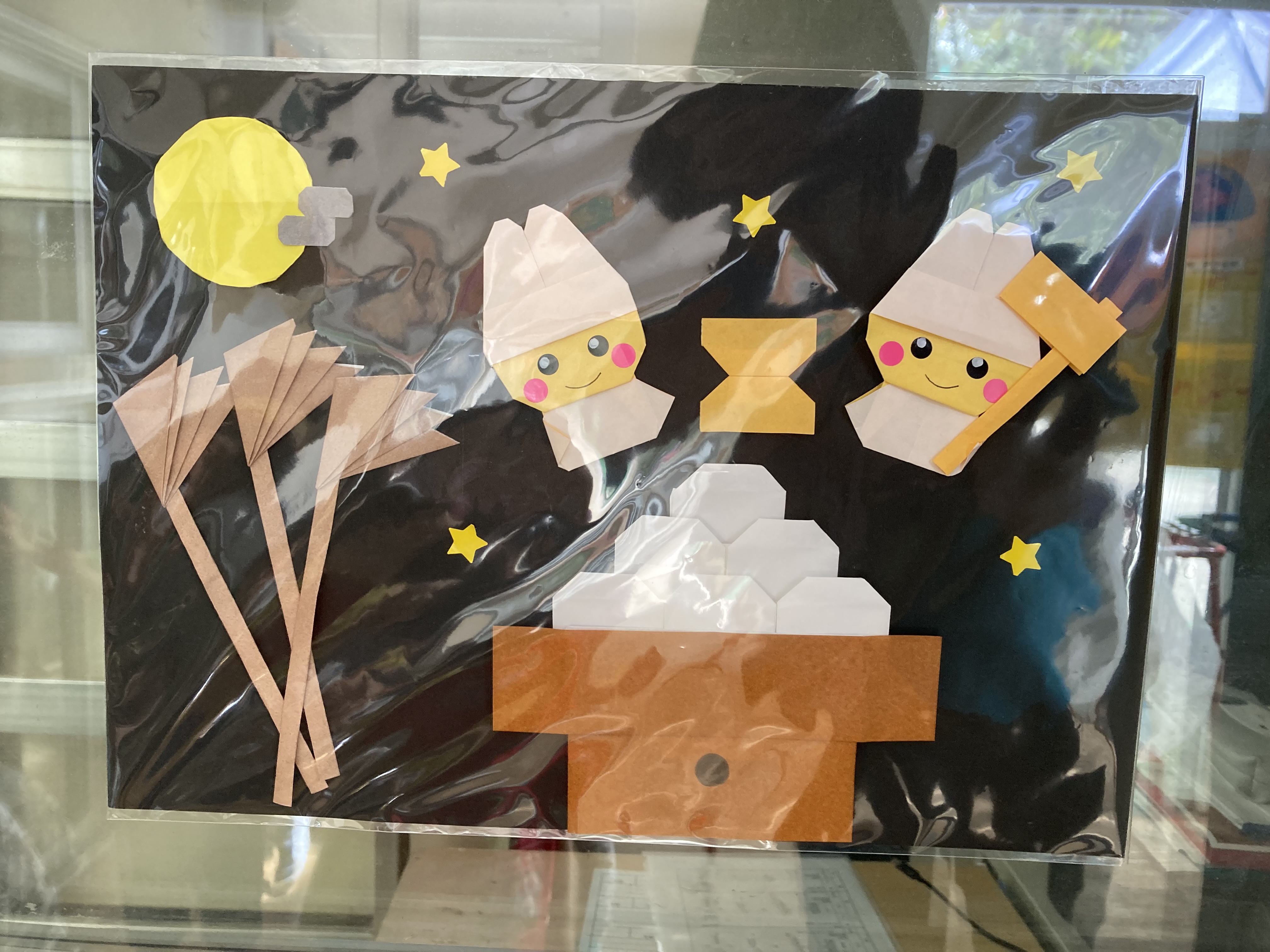 いつも美味しい給食を作ってくれるお給食さんが働く場所には、素敵な作品が飾られています。