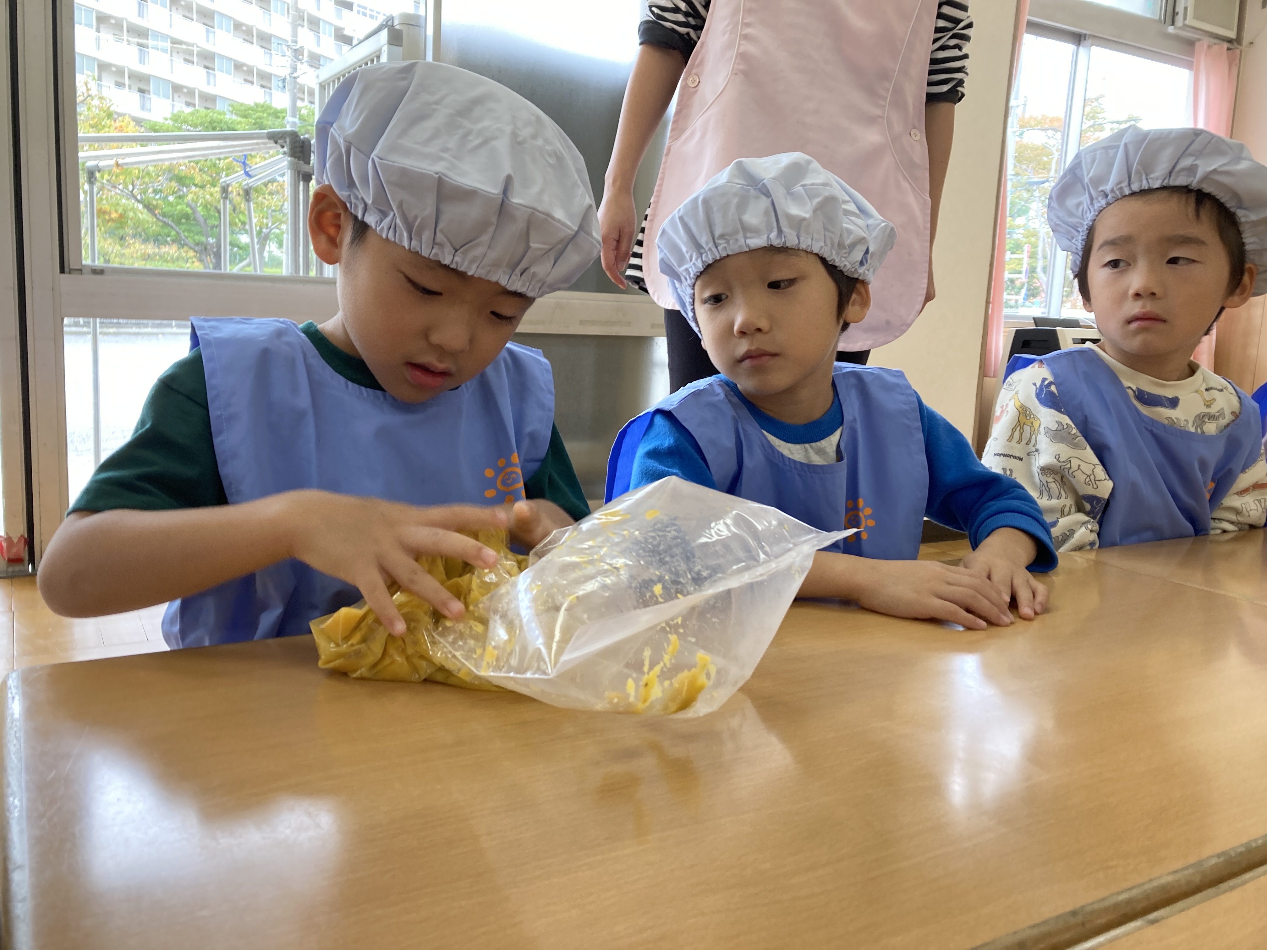 保育園で育てたサツマイモを使用しスイートポテト作りをしました。