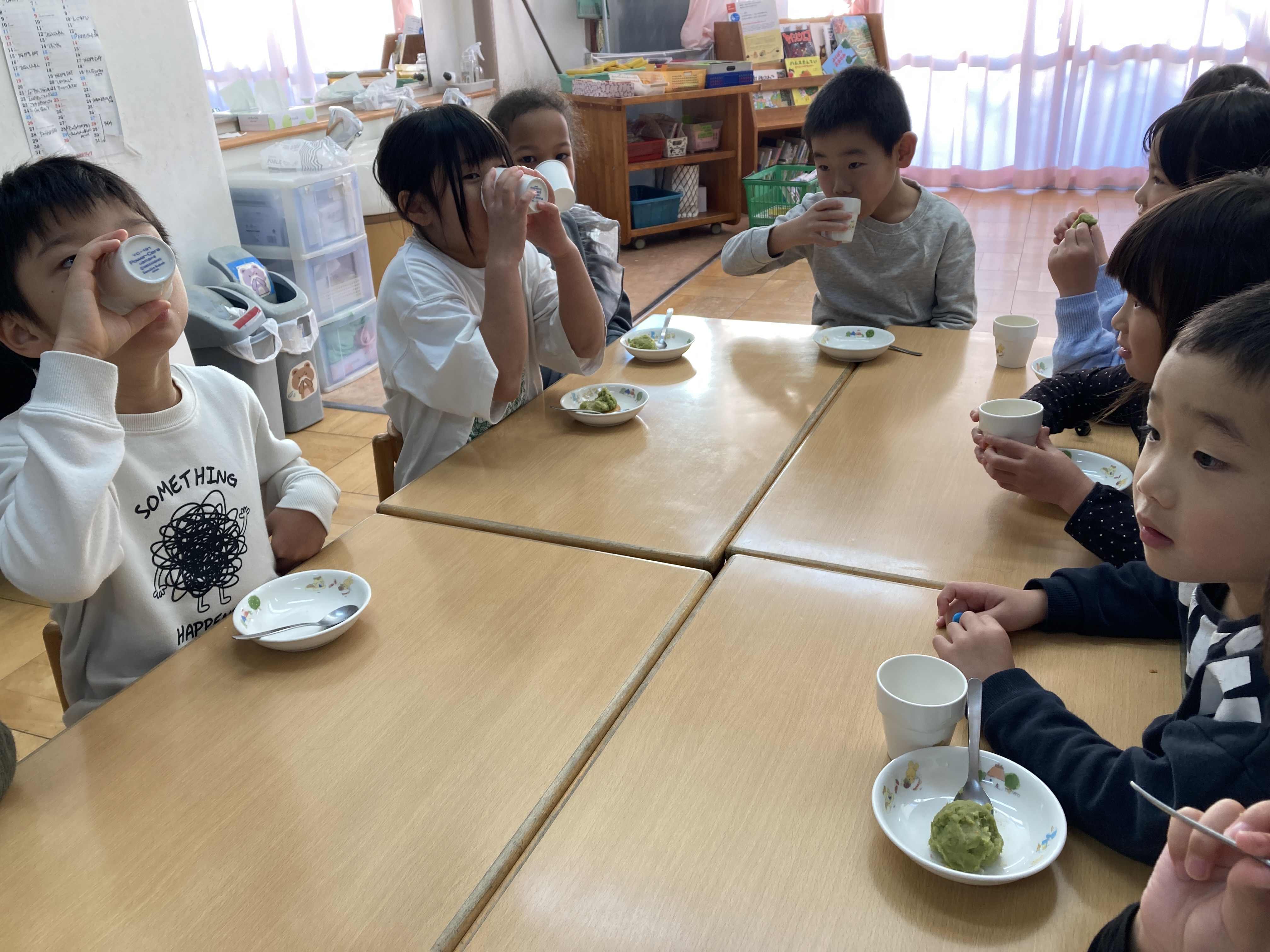 またマカロニサラダで使われていたマカロニの形がリボンの形がしていたことで、「リボンだ」といつもの給食とは違った特別感を感じていたようでした。