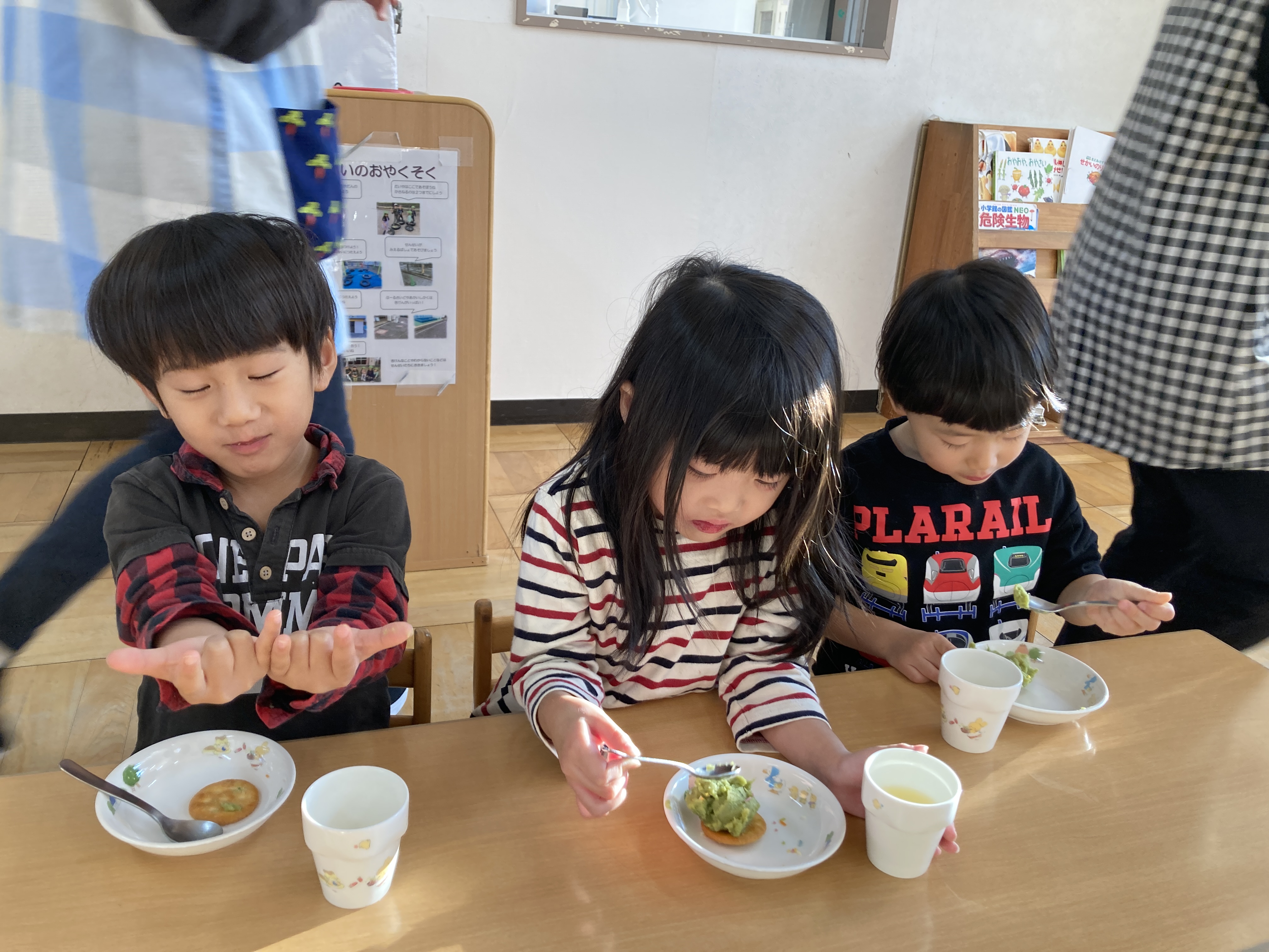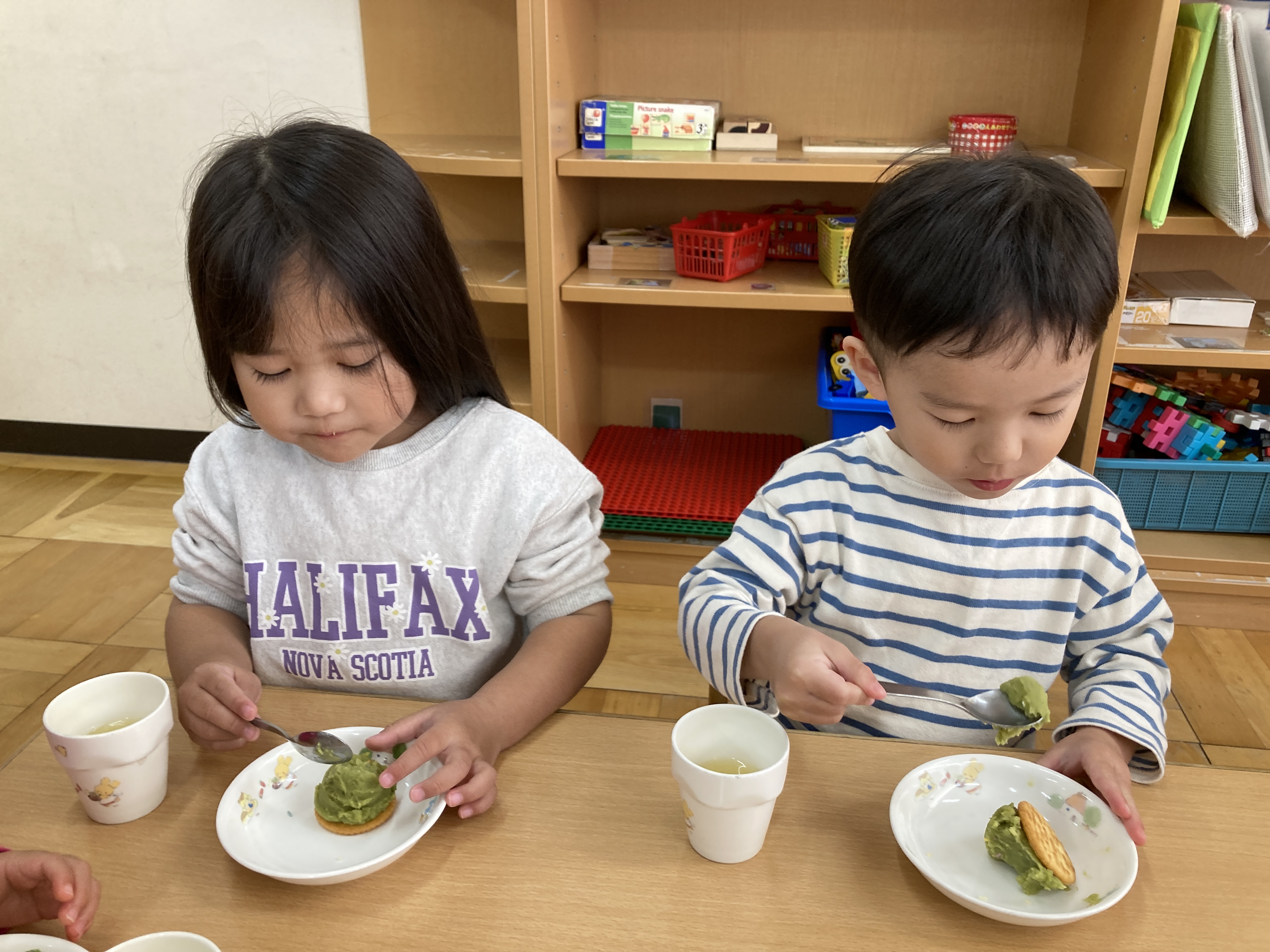 おやつはクリスマスツリーの形をしたスイートポテトでした。