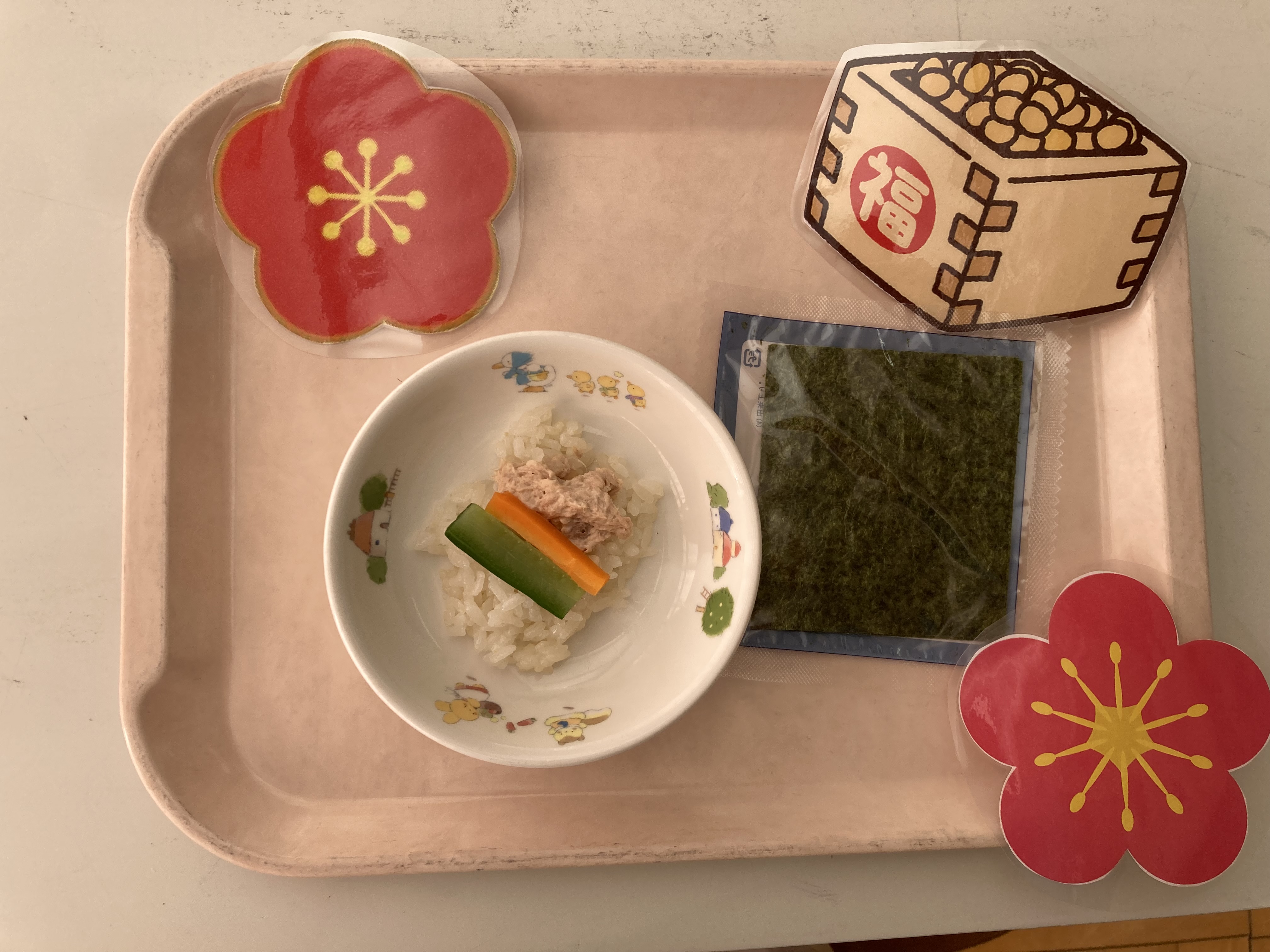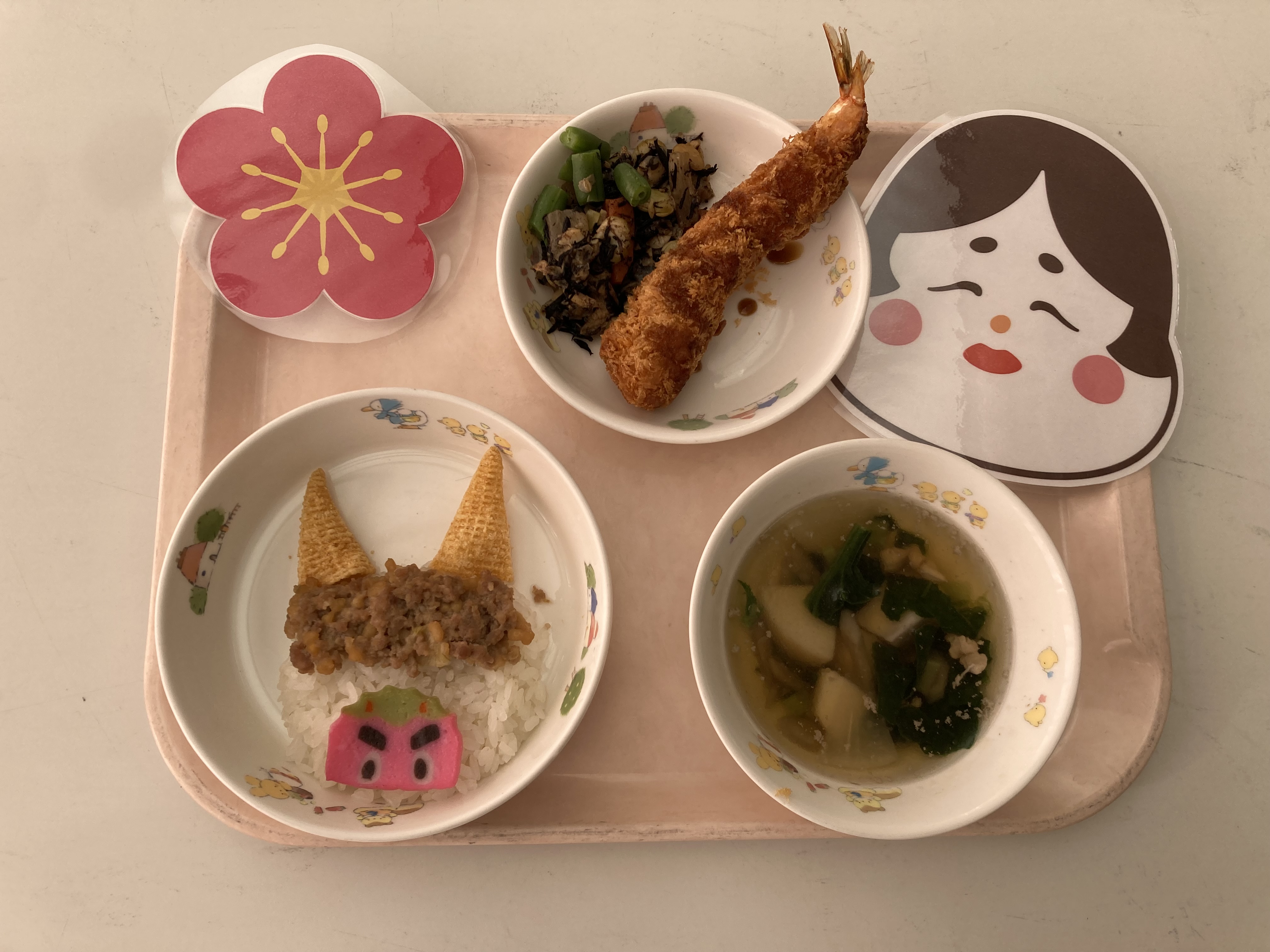 給食も節分にちなんだ献立になっており、