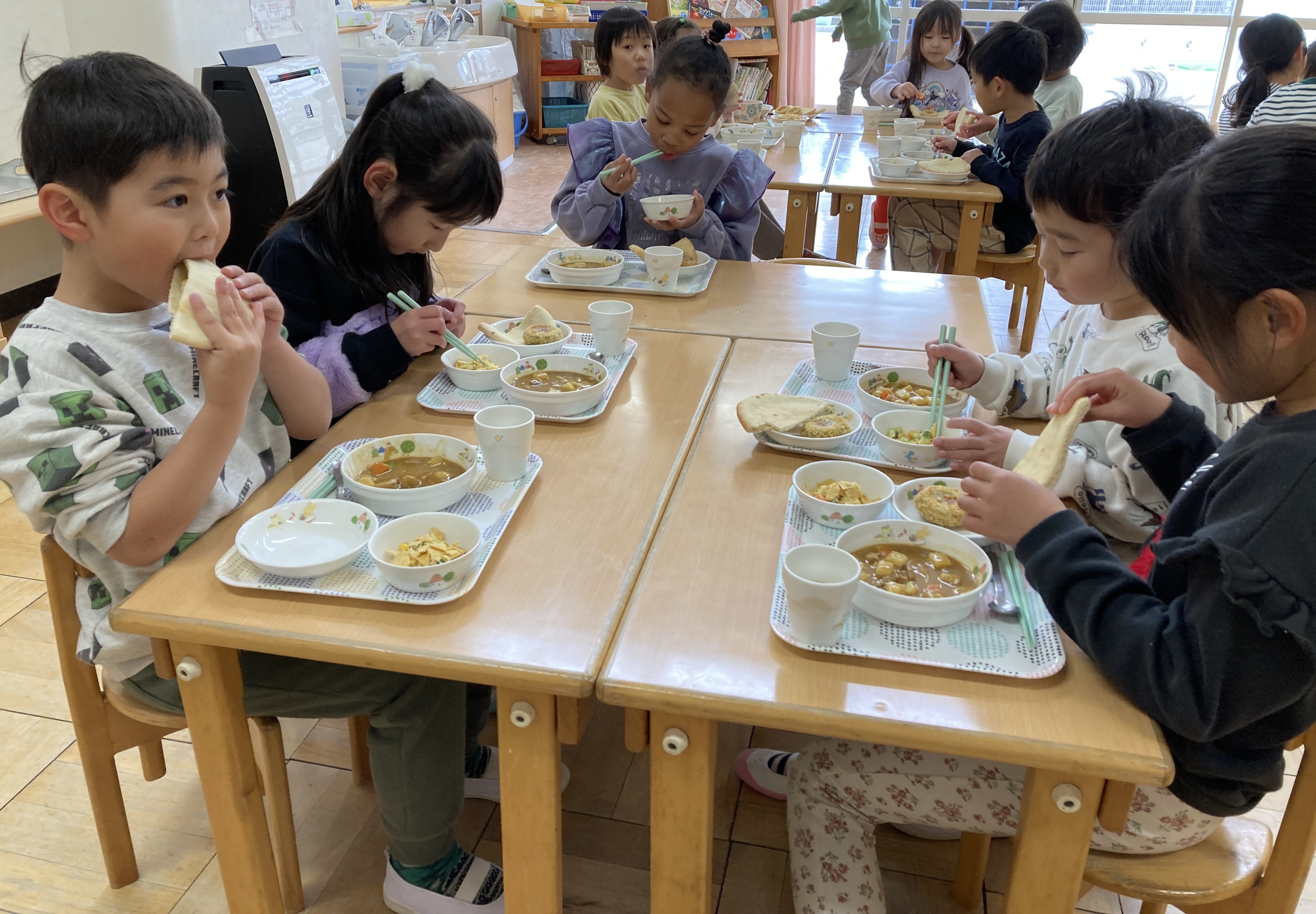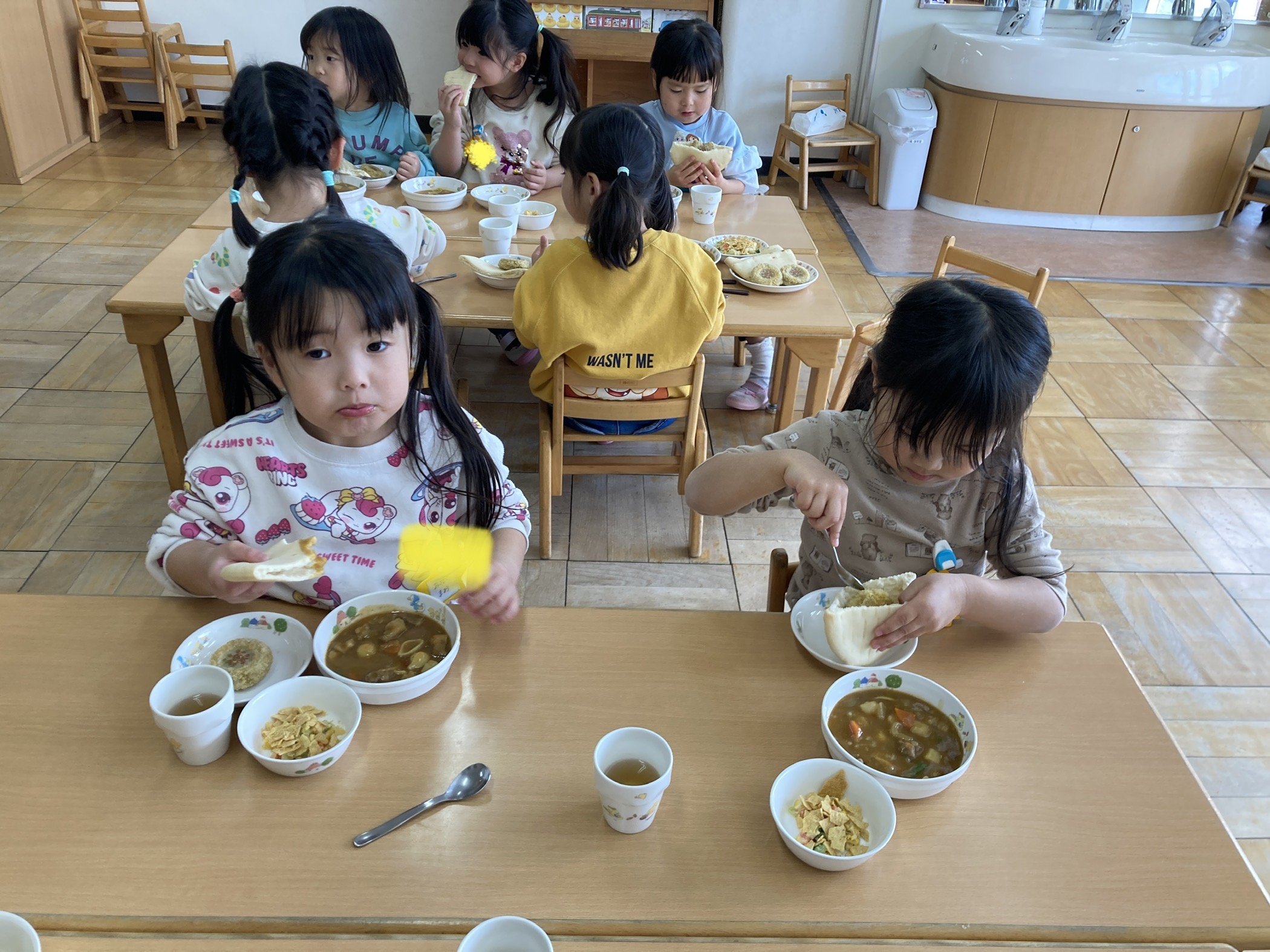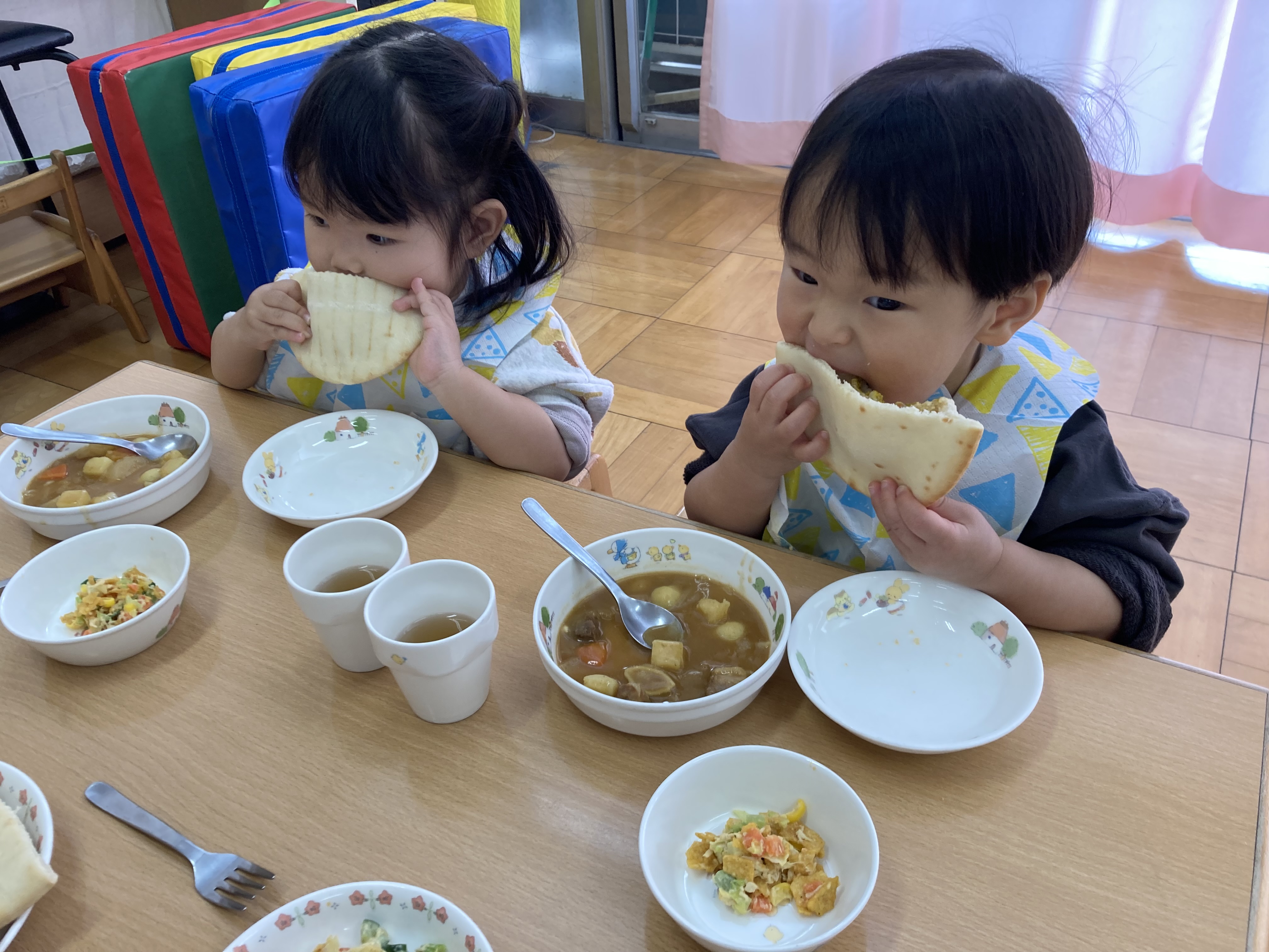 大きなピタパンを大きな口で食べているお友だちがたくさんいました。