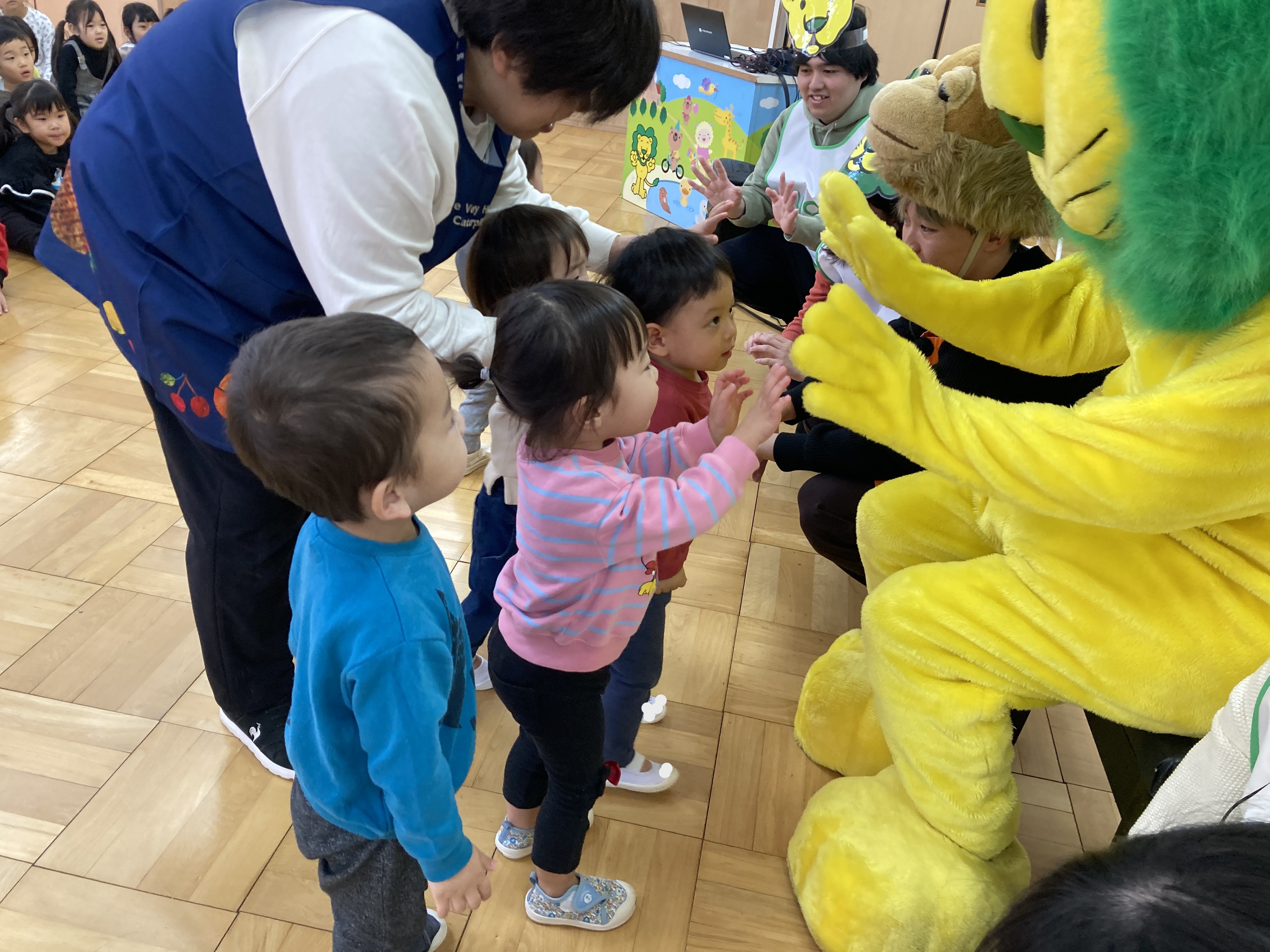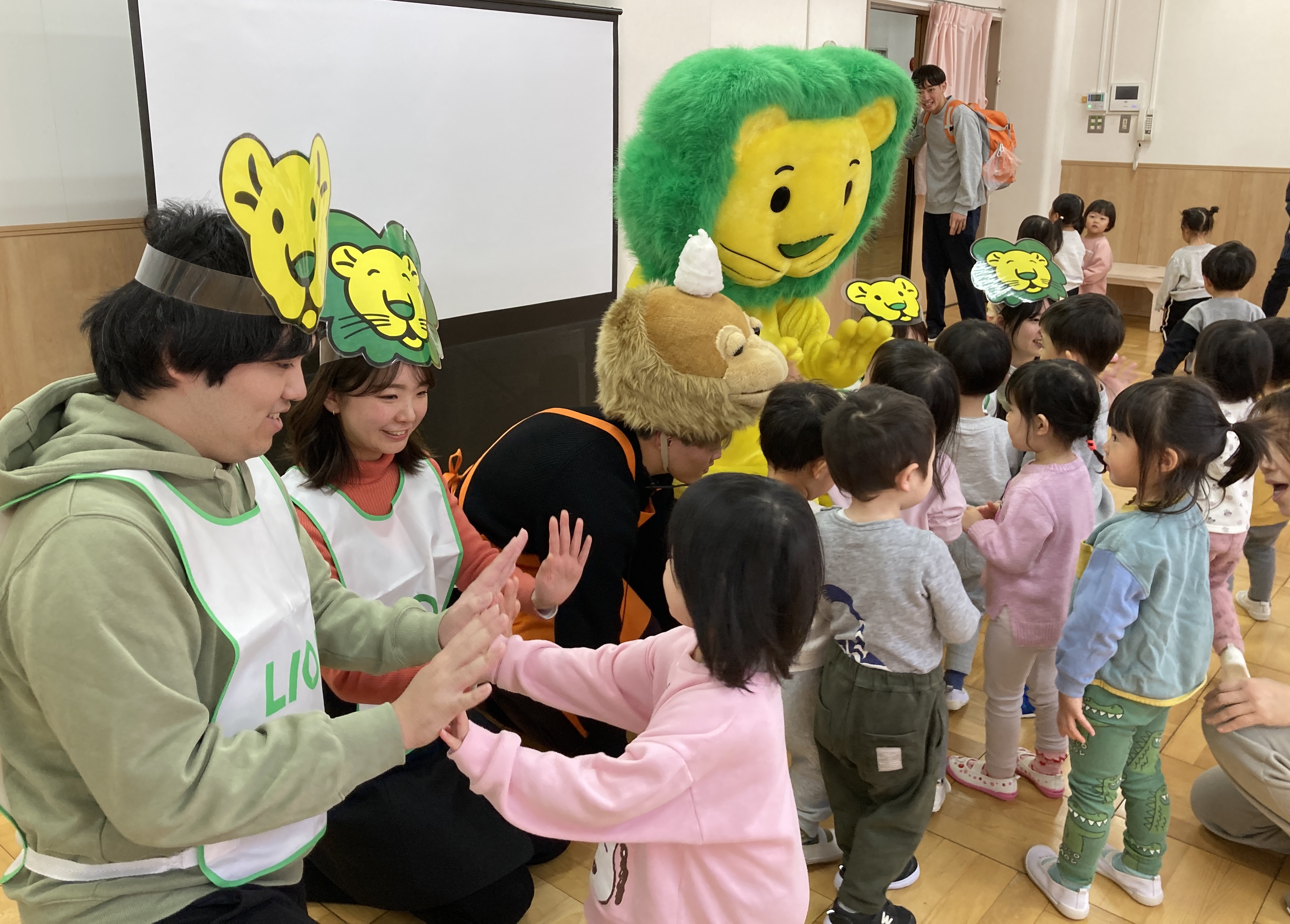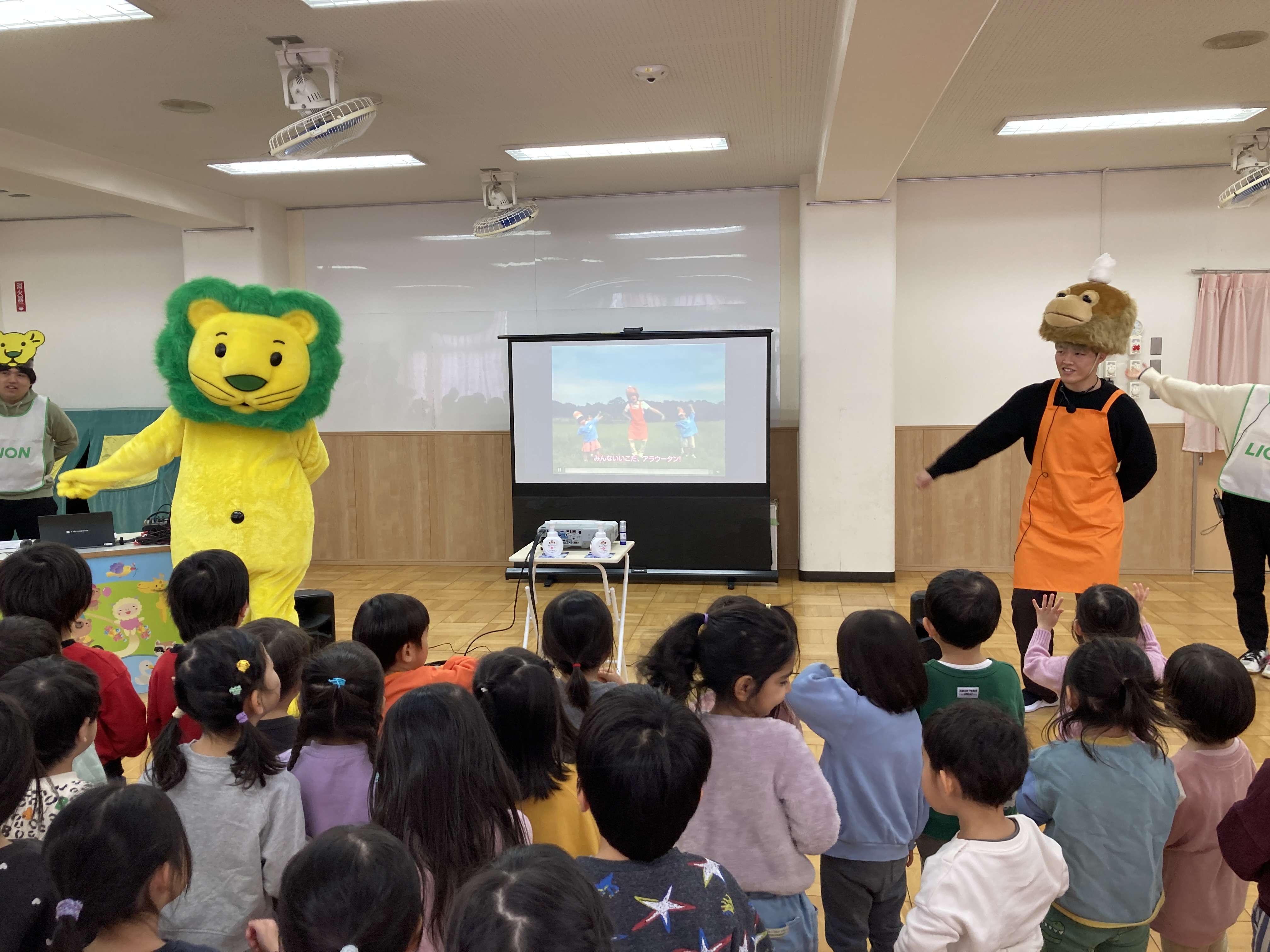 LIONちゃんいつ来るかな?と楽しみにしていたみんな…。一緒にダンスが出来てとっても嬉しそう。
