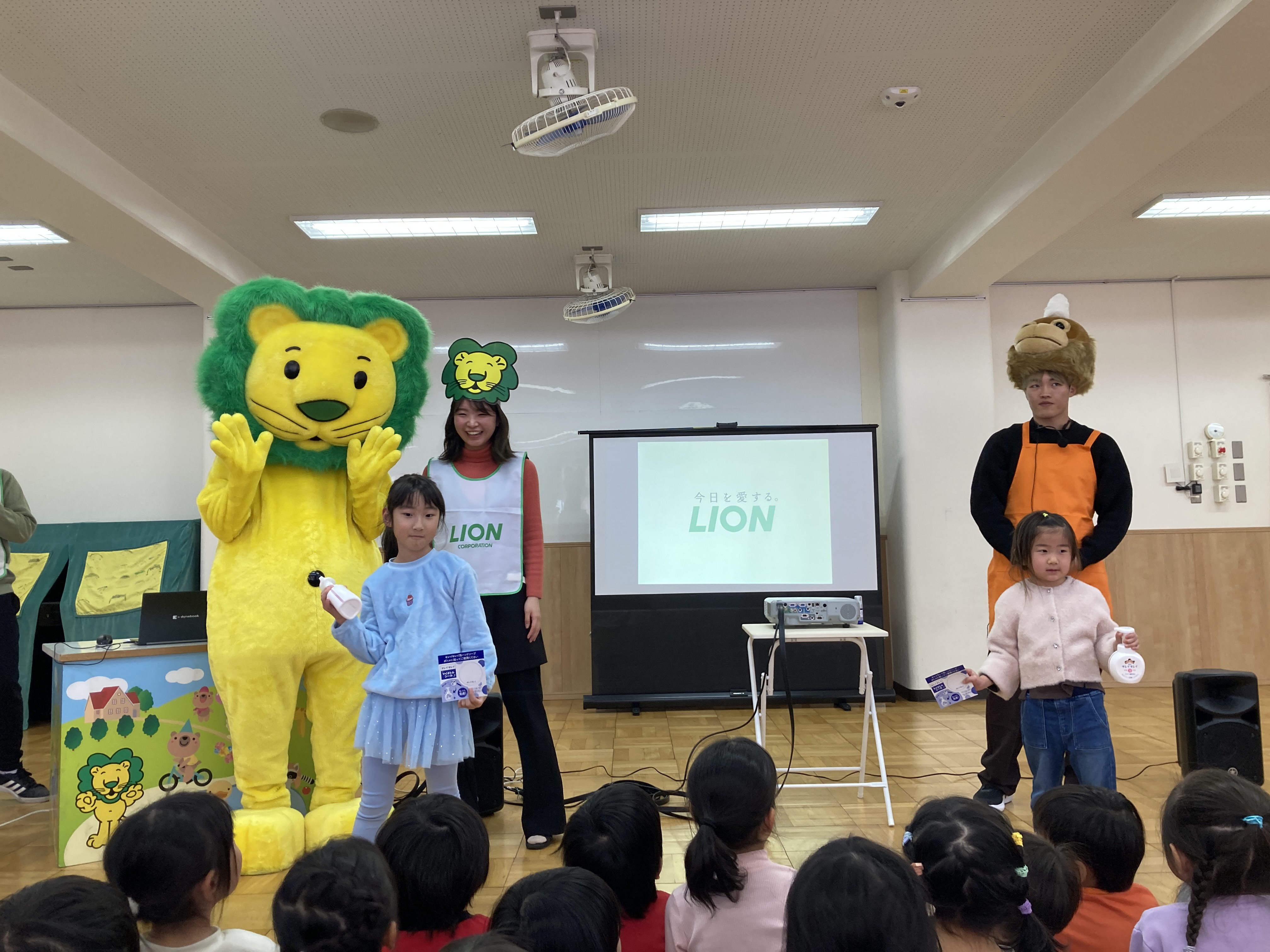 今日はLIONの手洗いイベントがあり、手の洗い方を教えてくれました。