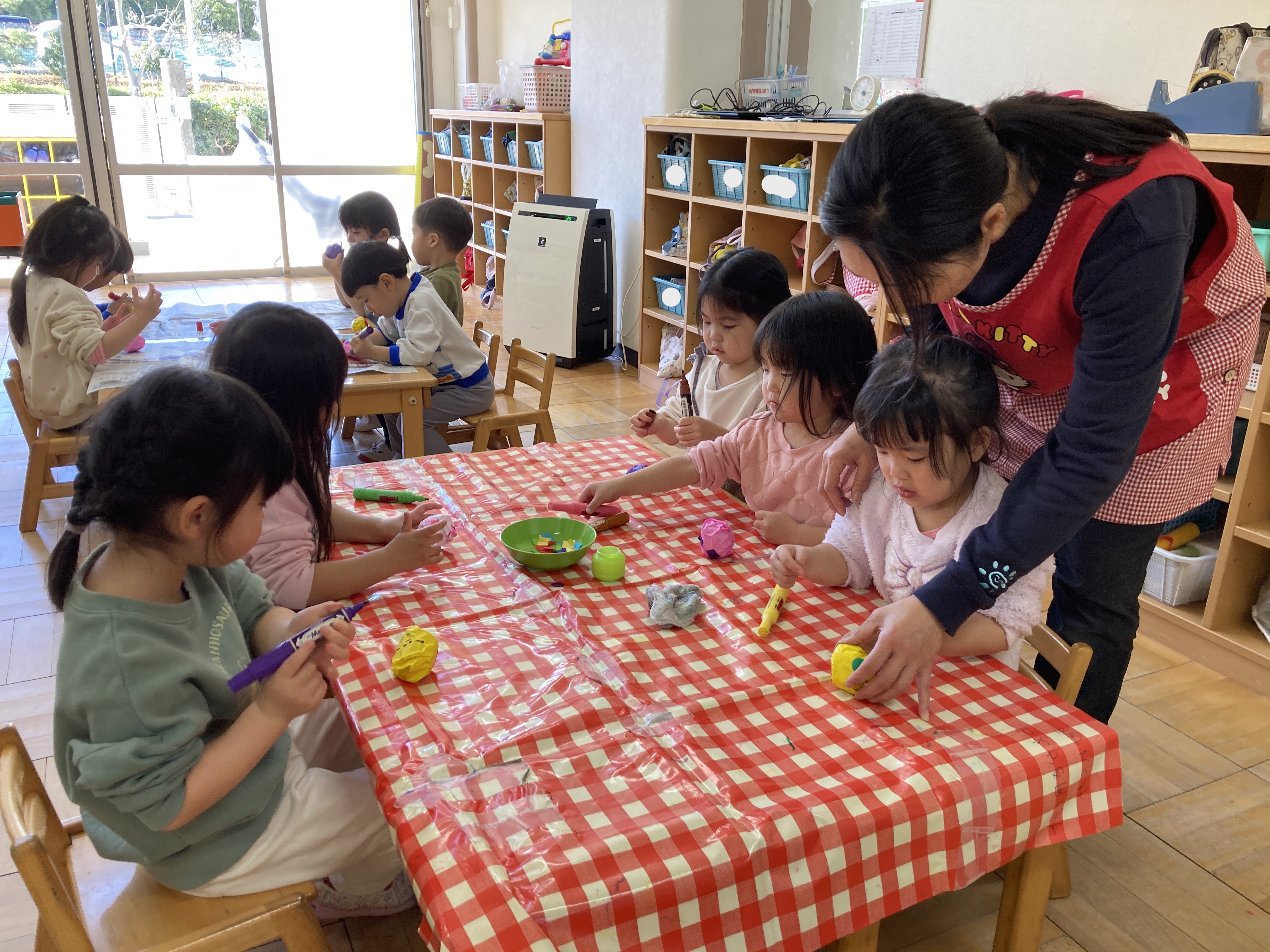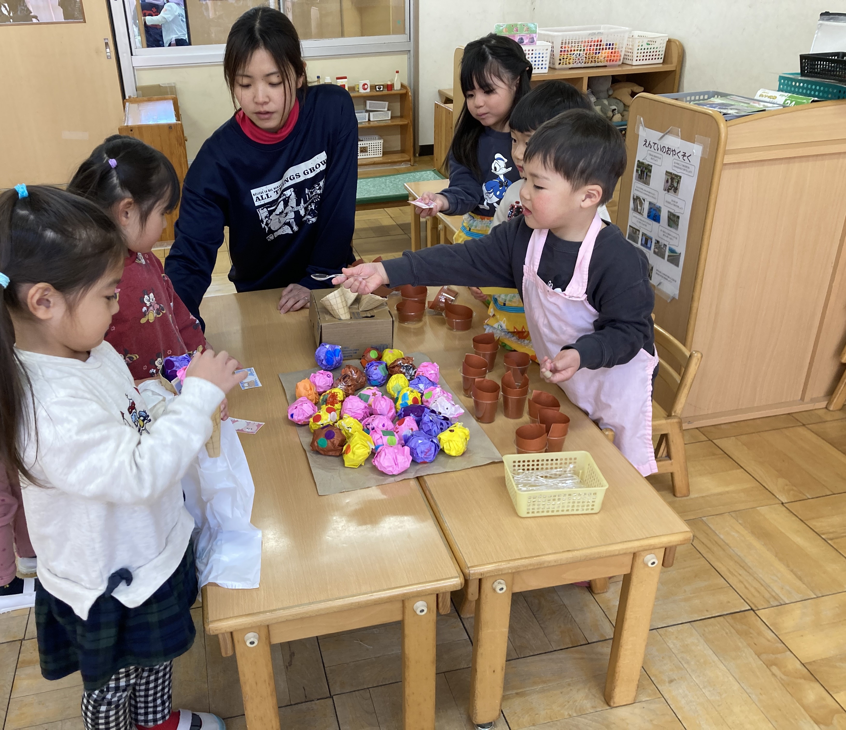 友達同士のやり取りが増え、ごっこ遊びが大好きなすみれ組。そんなすみれ組では今日お店屋さんごっこを開催しました!