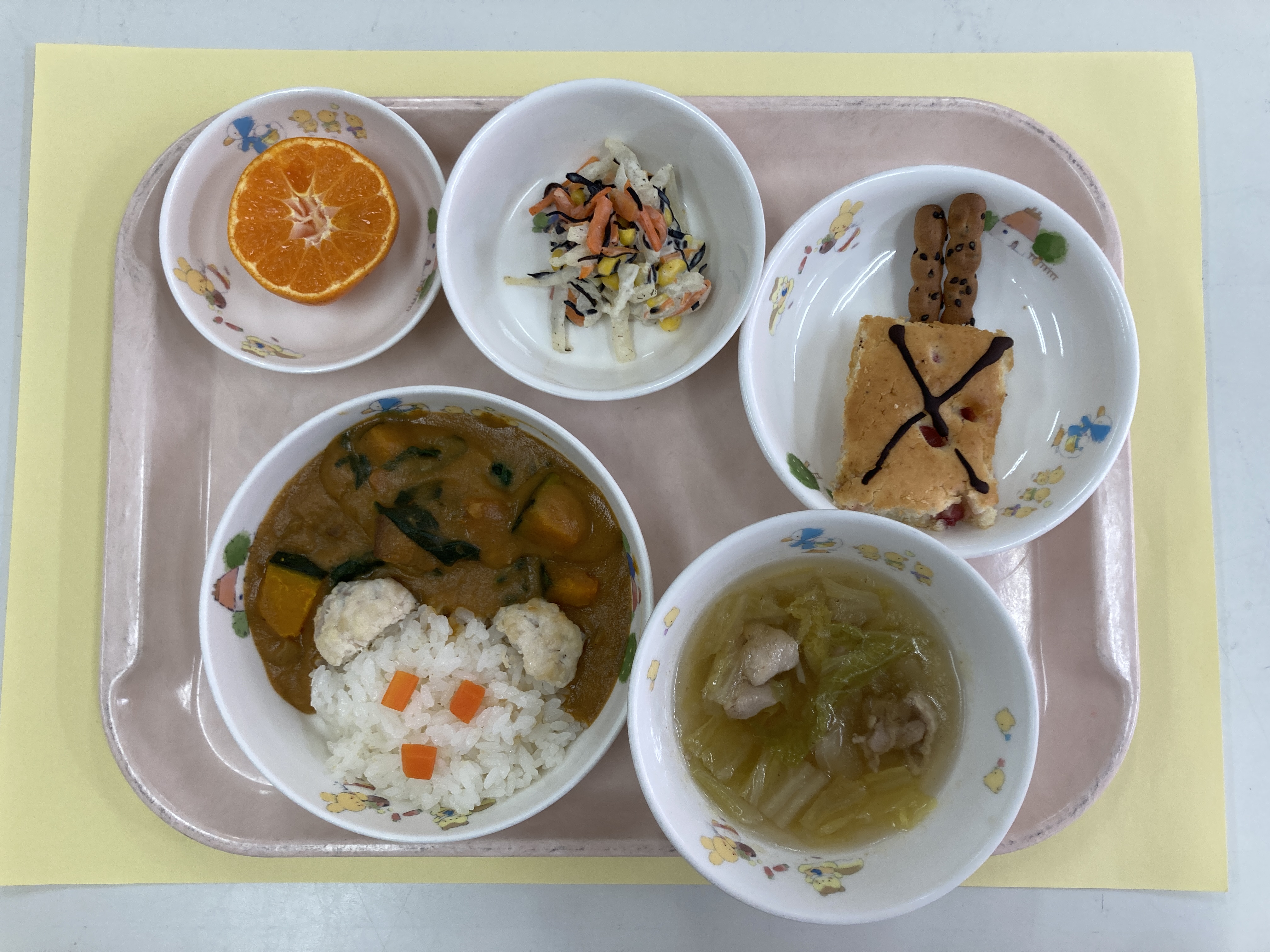 お部屋にワゴンが届くと、「くまさんだ」「みかんもあるよ」と嬉しそうな表情を浮かべていました。