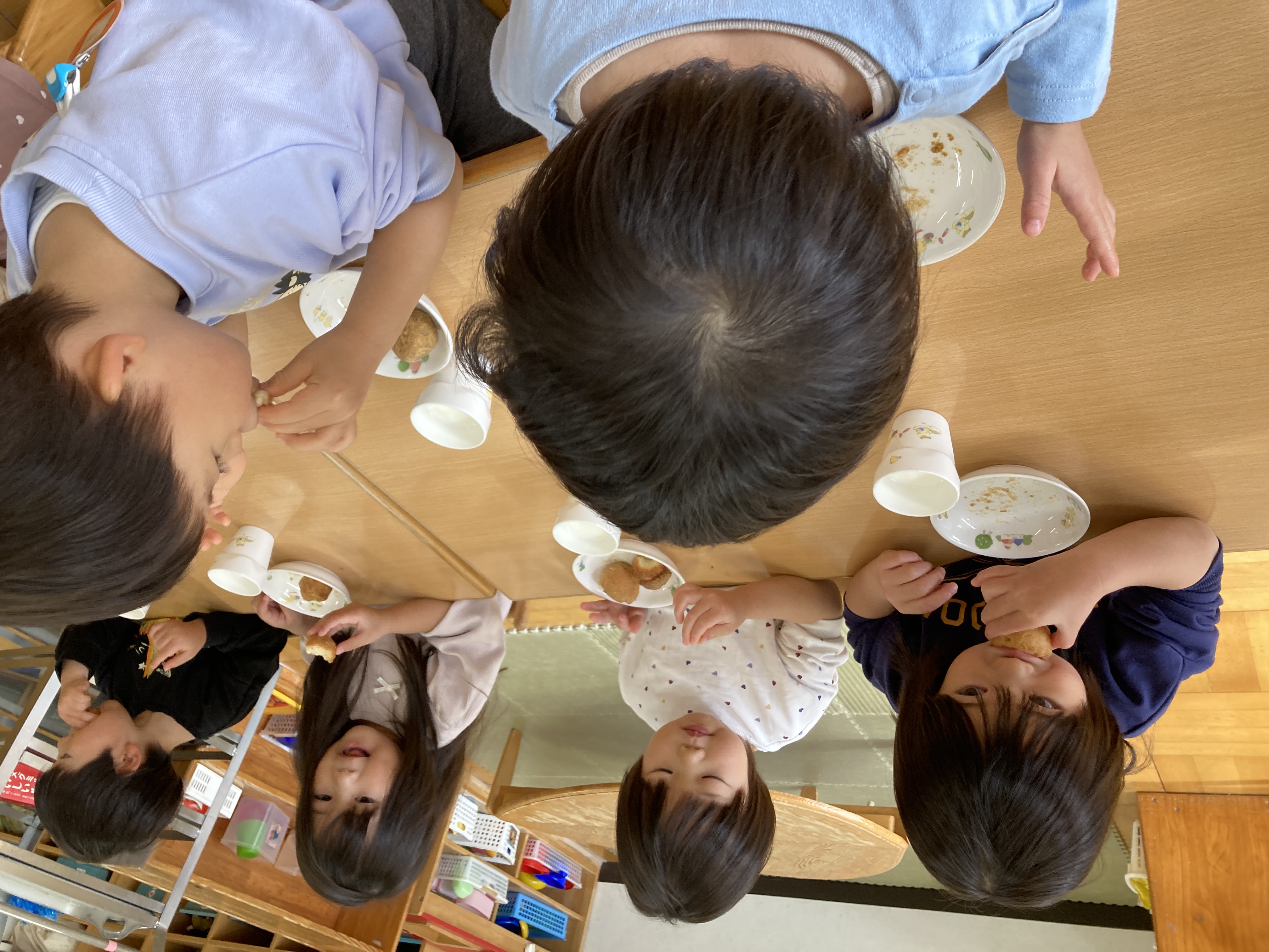 また、おやつでは黒糖ときなこのドーナツを食べながら